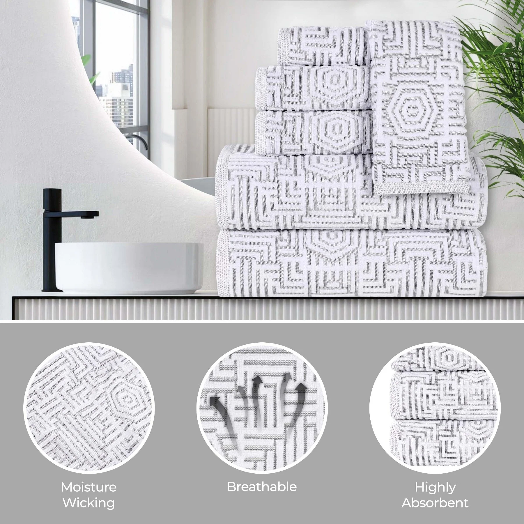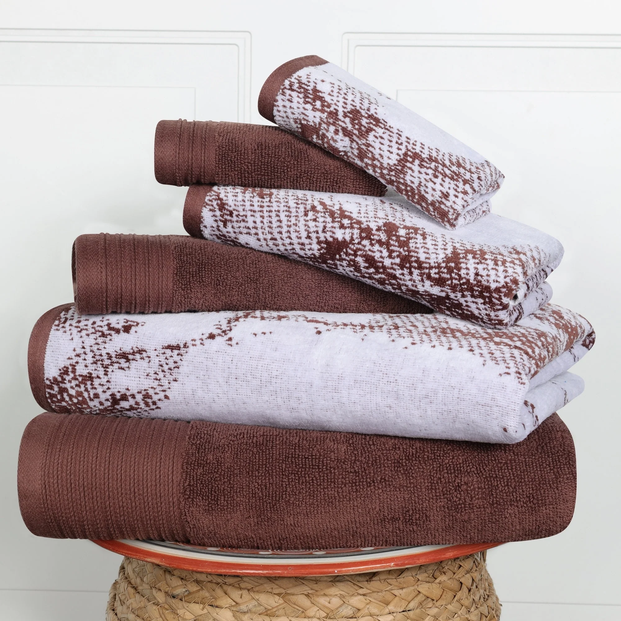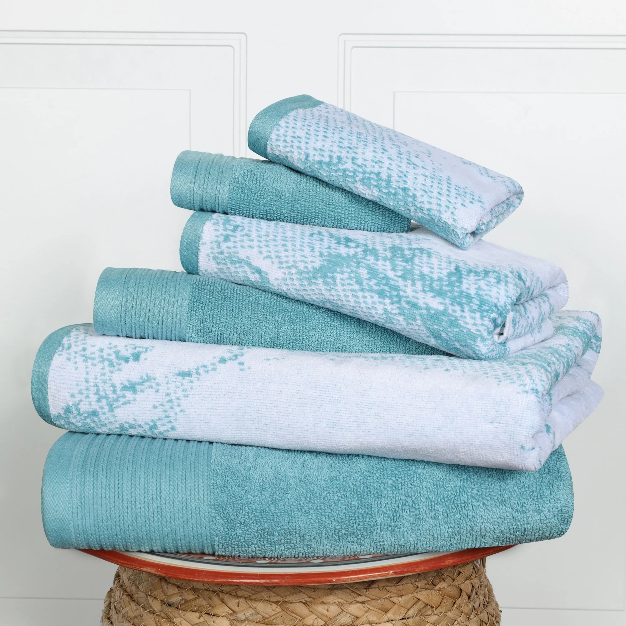 Superior Cotton Quick-Drying Solid and Marble 6 Piece Towel Set