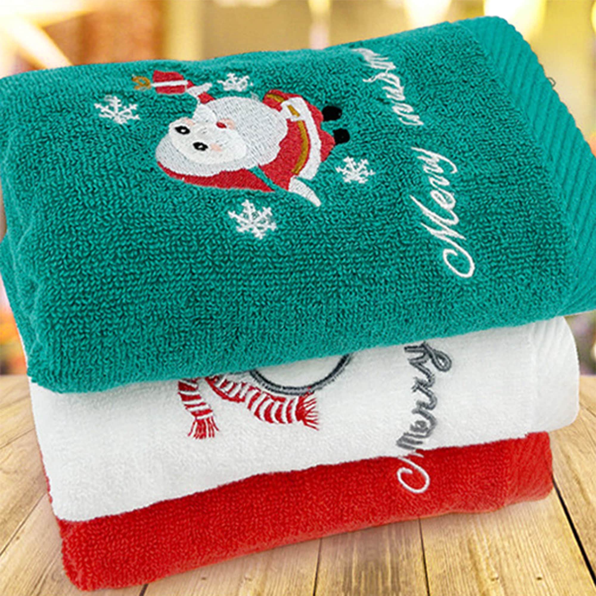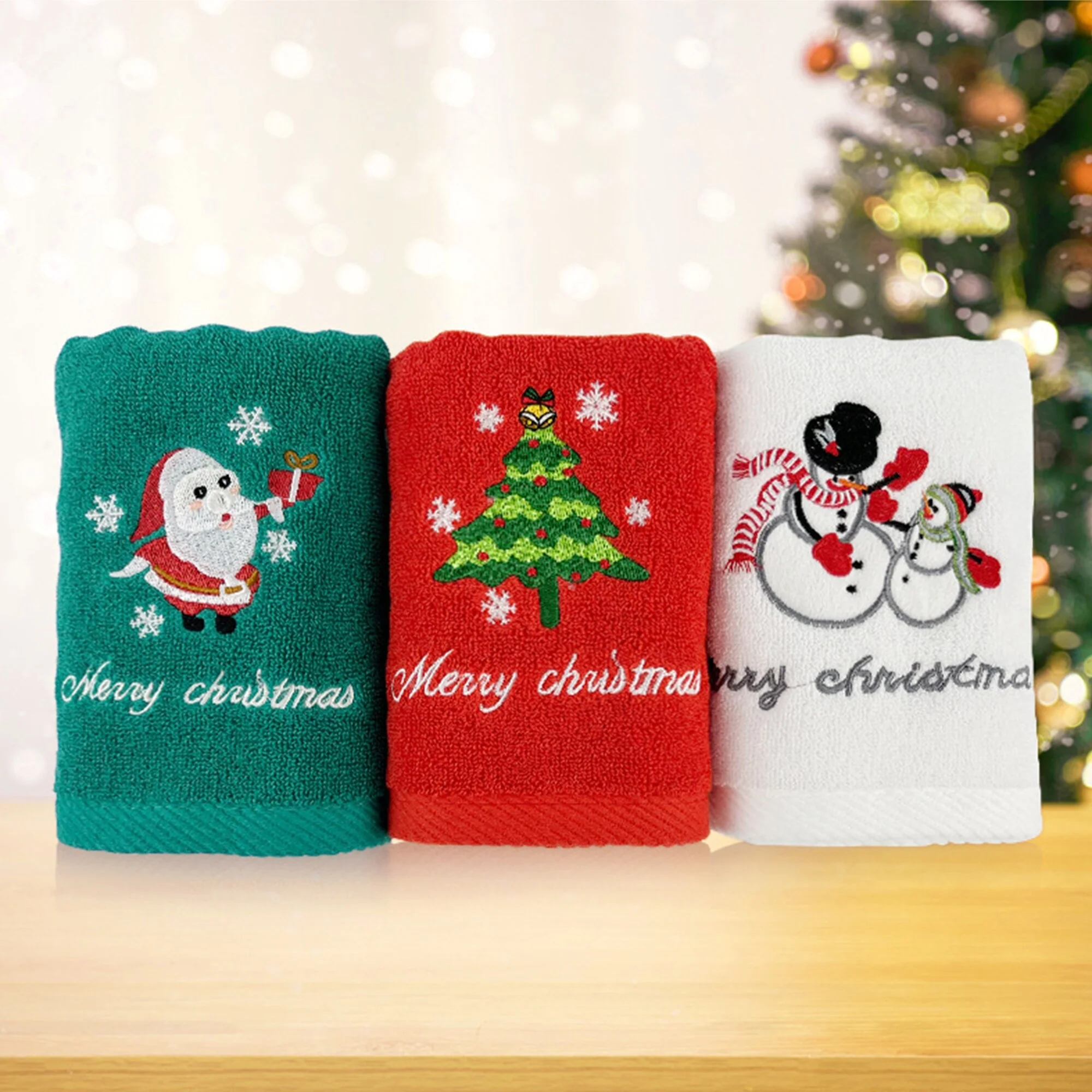 Christmas Cotton Hand Towels, Cute Letter Print Bathroom Decorative Hand Towel Set, Absorbent Soft Towel for Hand Face