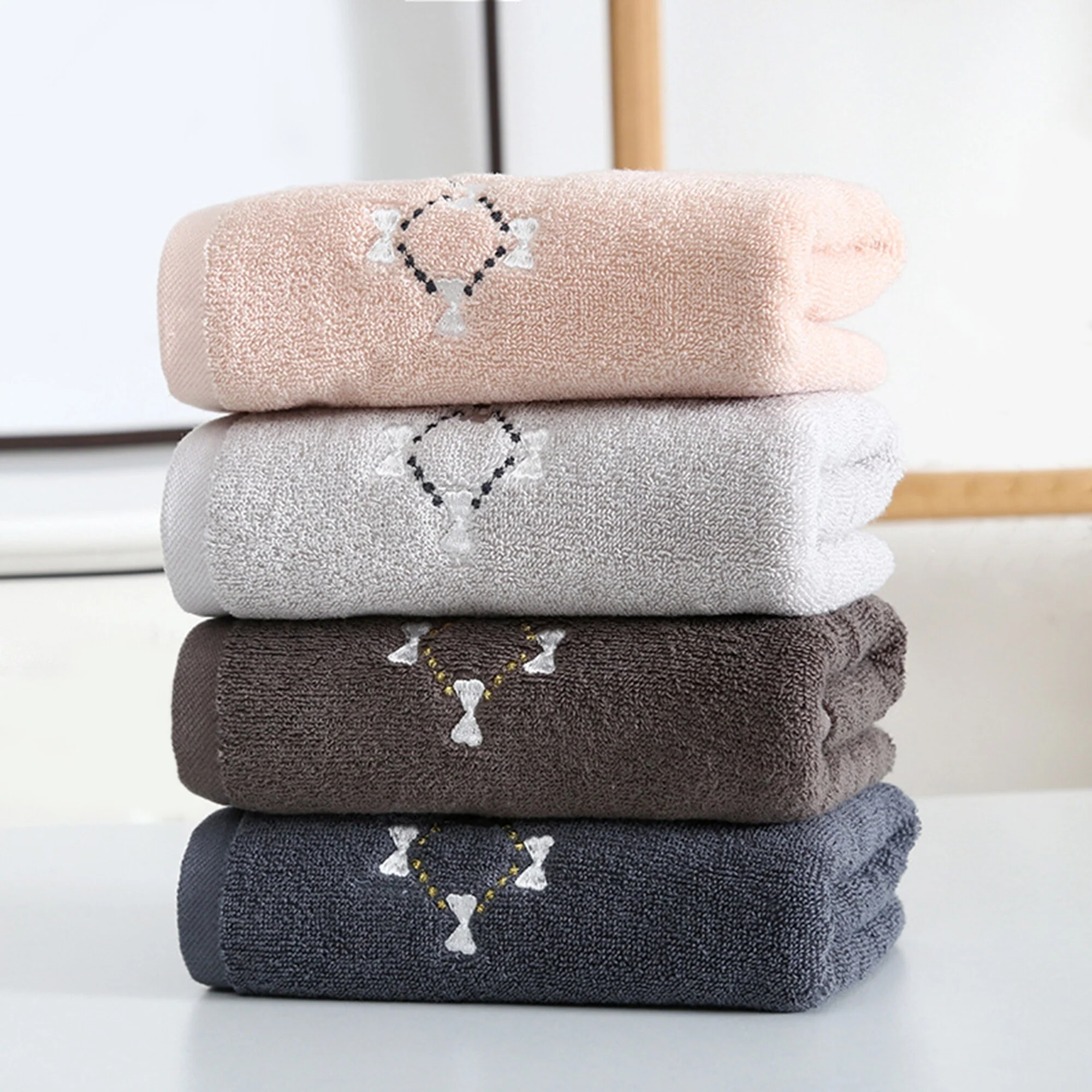 Hand Towels Embroidered Bow Pattern Decorative Towel Cotton Absorbent Soft Hand Towel Set for Bathroom