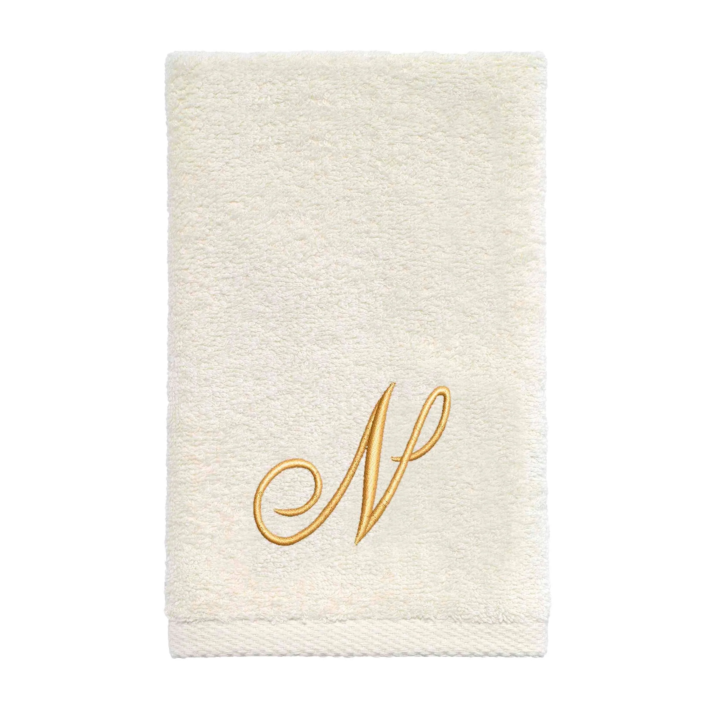 Avanti Linens Ivory/Gold Script Monogram Fingertip Towel Letter N - Fingertip Towel