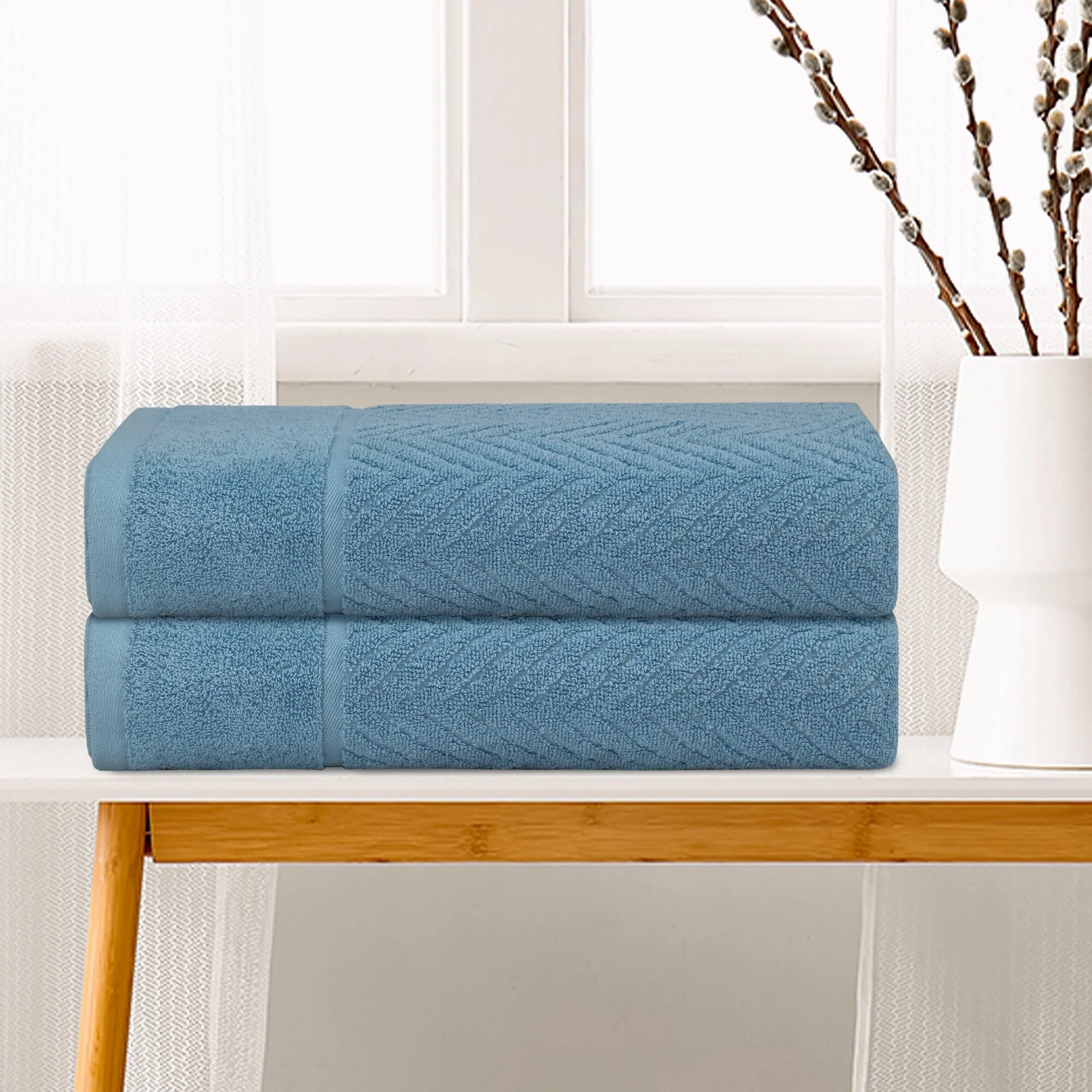 PREMIUS 2 Pack Chevron 100% Cotton Yarn Dyed Bath Sheet Towel, 32x64 Inches