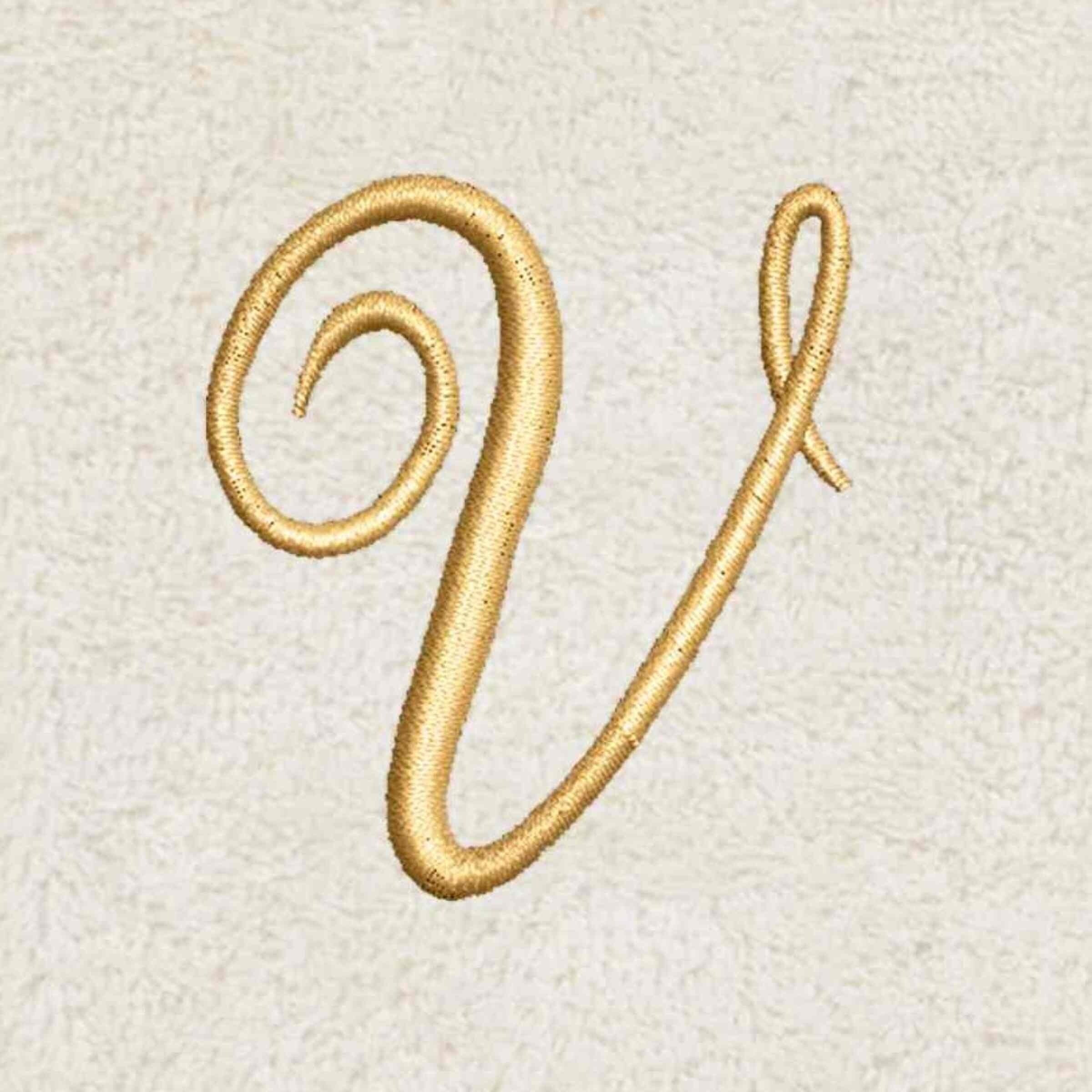 Avanti Linens Ivory/Gold Script Monogram Fingertip Towel Letter V - Fingertip Towel