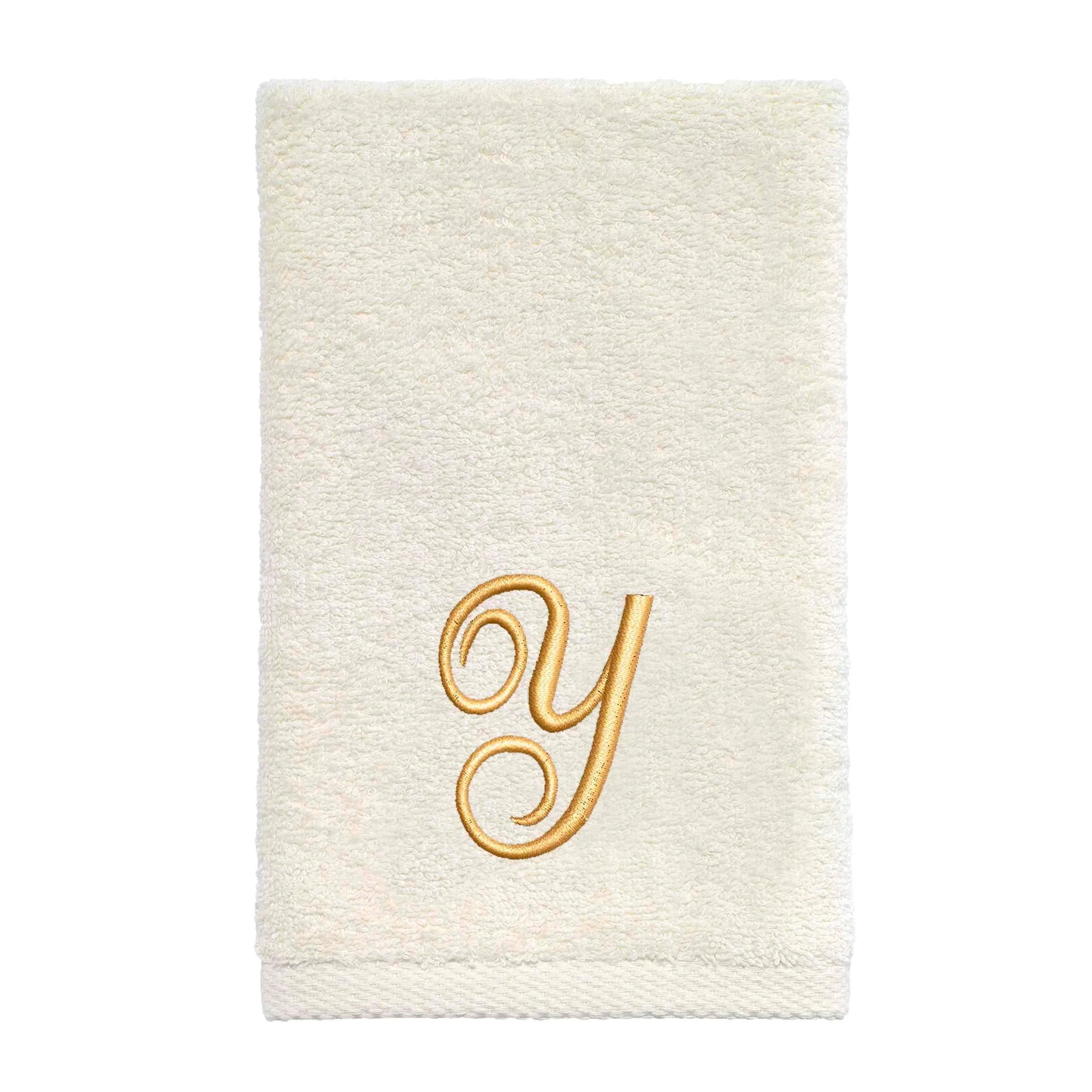Avanti Linens Ivory/Gold Script Monogram Fingertip Towel Letter Y - Fingertip Towel