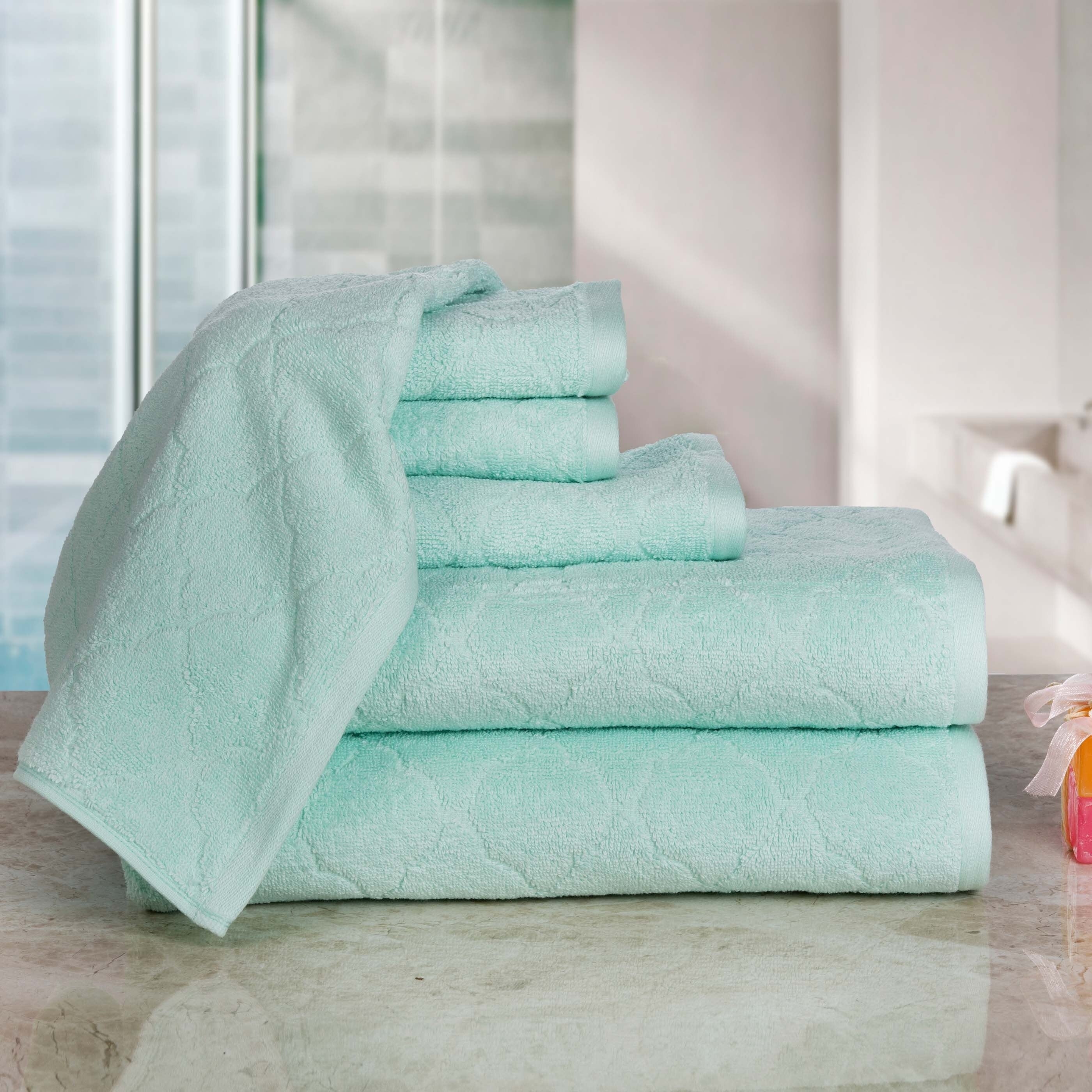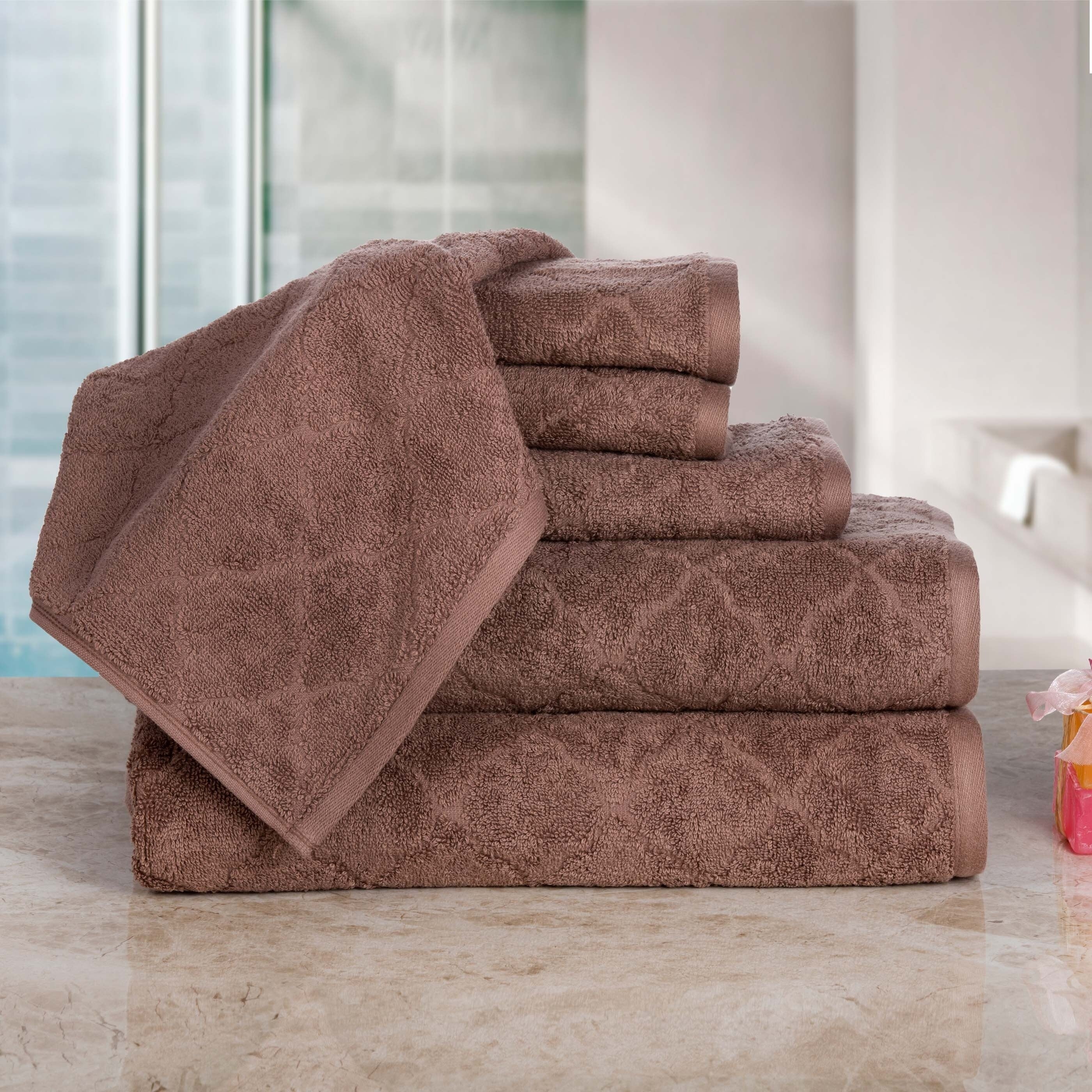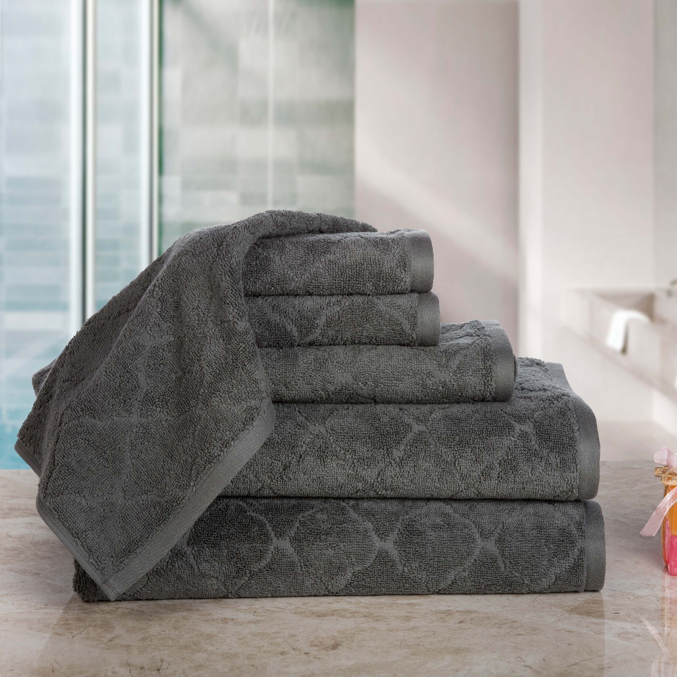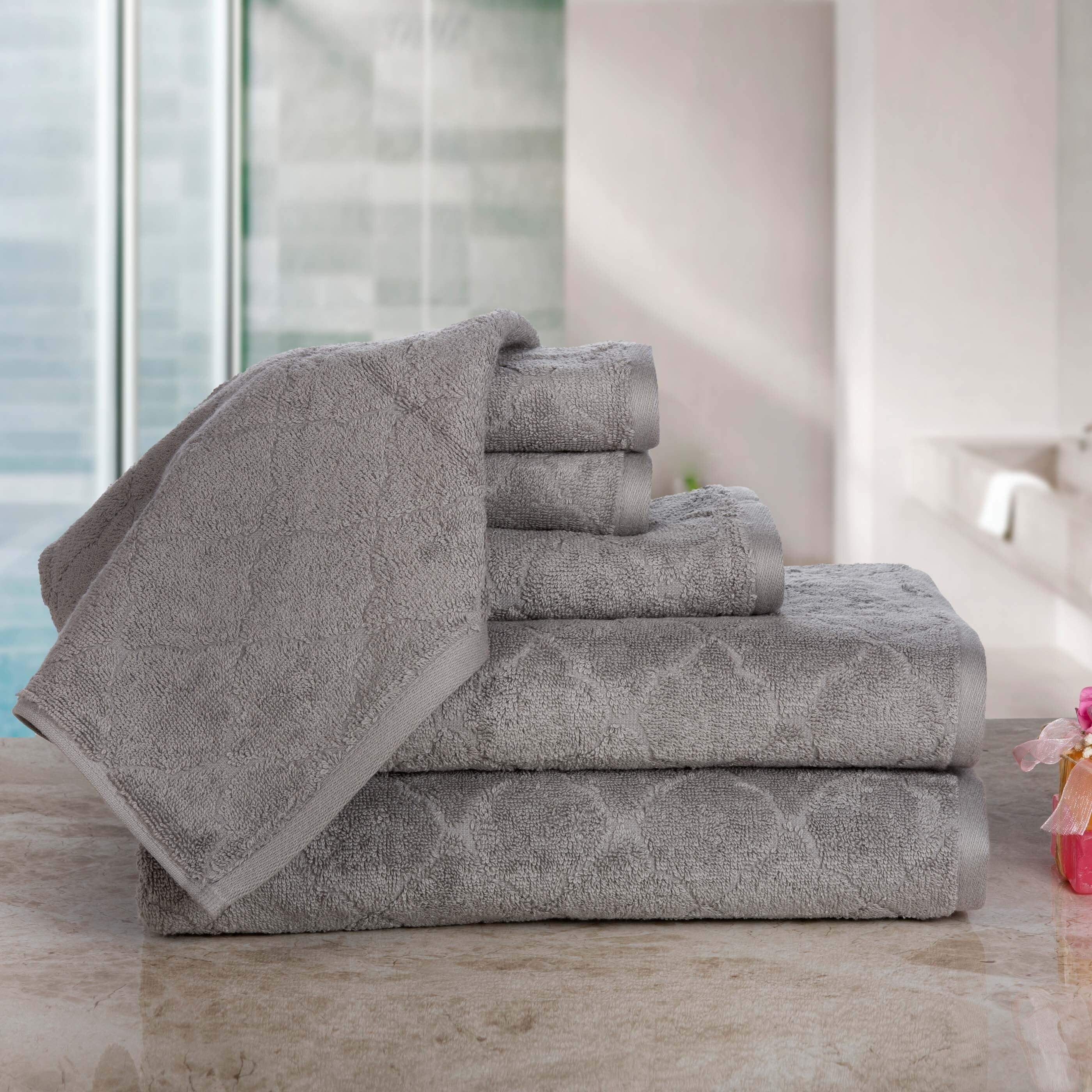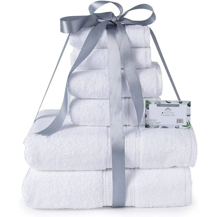 Casa Platino Luxurious Fine Cotton Jacquard Solid 6-Piece Towel Set