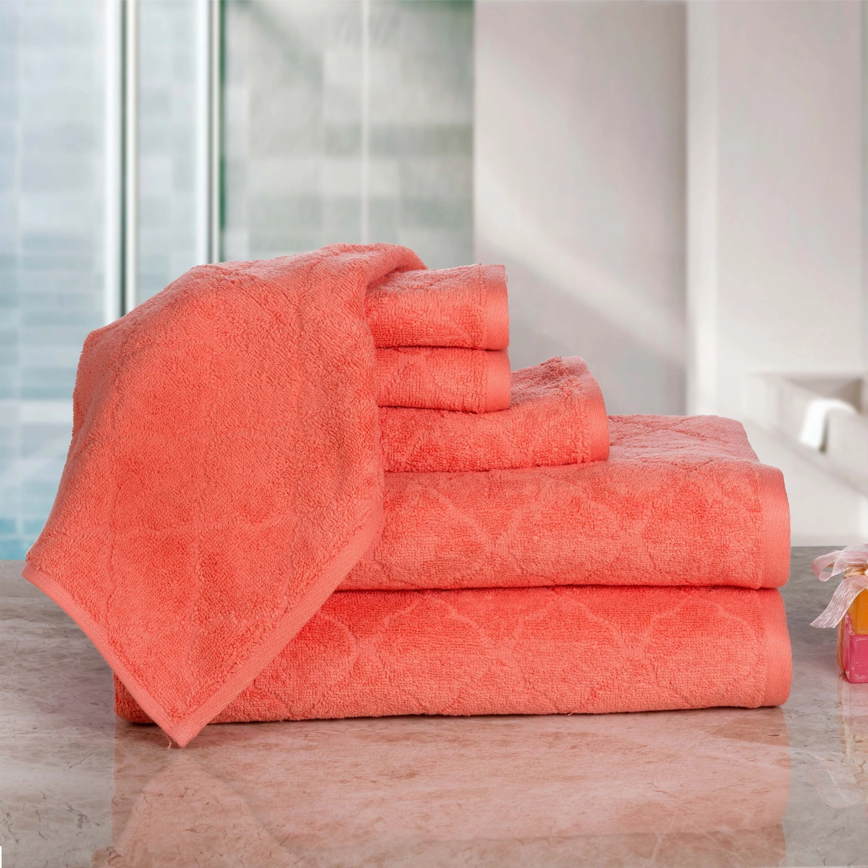 Arista Bath Towel (30 X 60) (Coral) - Set of 2