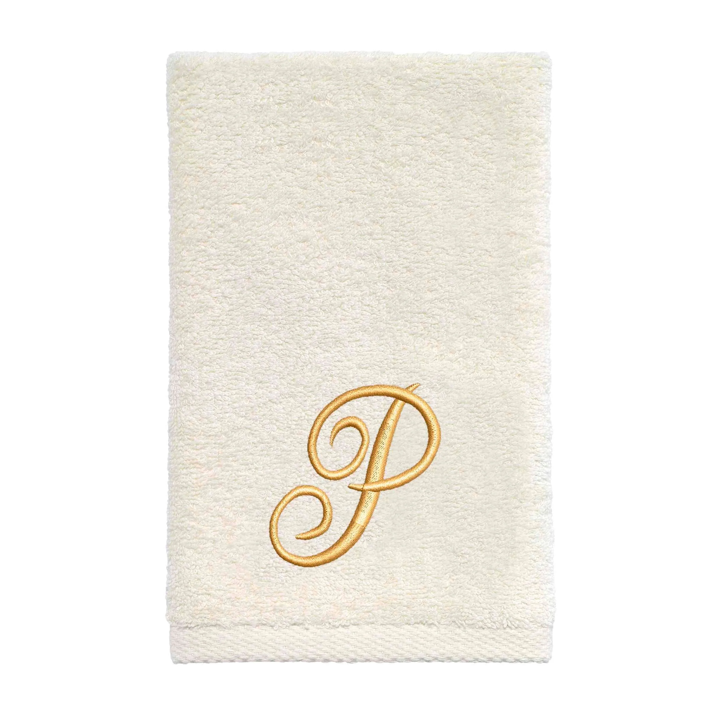 Avanti Linens Ivory/Gold Script Monogram Fingertip Towel Letter P - Fingertip Towel