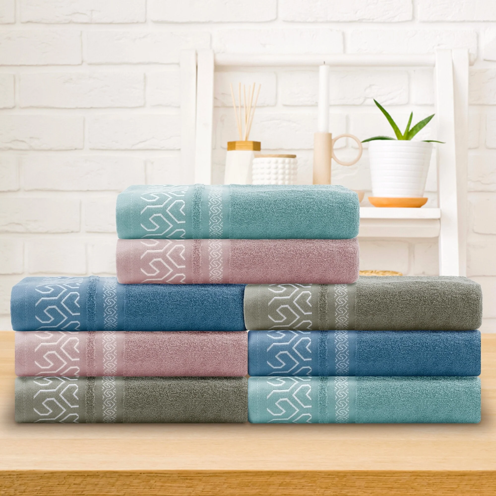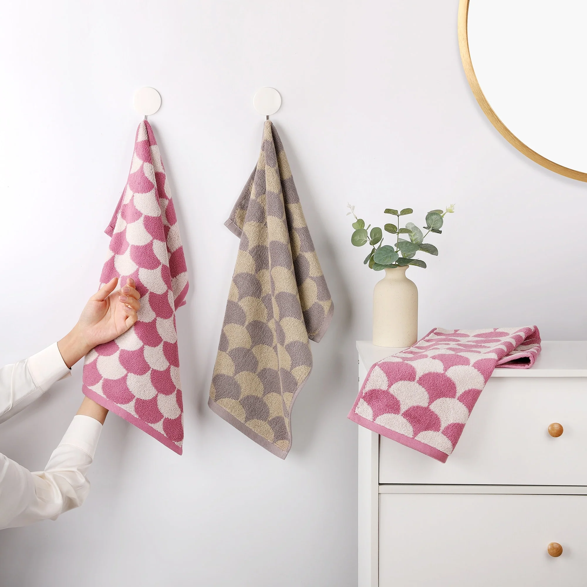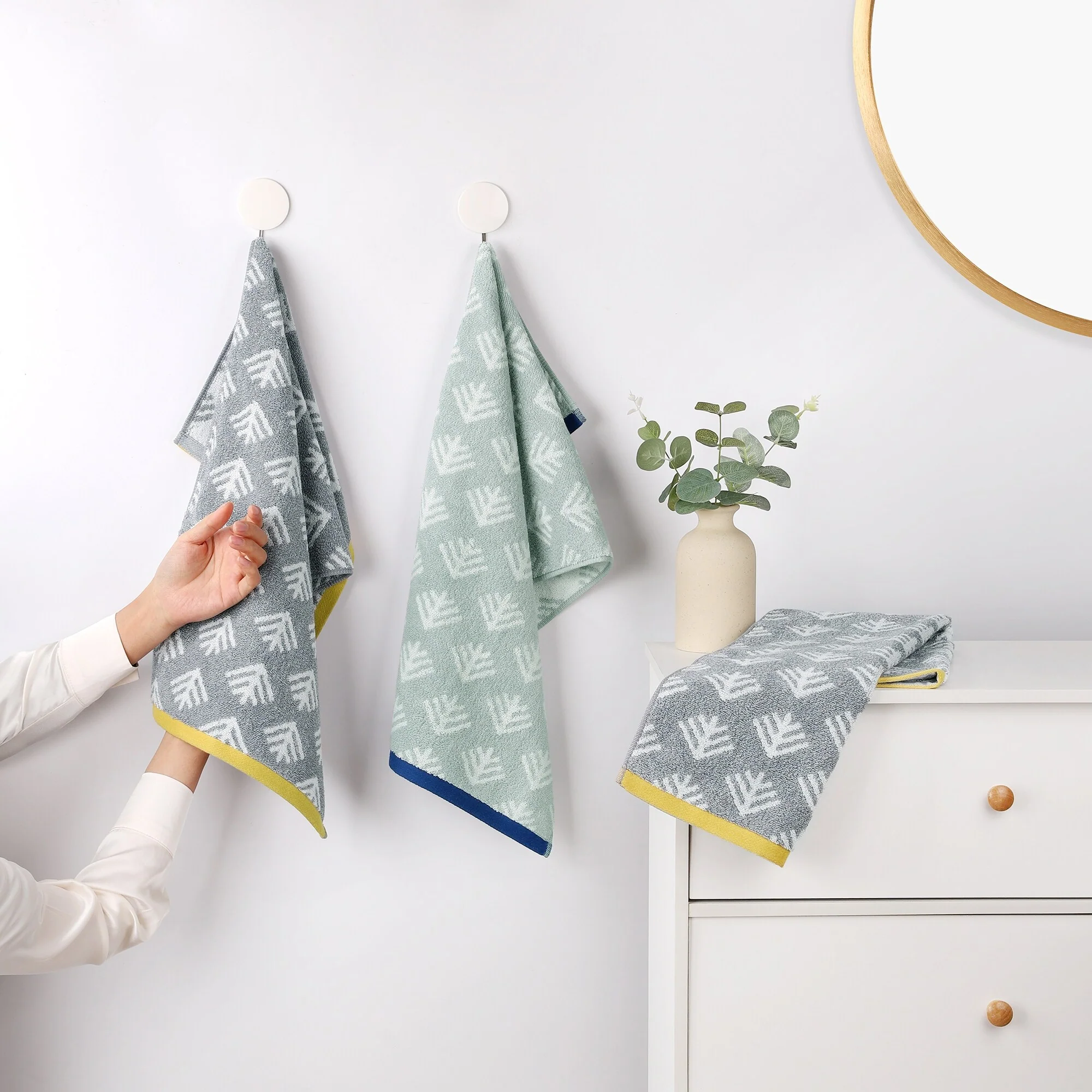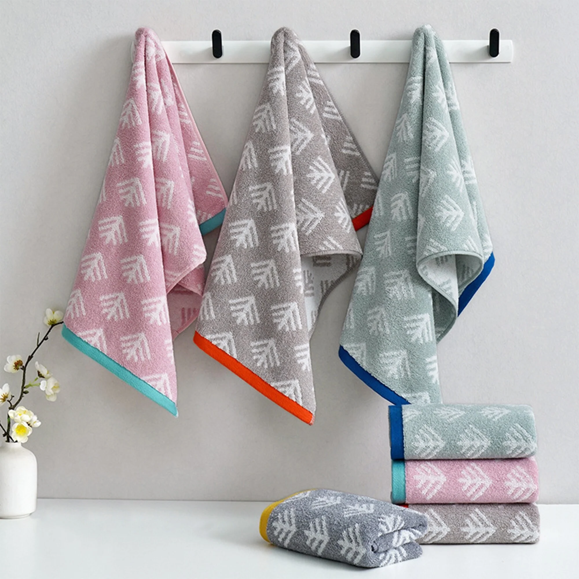 Cotton Hand Towels, Geometric Absorbent Soft Decorative Hand Towel for Bathroom, Hand, Face, Gym, Spa