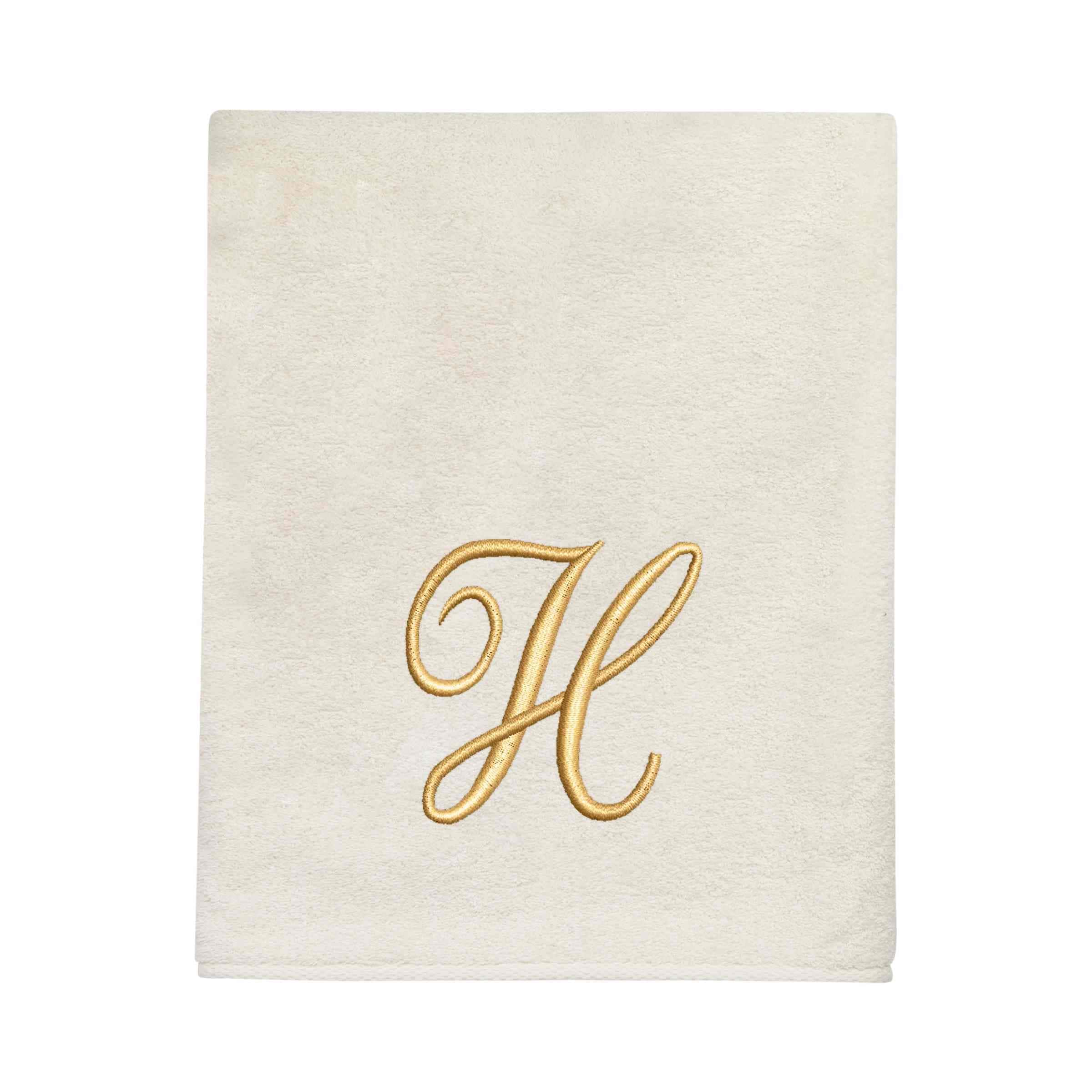 Avanti Linens Ivory/Gold Script Monogram Bath Towel Letter H - Bath Towel