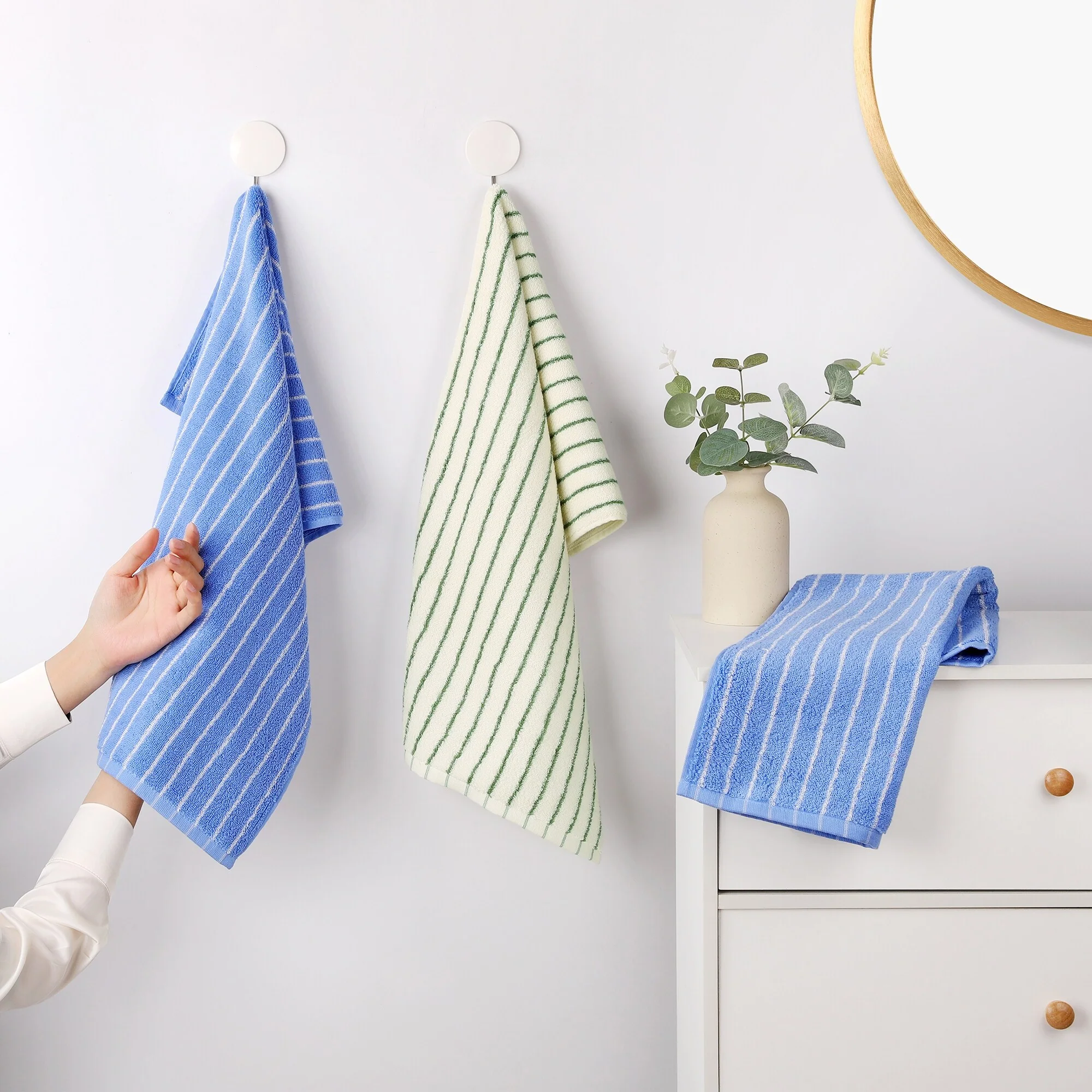 Classic Stripe Hand Towels, Cotton Soft Absorbent Durable Bath and Face Towel for Home Decor