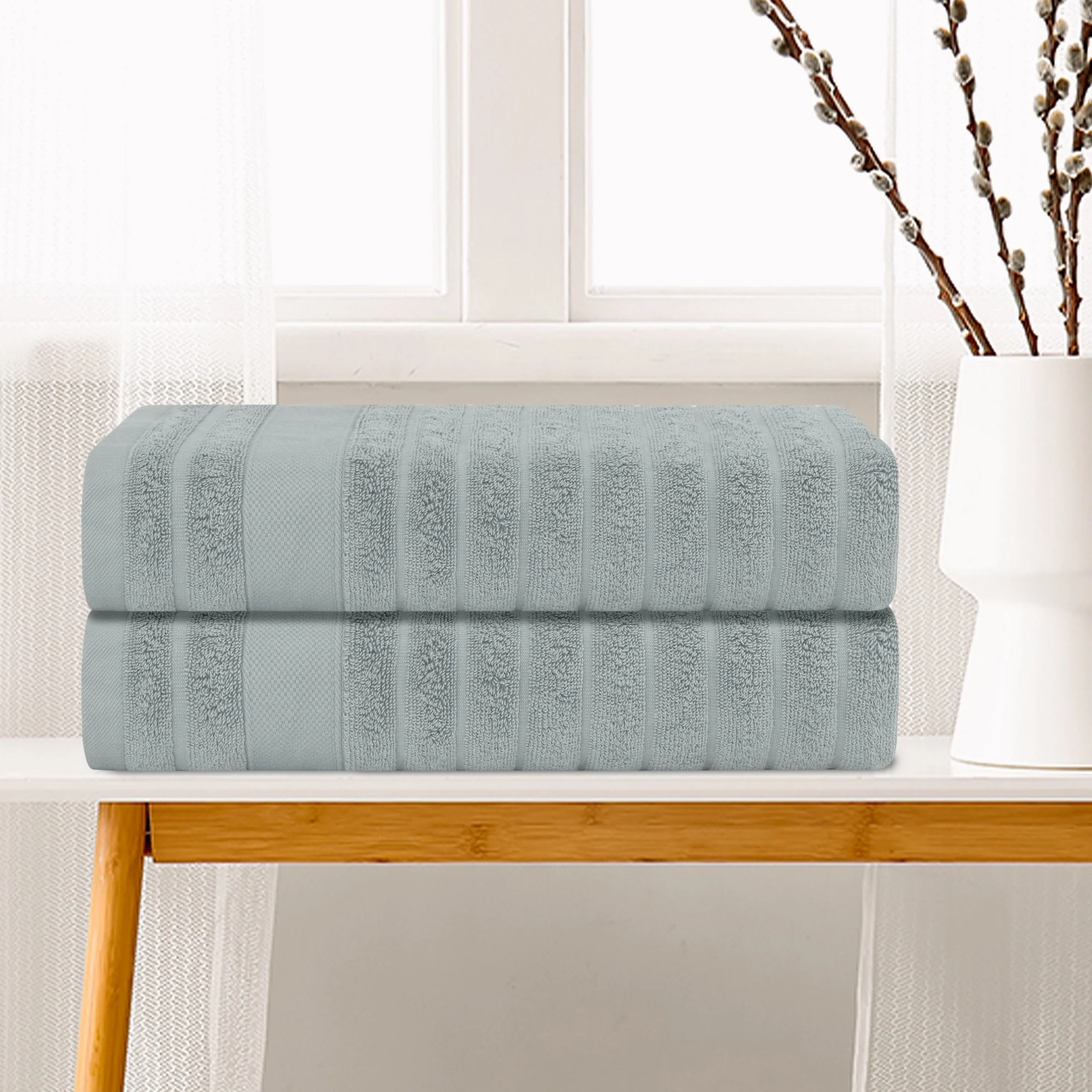 Striped 2-Piece Bath Towels Cotton Set, Soft Absorbent Quickdry & Lightweight Large Towels for Bathroom 28" x 56"