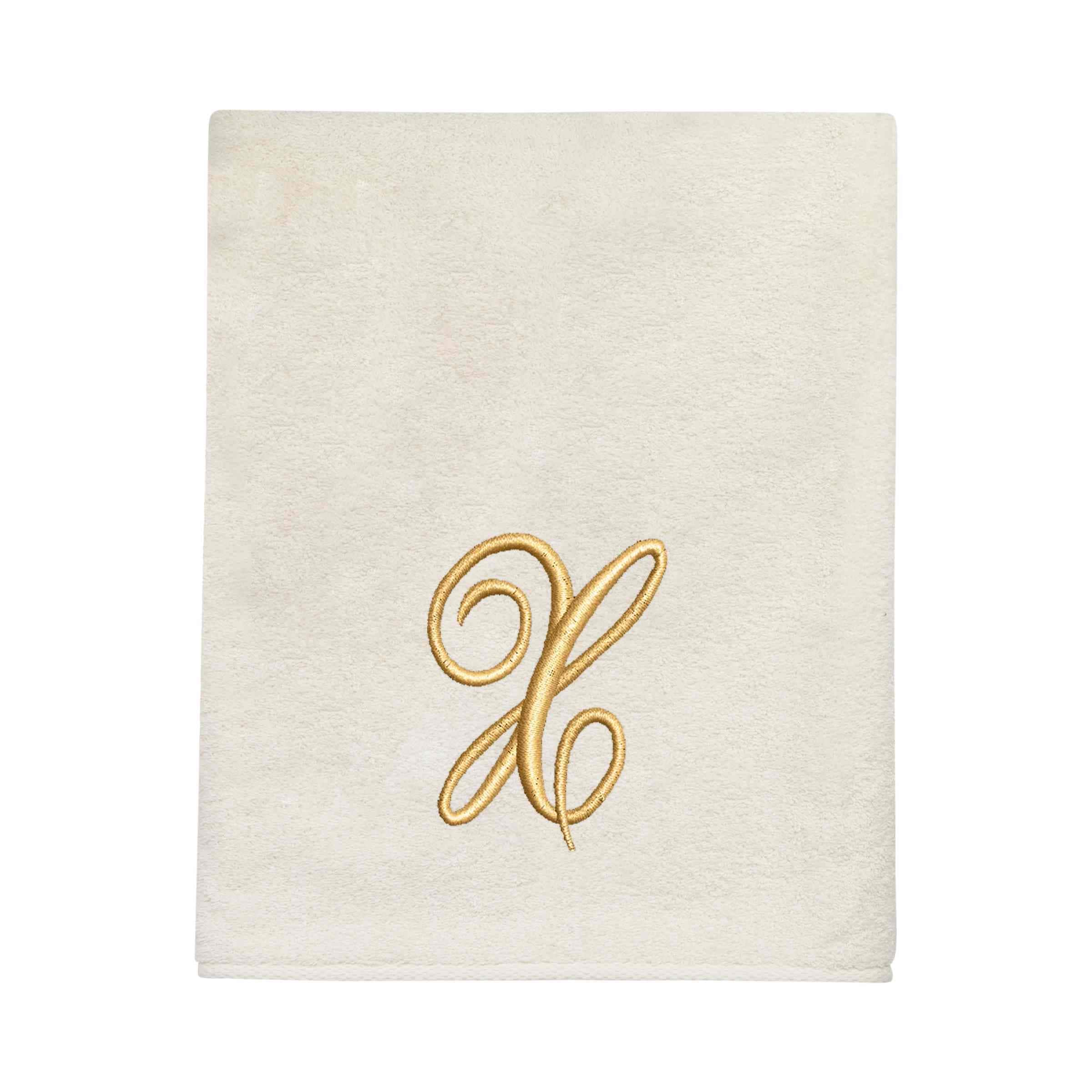 Avanti Linens Ivory/Gold Script Monogram Bath Towel Letter X - Bath Towel