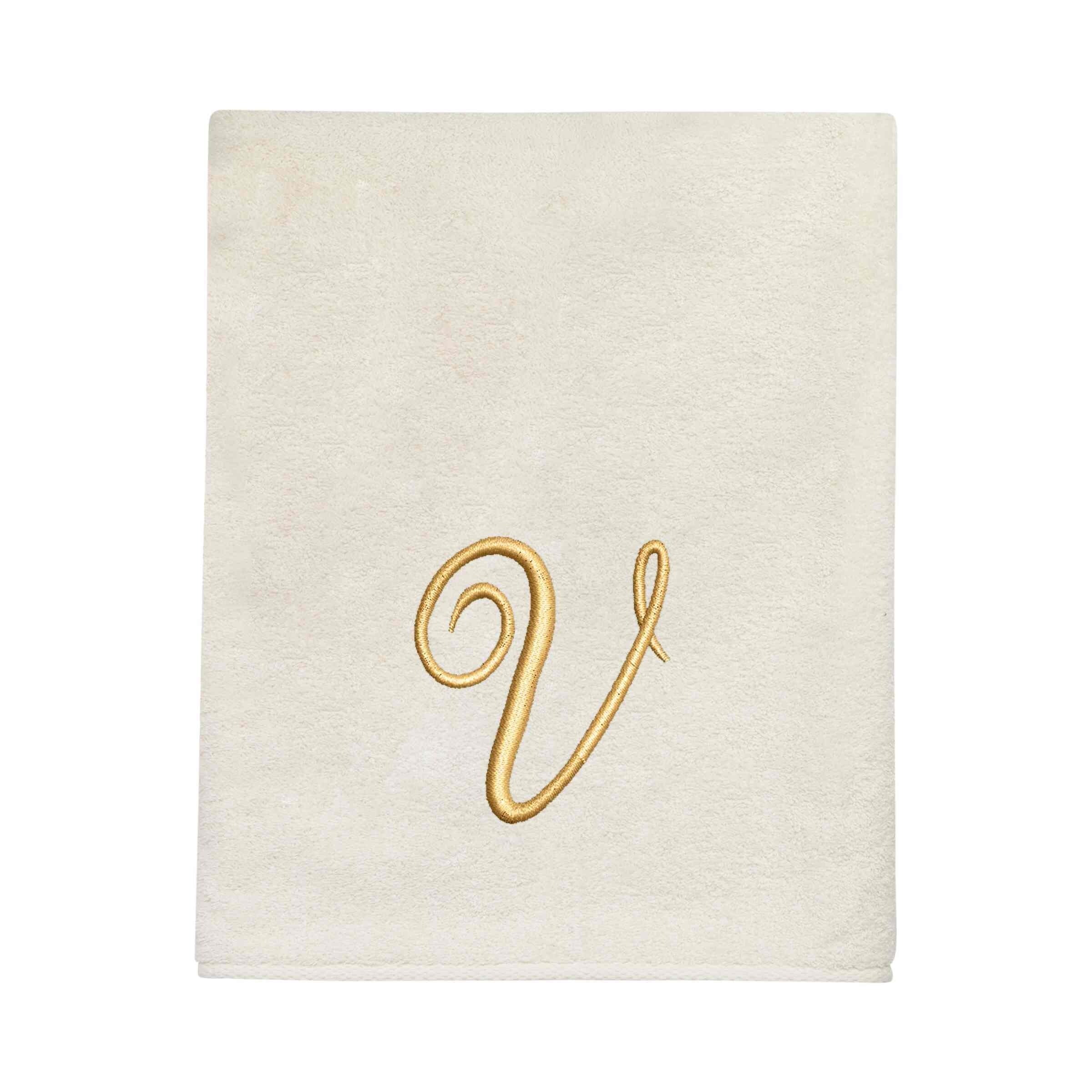 Avanti Linens Ivory/Gold Script Monogram Bath Towel Letter V - Bath Towel
