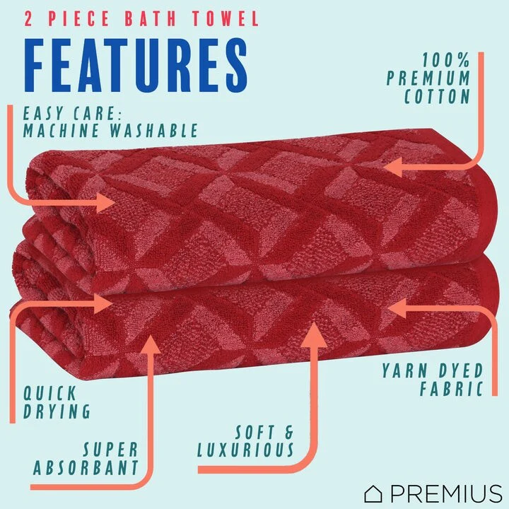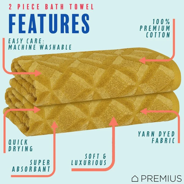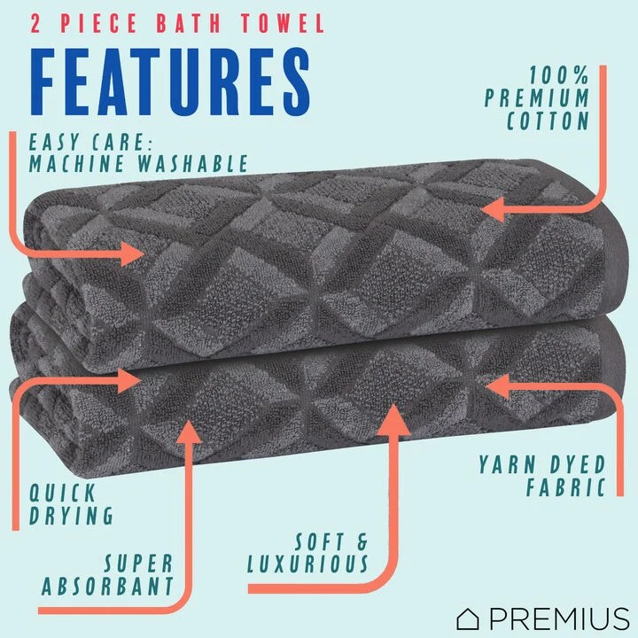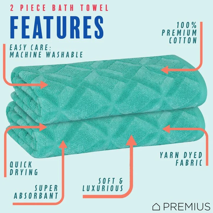 Cotton 2 Pack Mesh Bath Towels, Highly Absorbent and Quick Drying Towels for Bathroom, Hotel, Gym 28" x 56"