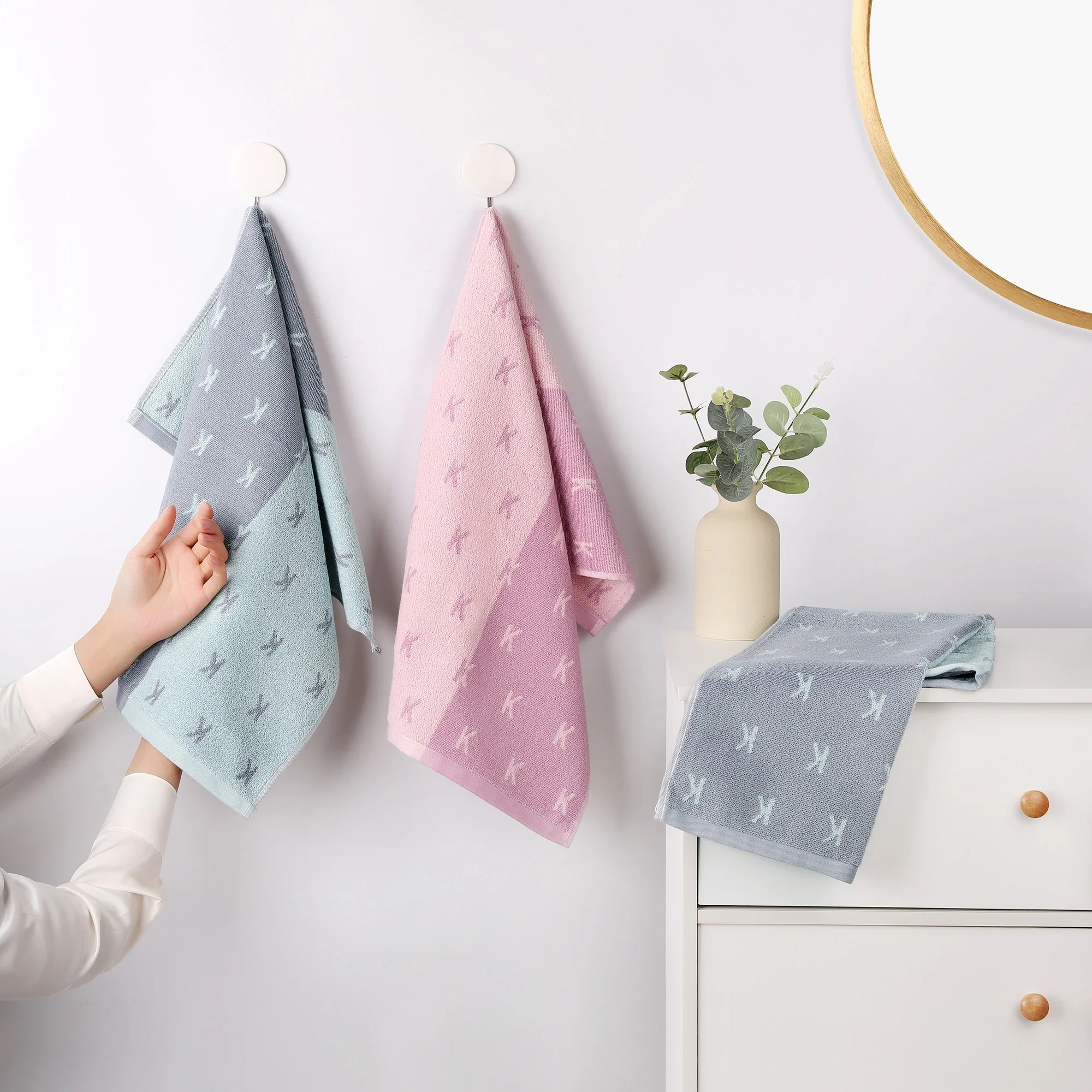 Letter Patterns Cotton Hand Towels, Comfortable Soft Absorbent, Daily Wash Essentials Decorative Bathroom