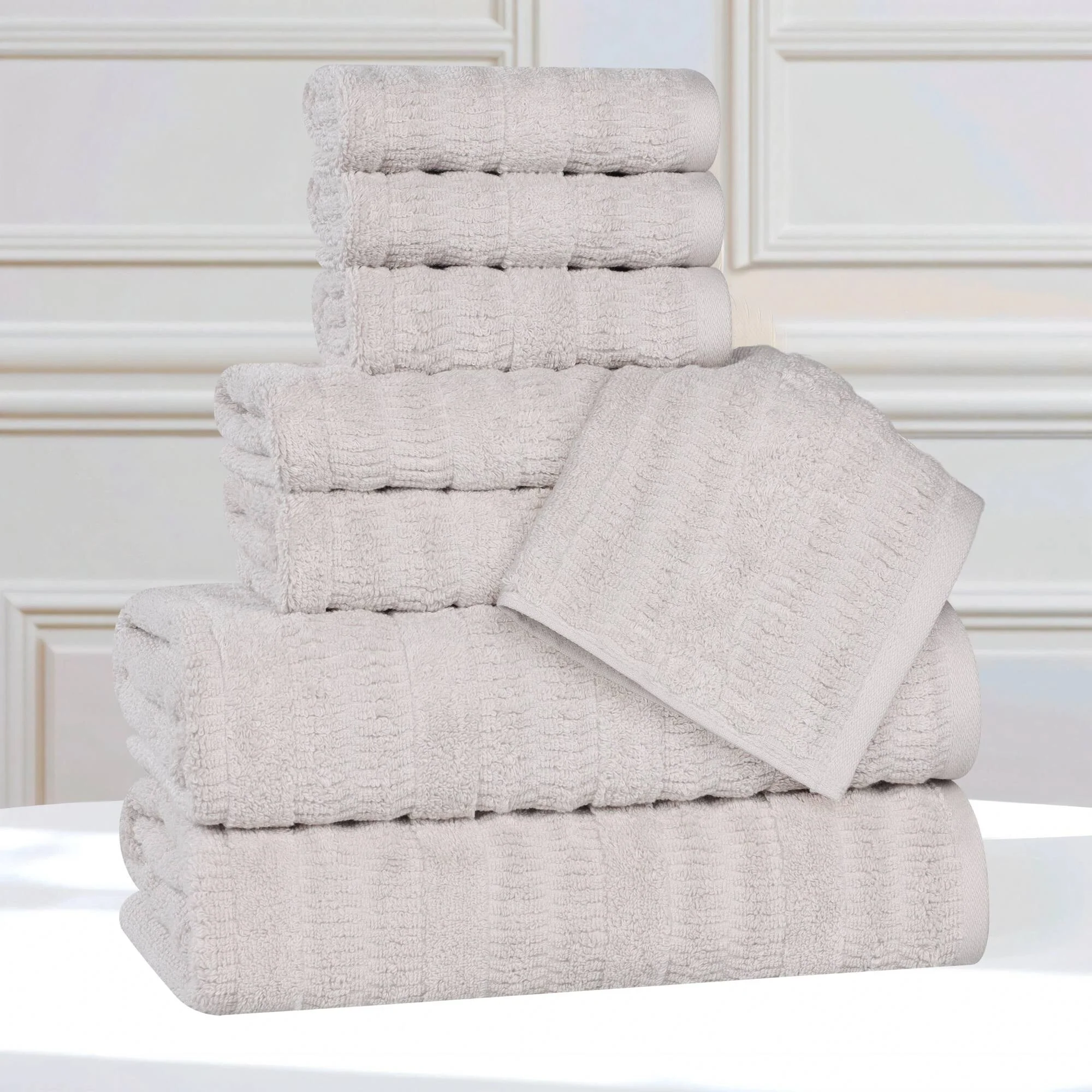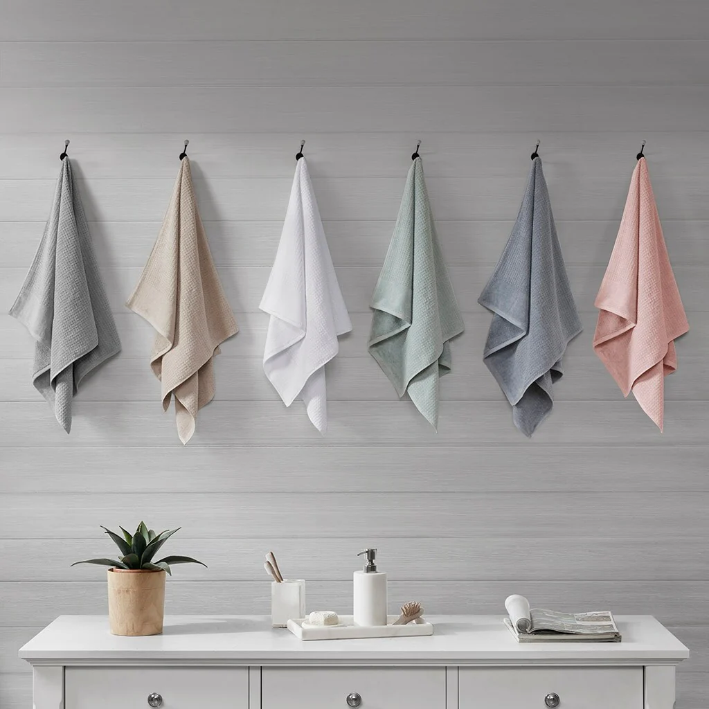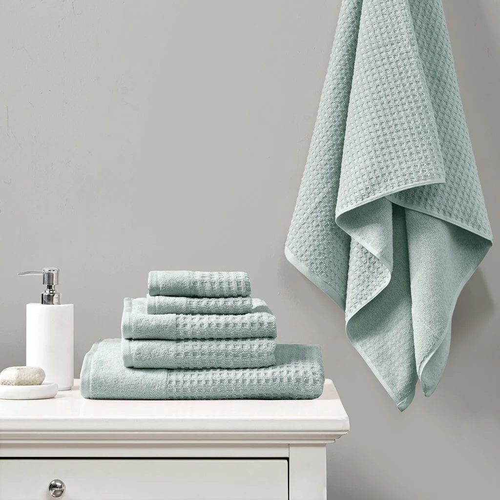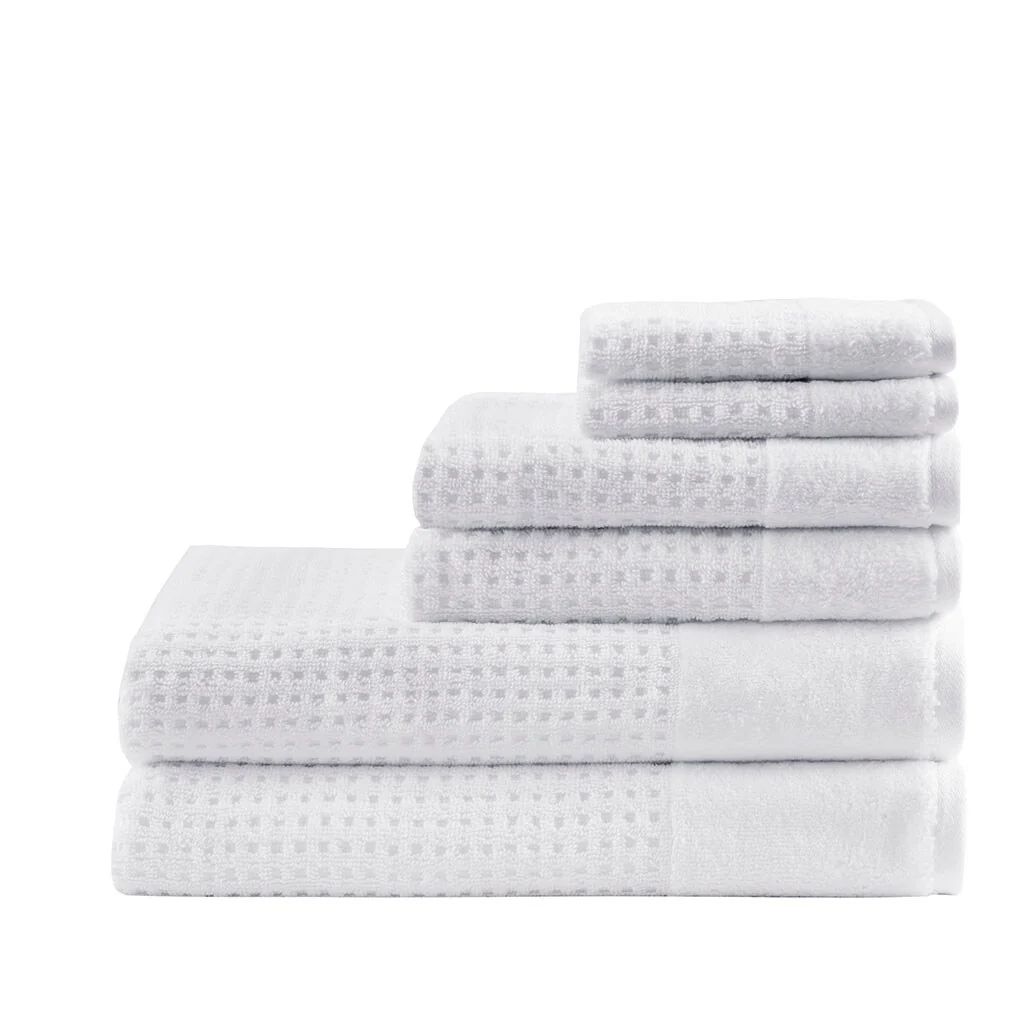 Cotton Waffle Jacquard Antimicrobial Bath Towel 6 Piece Set