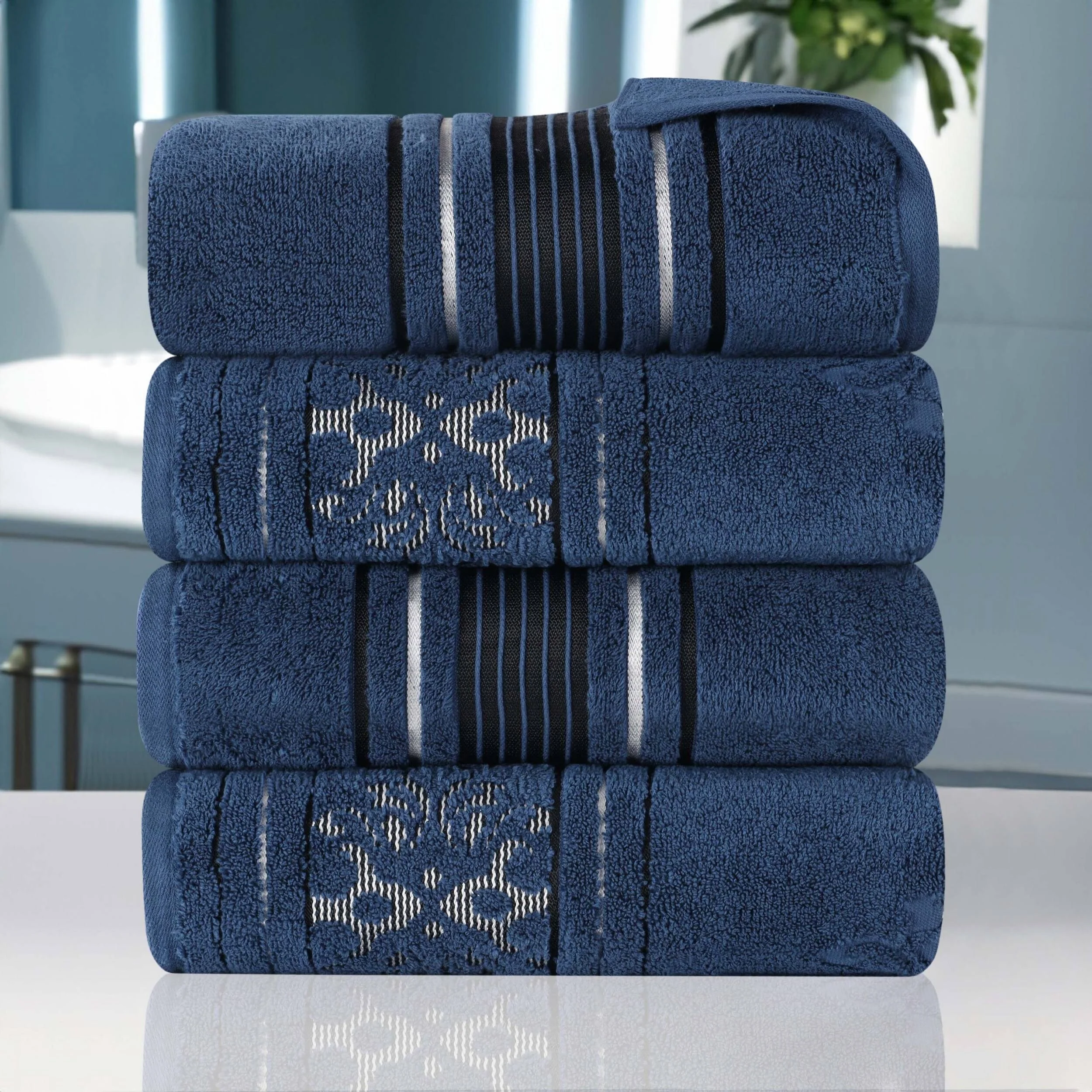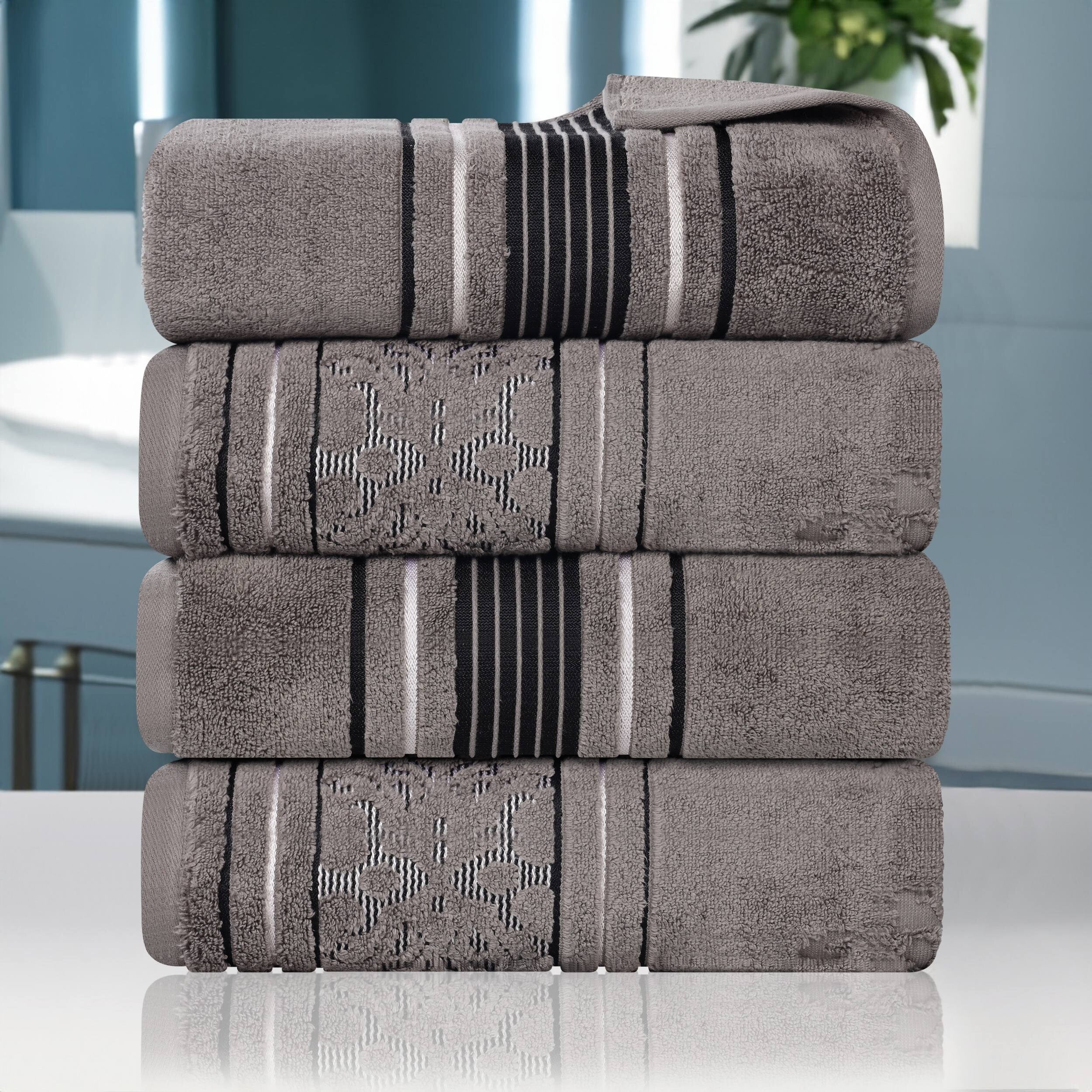 Superior Sadie Zero Twist Cotton Solid and Floral Bath Towel Set of 4