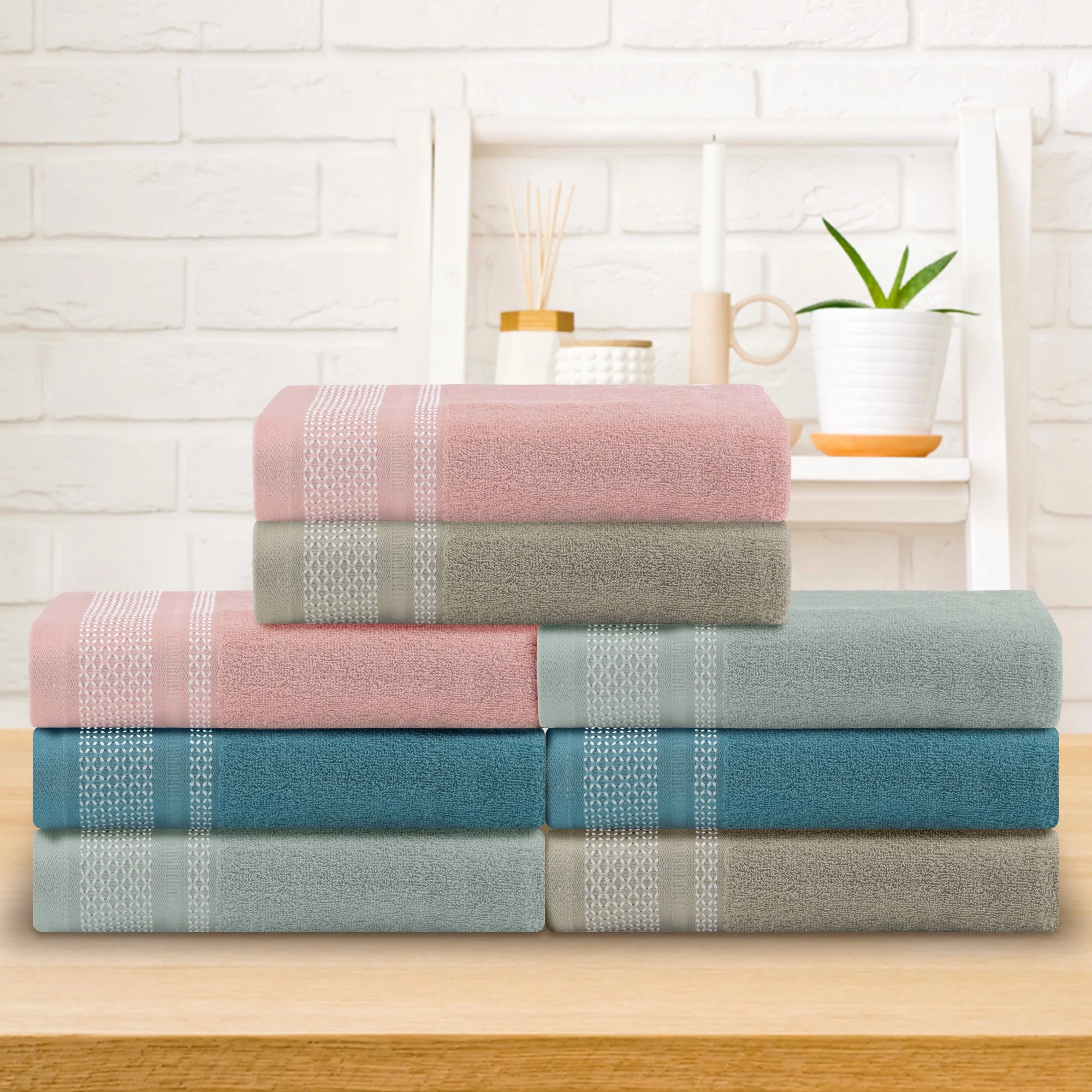 One hundred percent Cotton 8 Piece Antimicrobial Towel Set