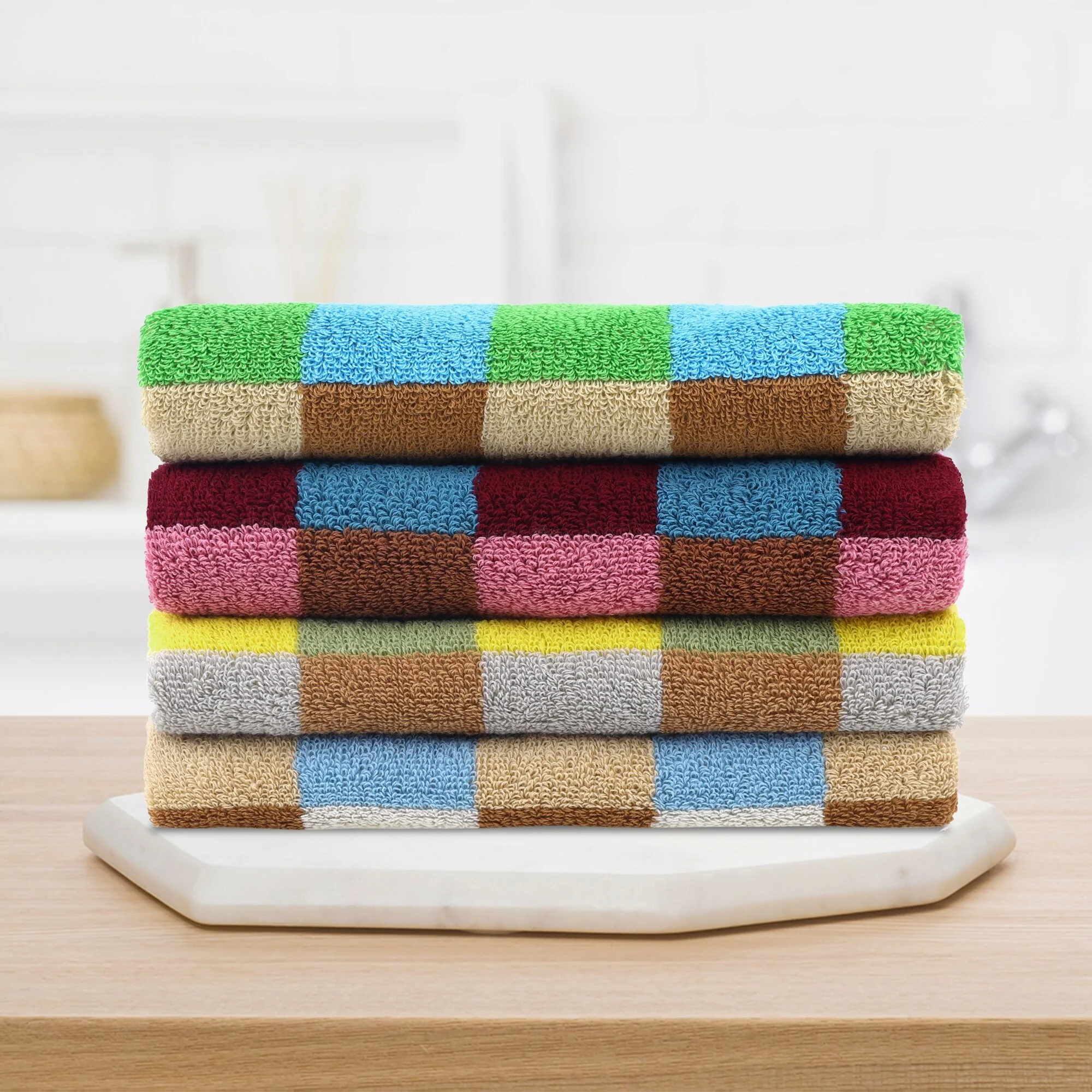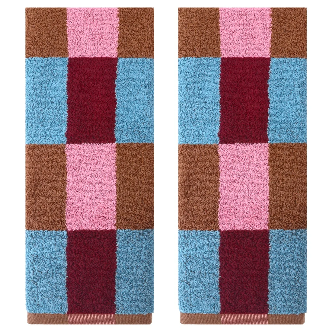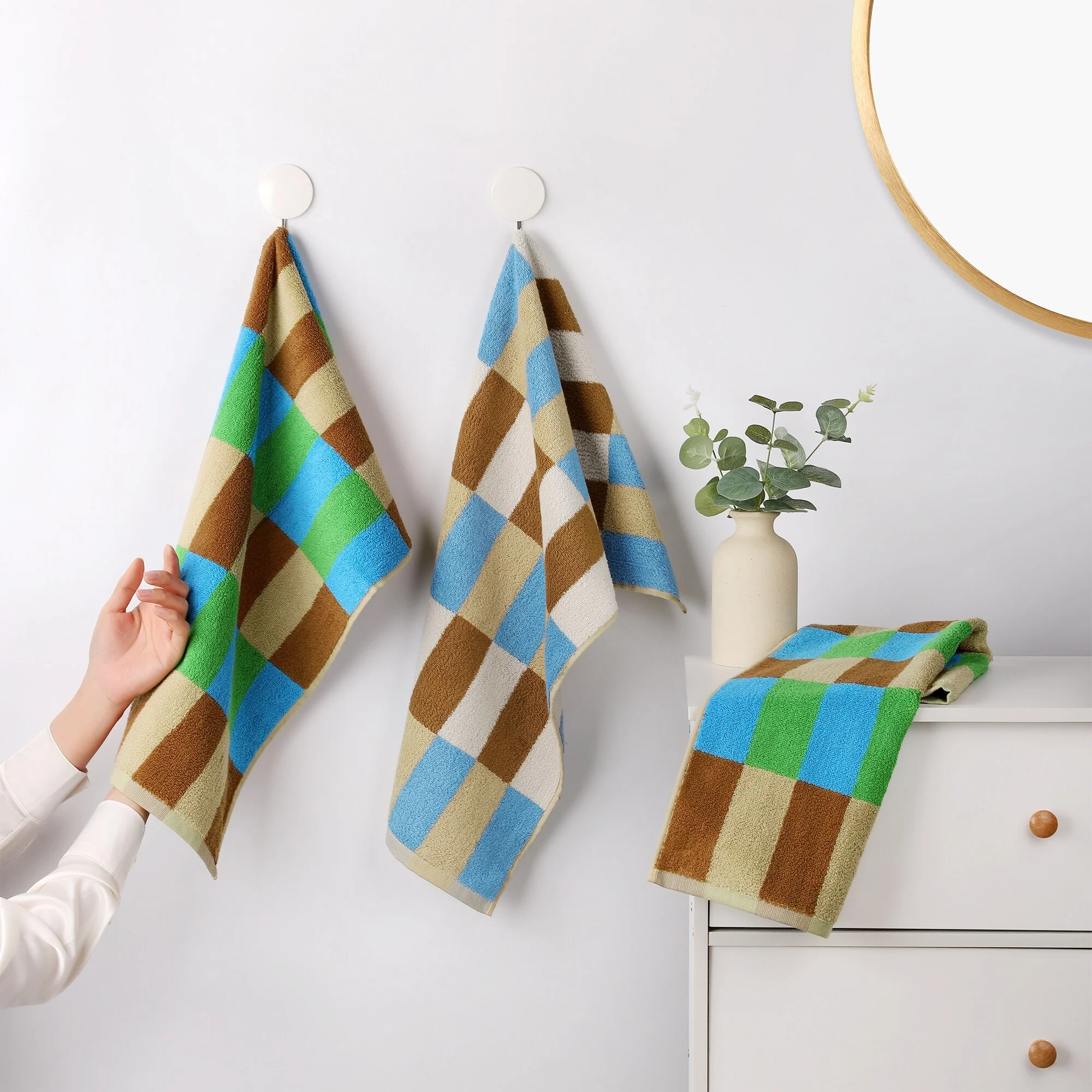 Checkered Cotton Hand Towels for Bathroom, Soft Absorbent Bathroom Hand Towel Set, Spa, Hotel, Kitchen