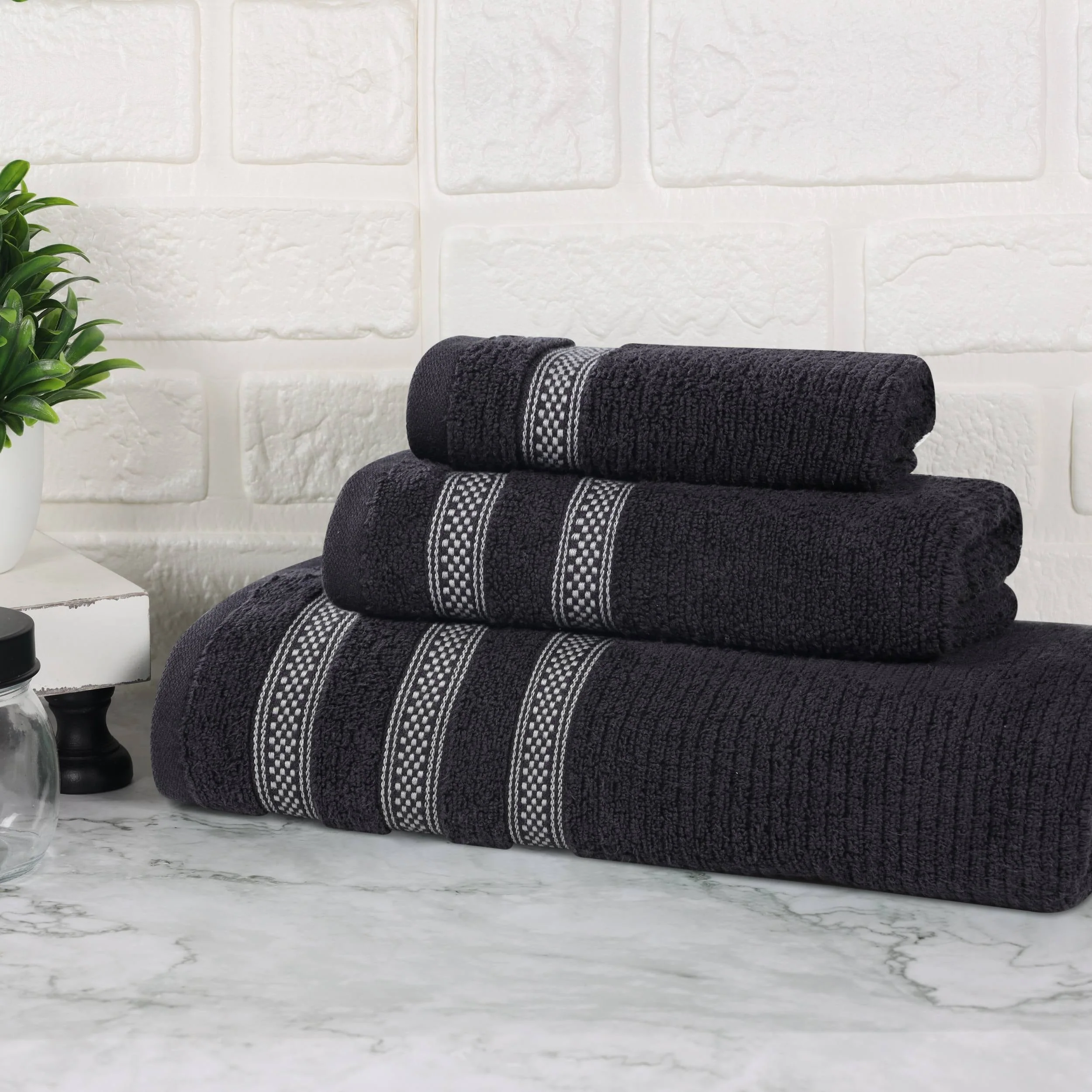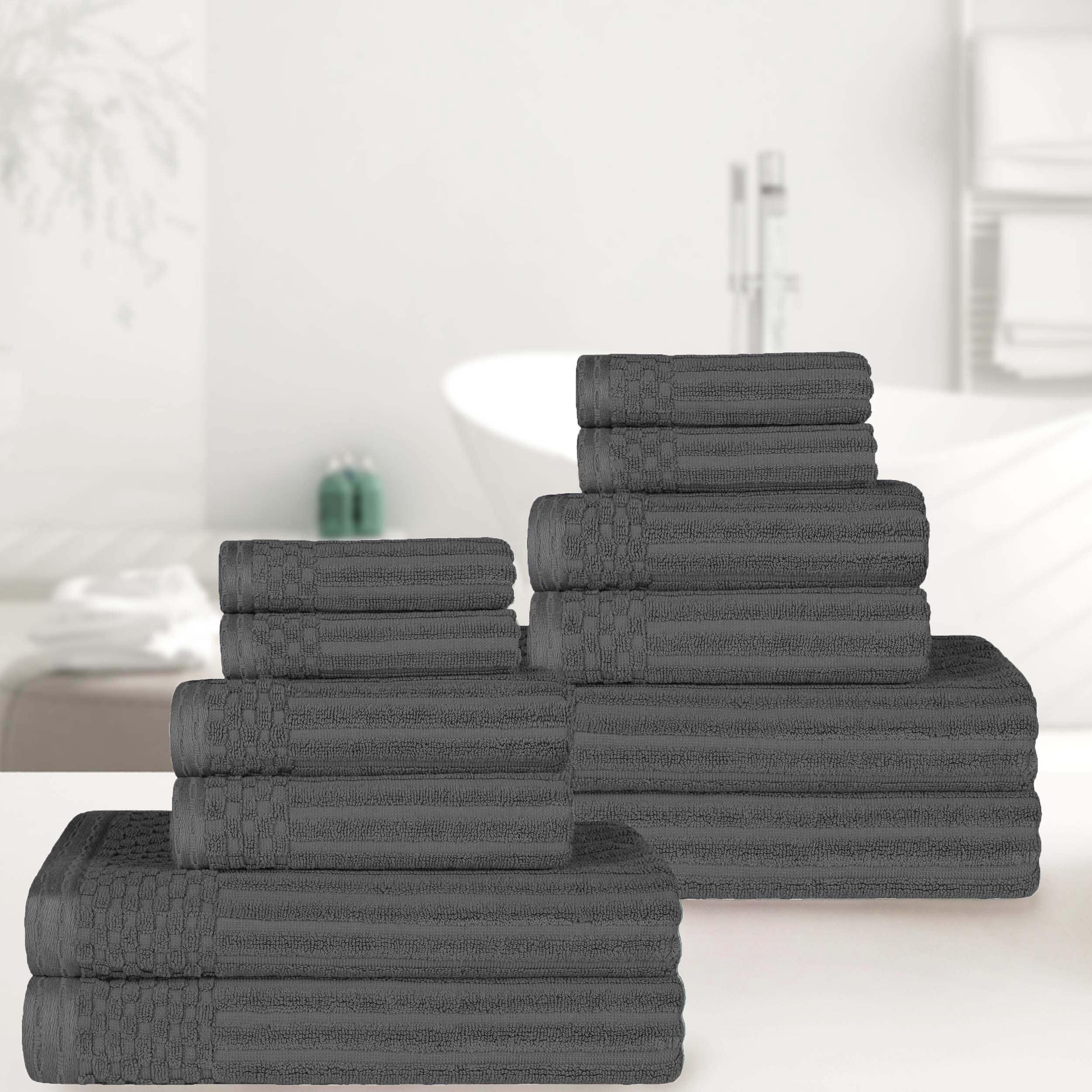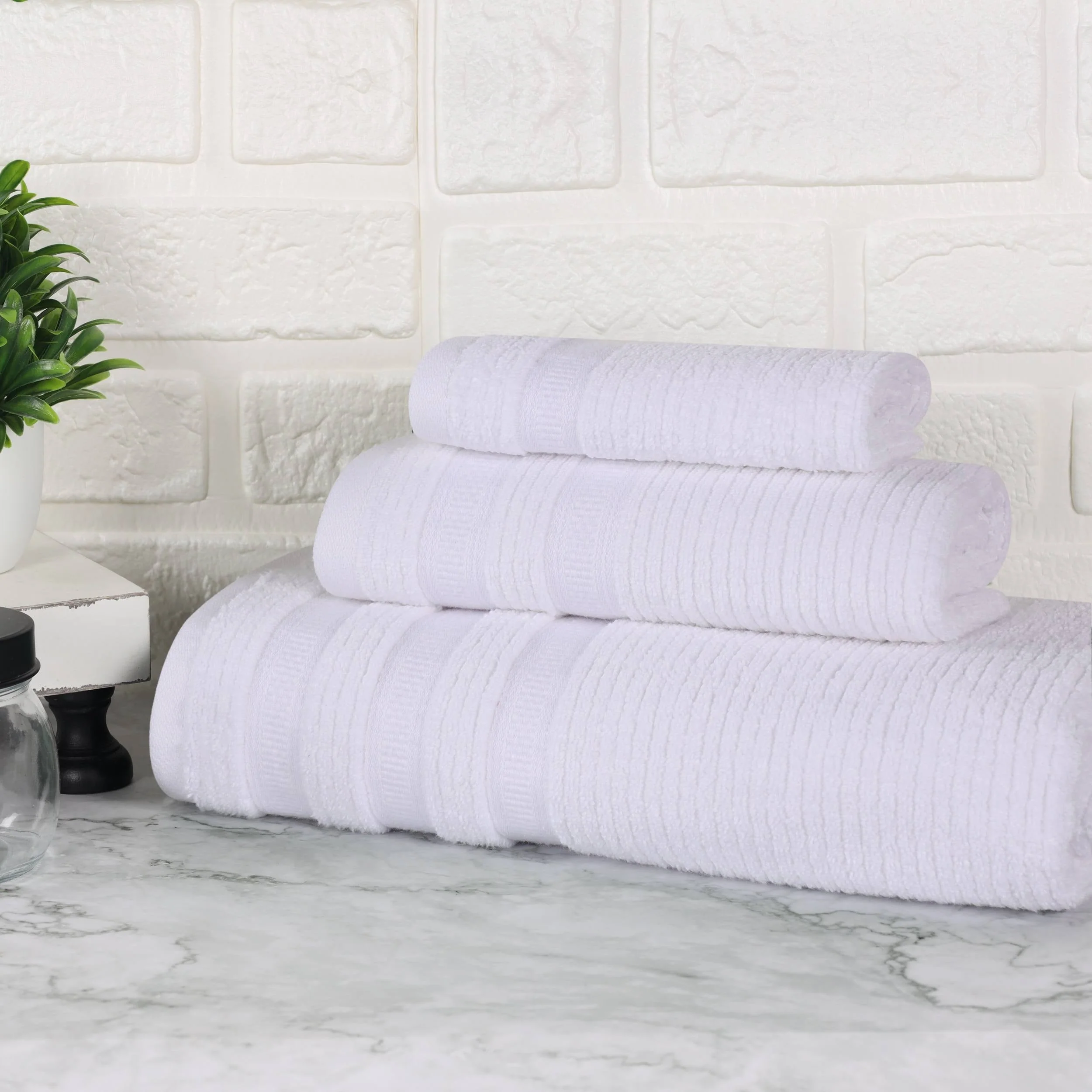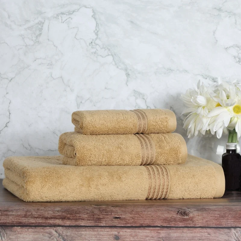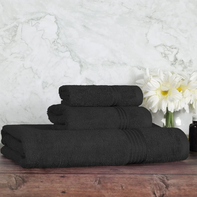 Superior Brea Zero Twist Cotton Ribbed Modern 3 Piece Bathroom Towel Set