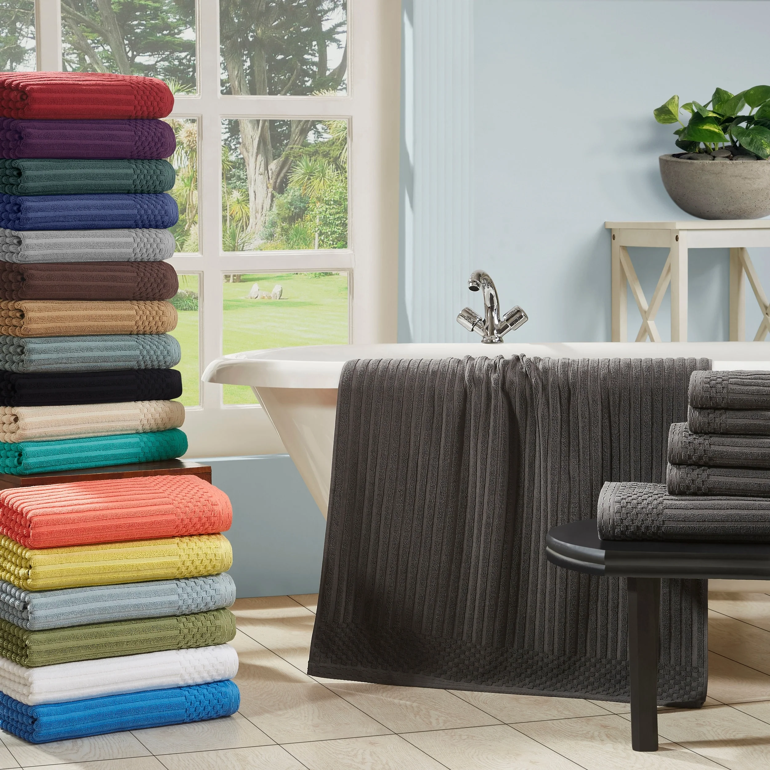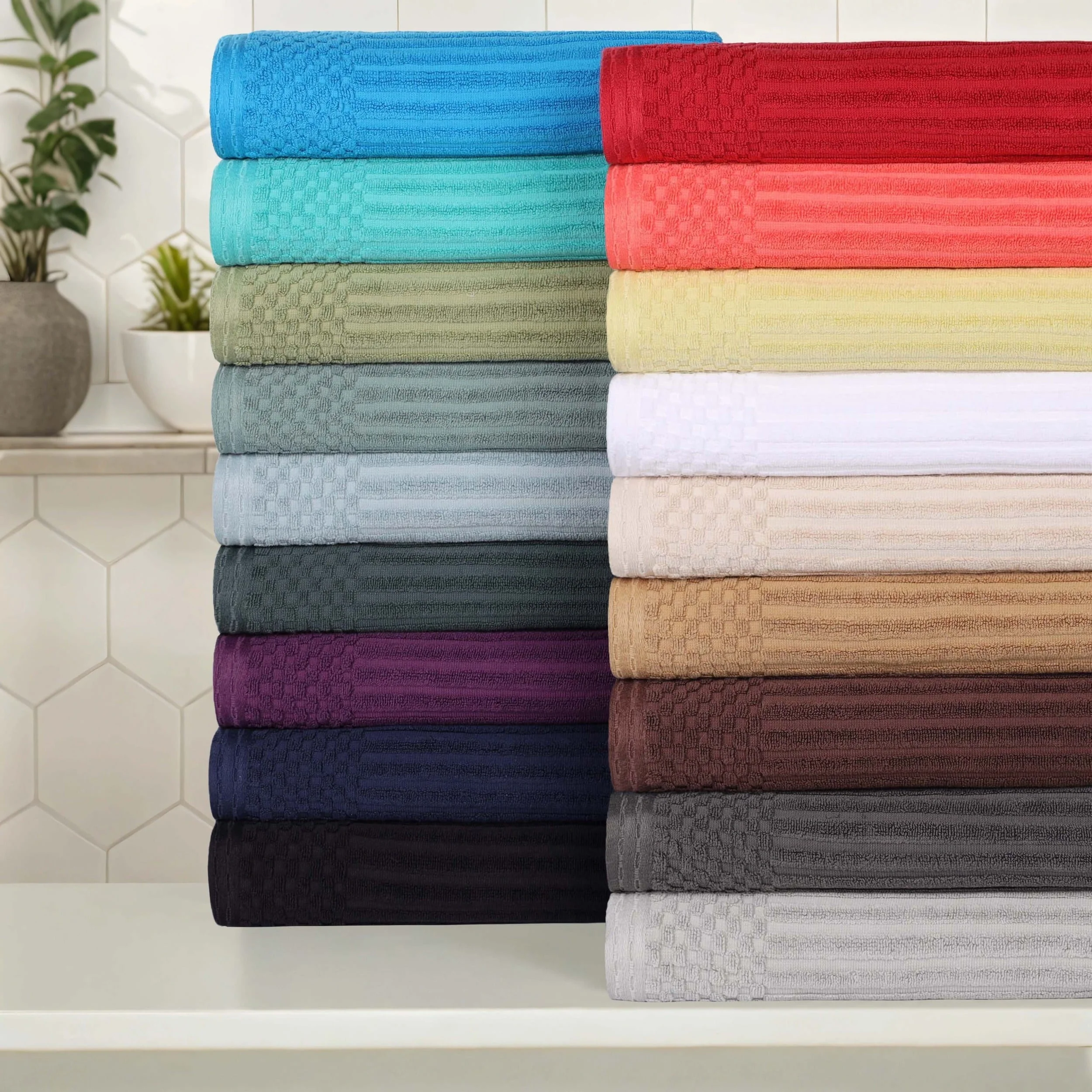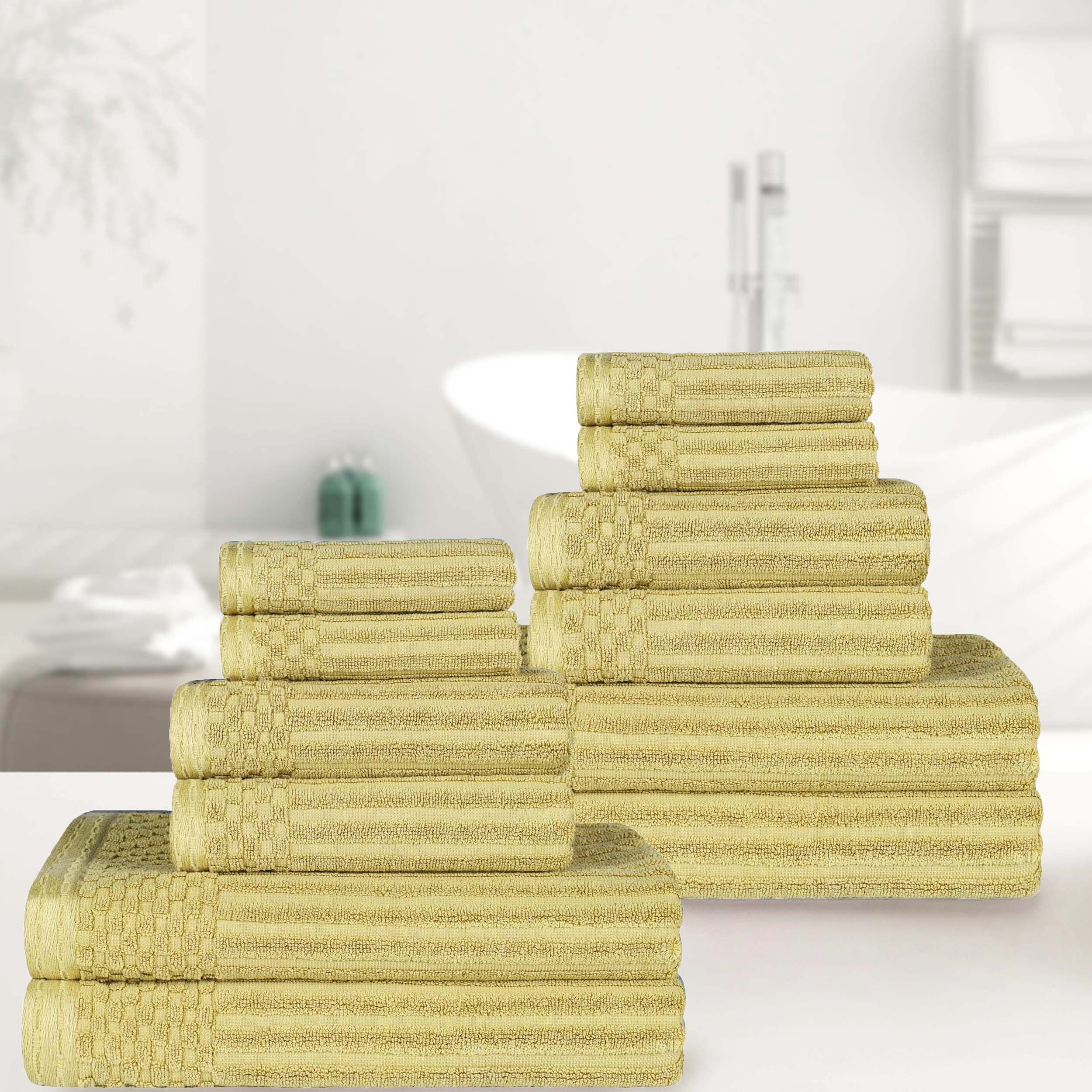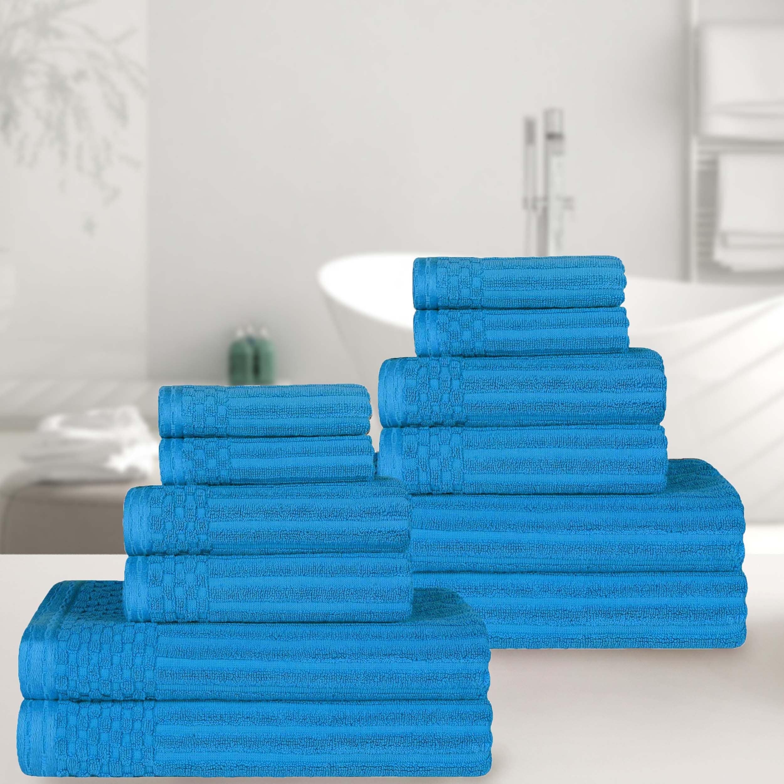 Superior Brea Zero Twist Cotton Ribbed Modern 3 Piece Bathroom Towel Set