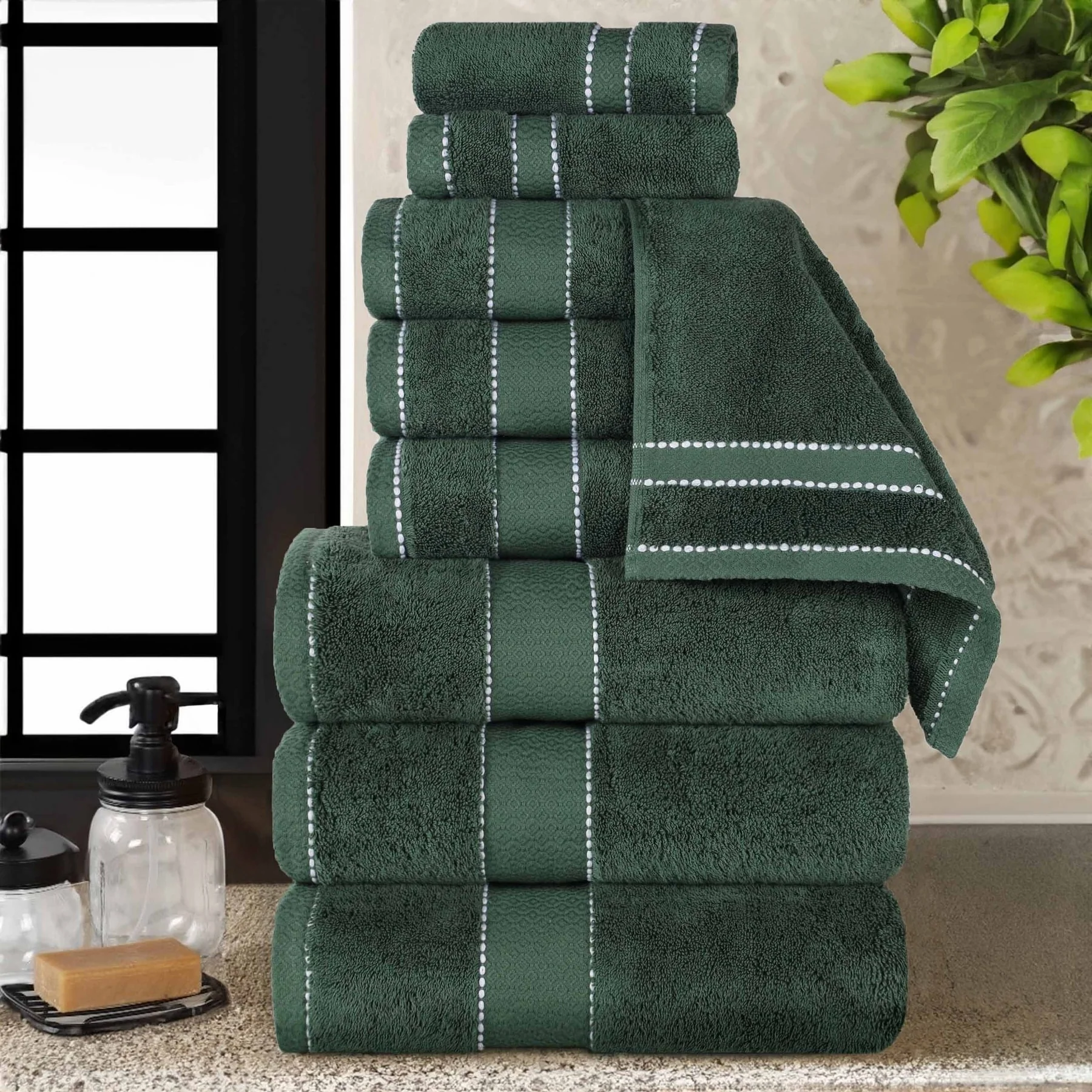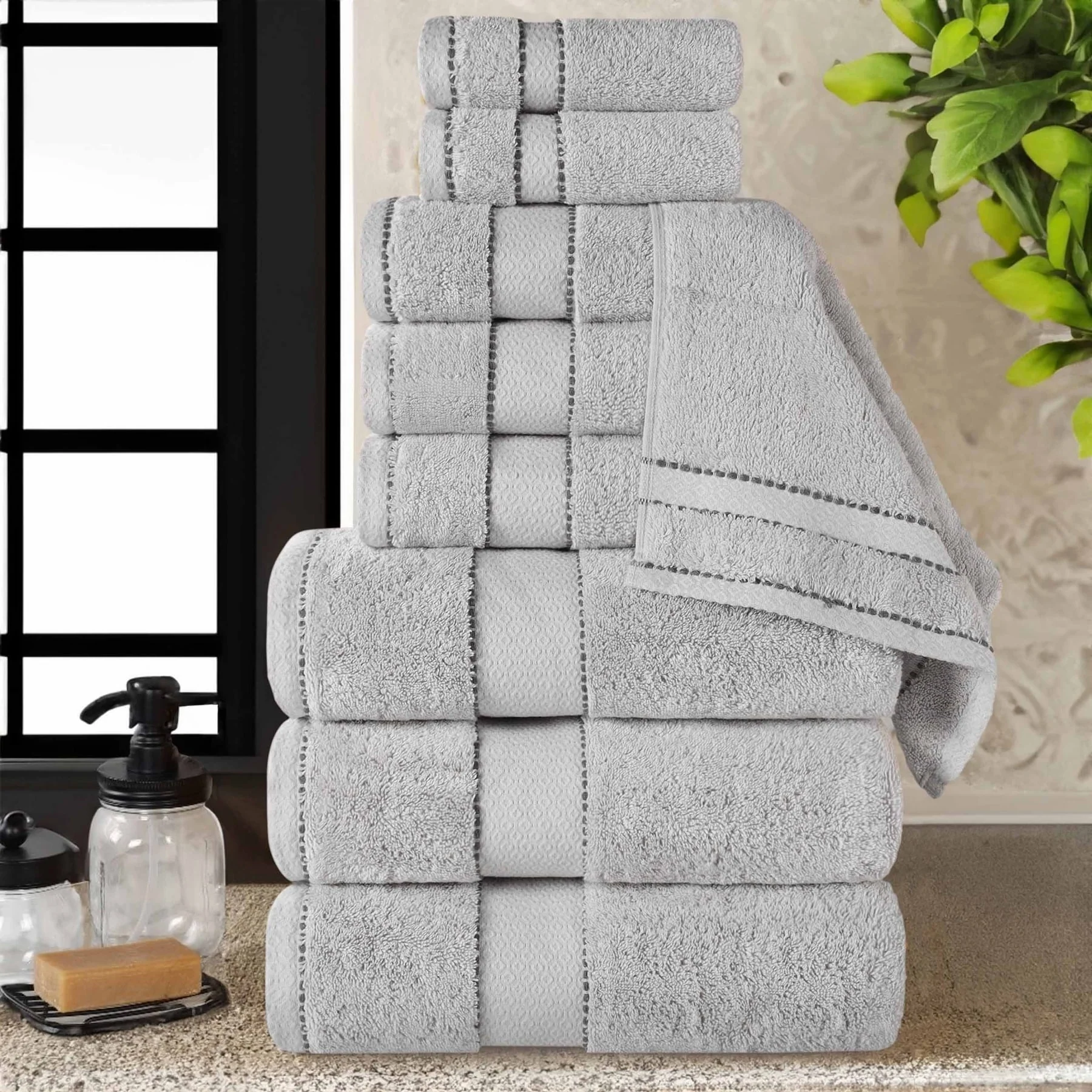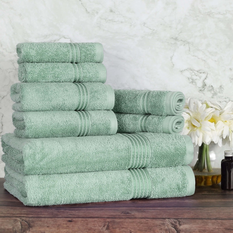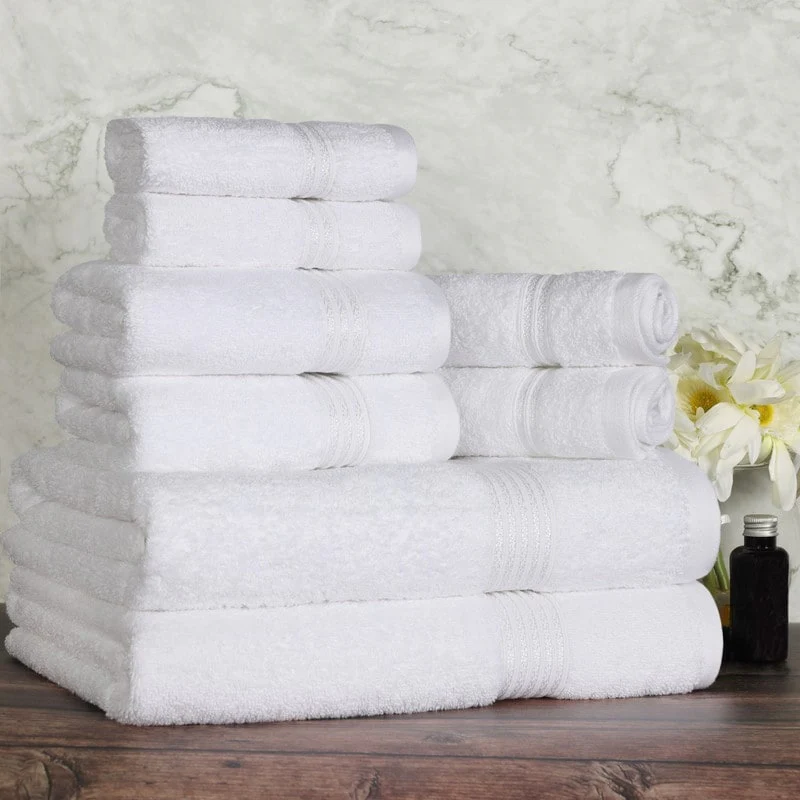 One hundred percent Cotton 8 Piece Antimicrobial Towel Set