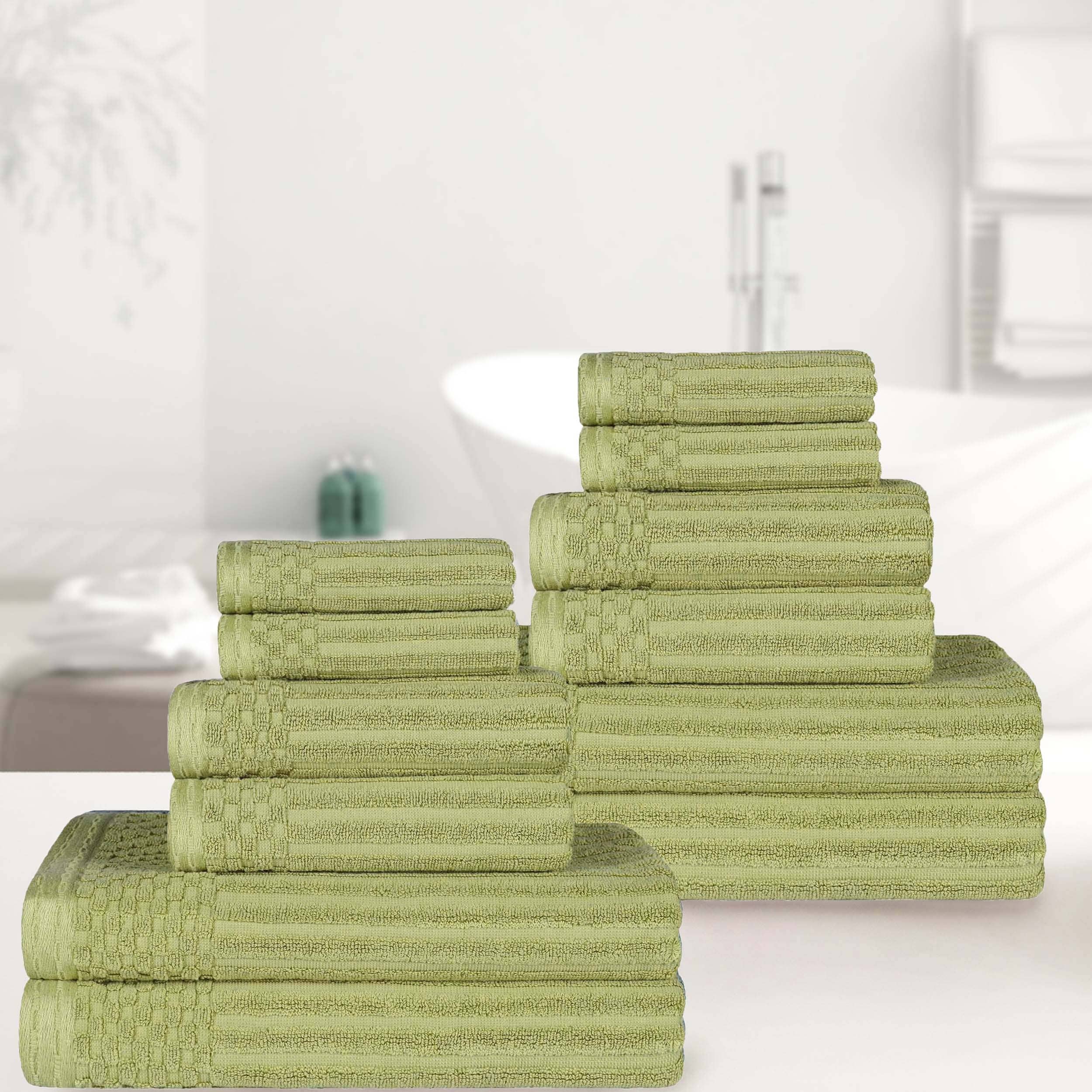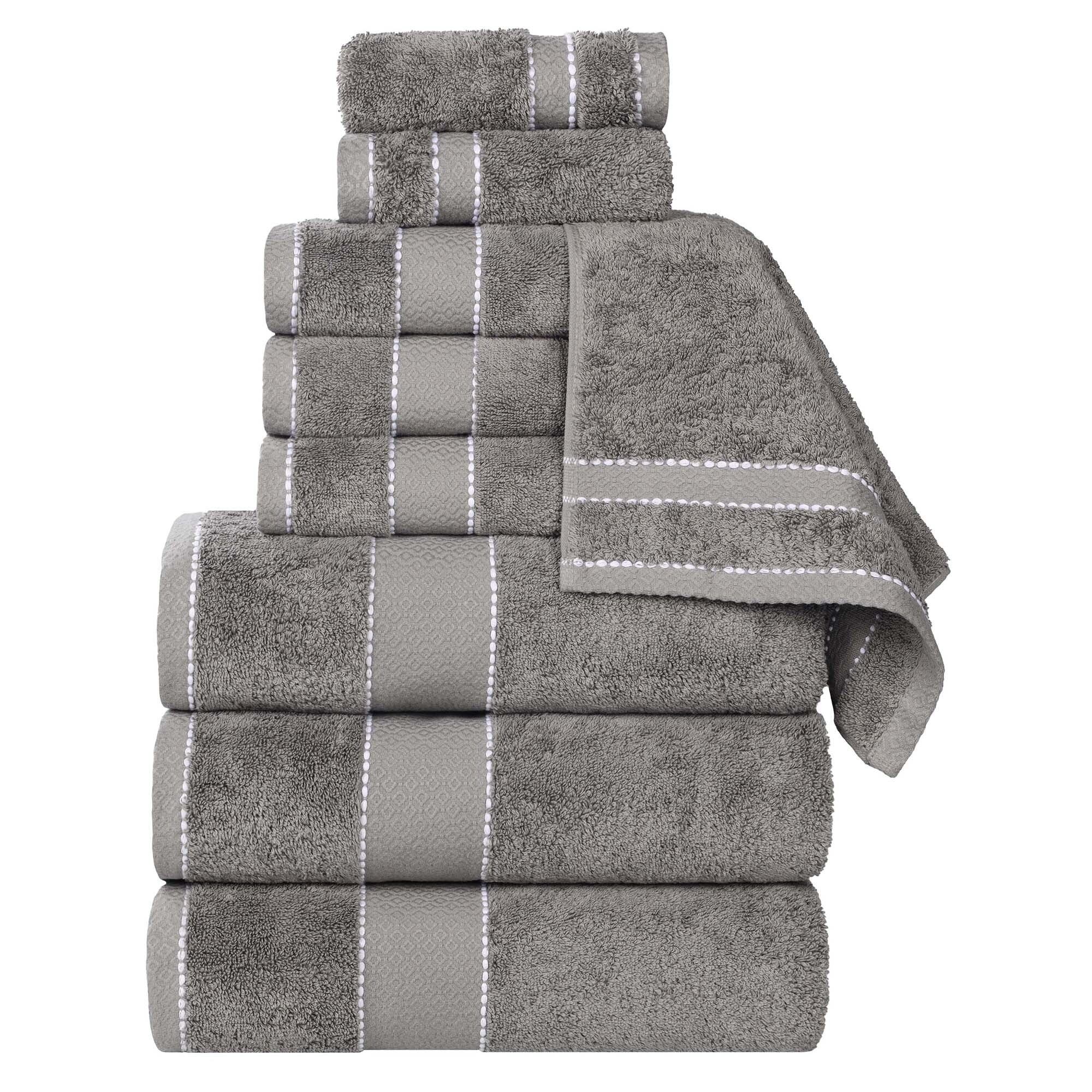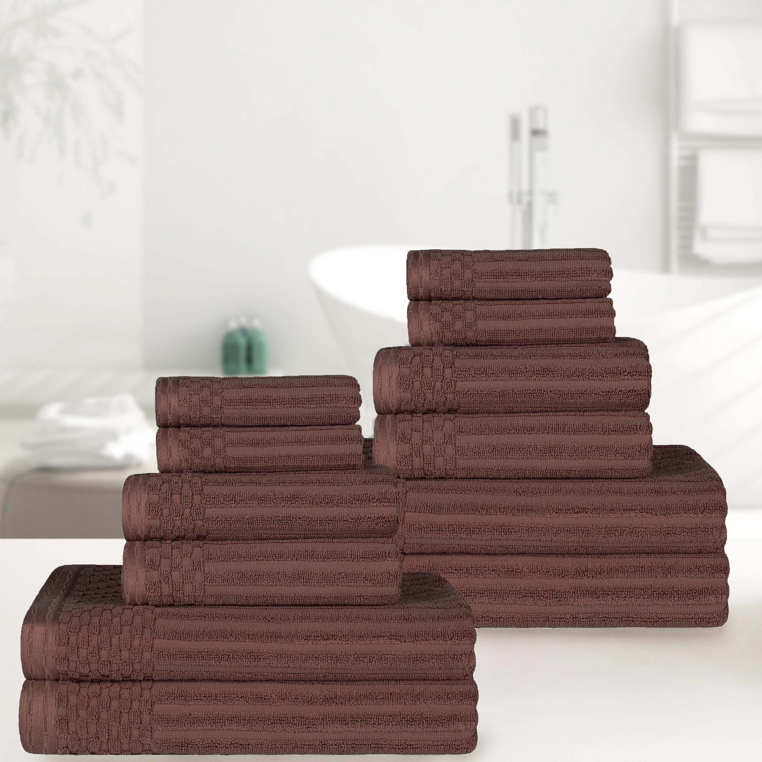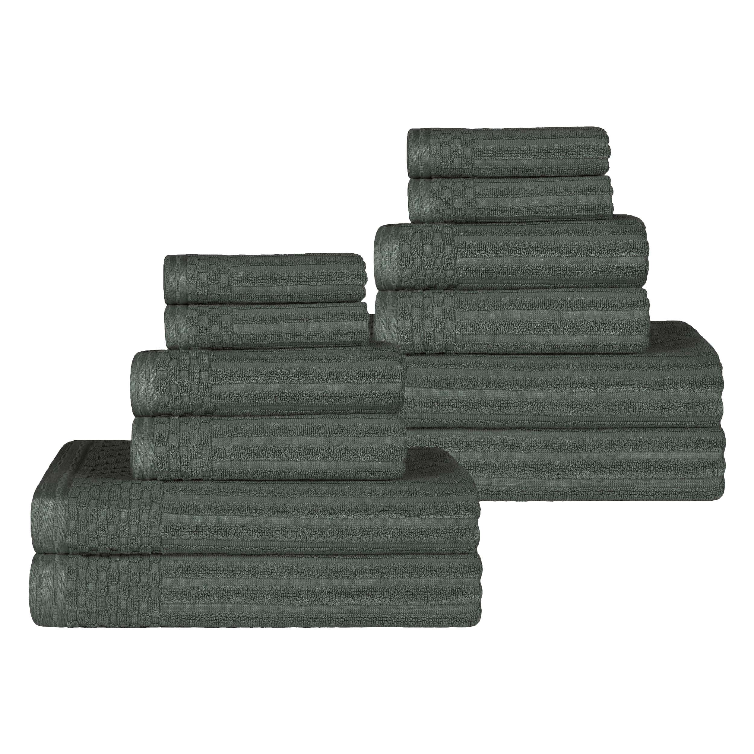 Superior Cotton 12-Piece Solid and Checkered Border Towel Set