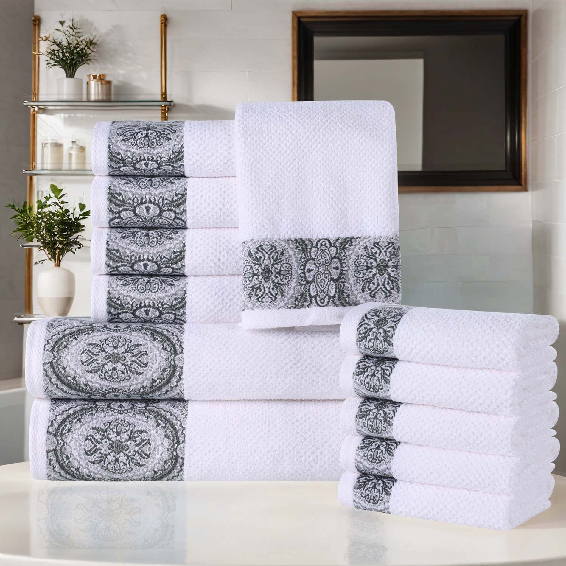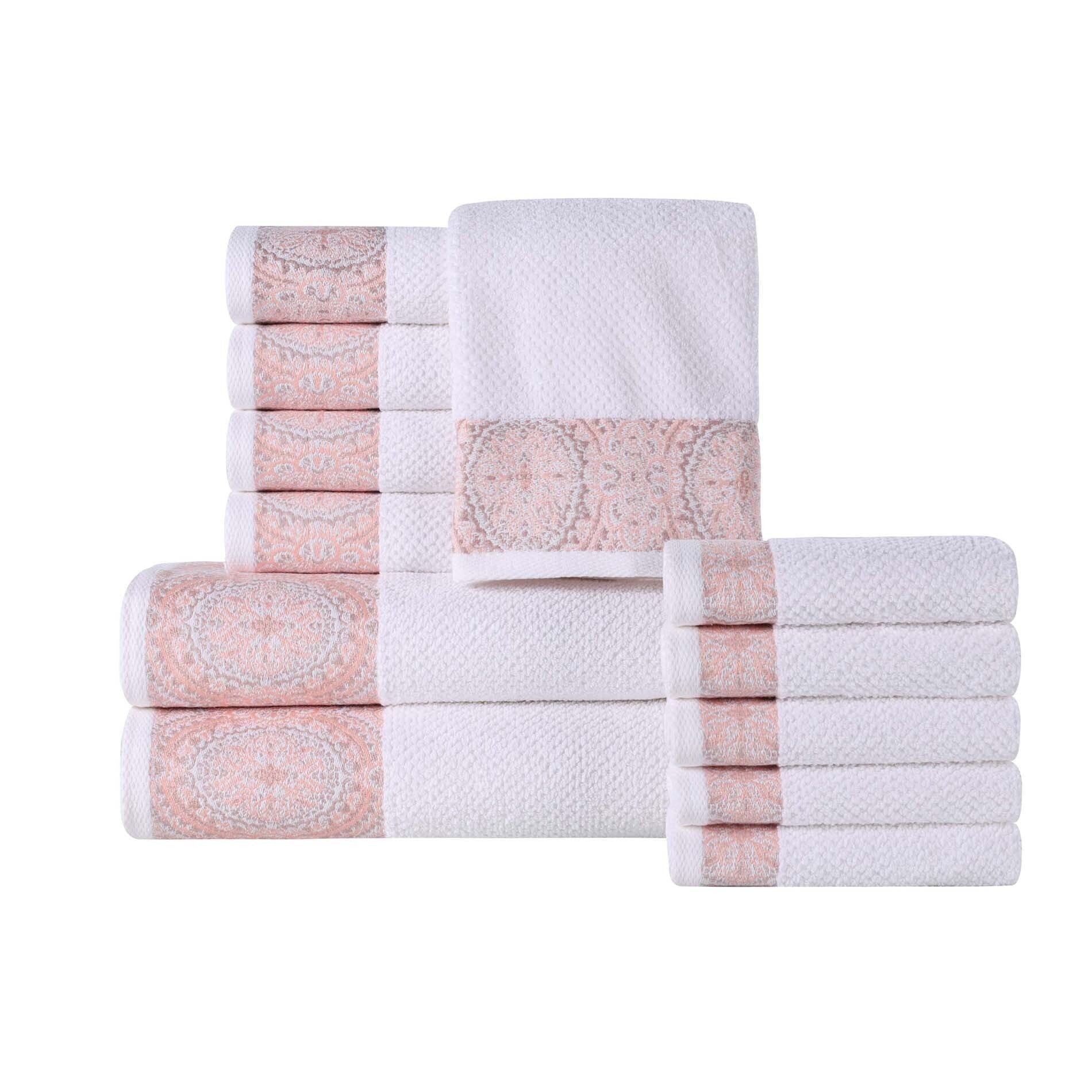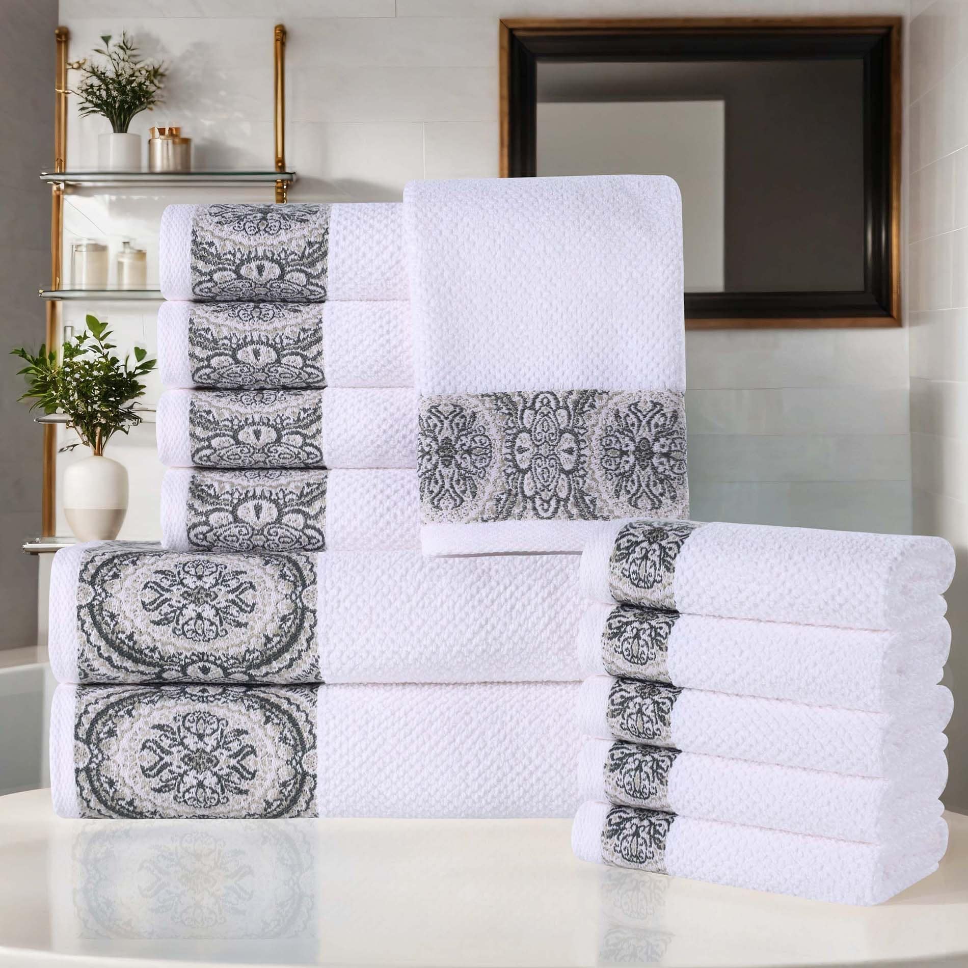 Superior Medallion Cotton Jacquard Texture 12 Piece Assorted Towel Set