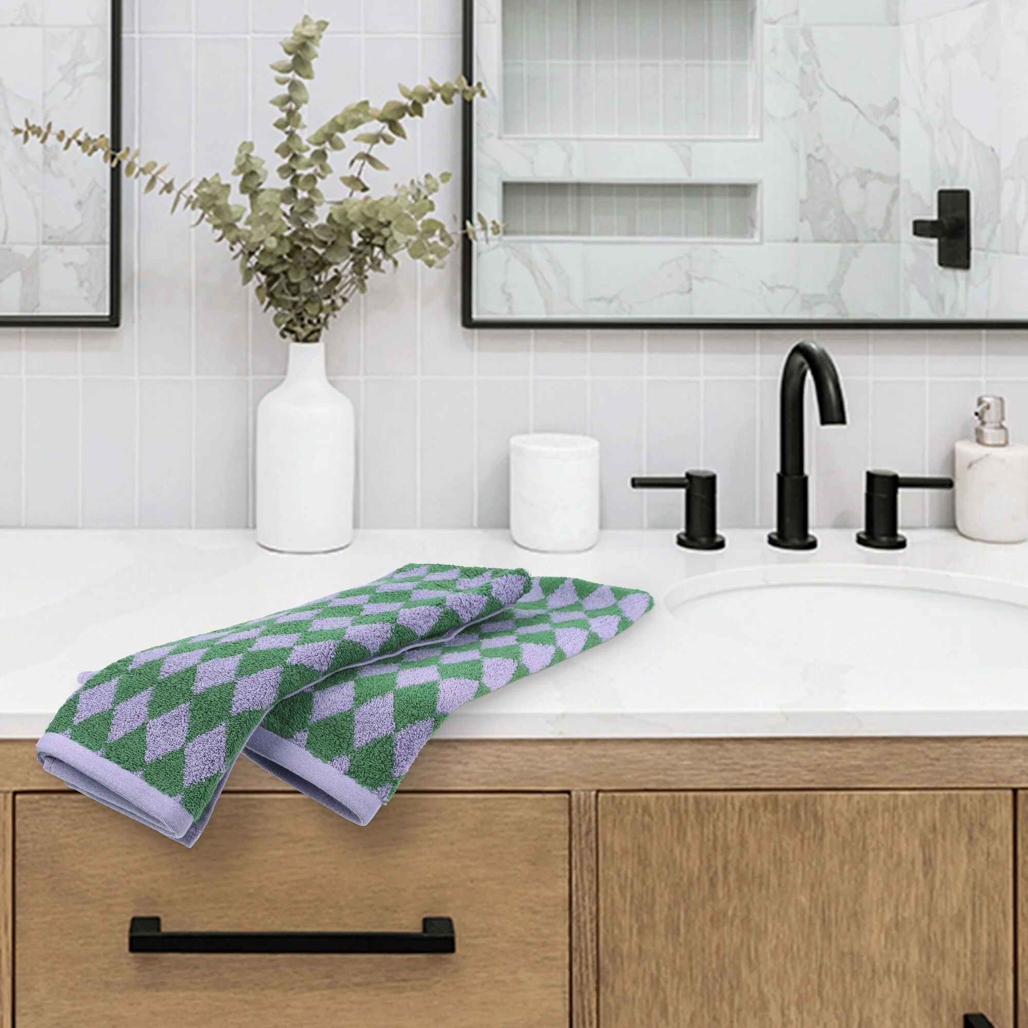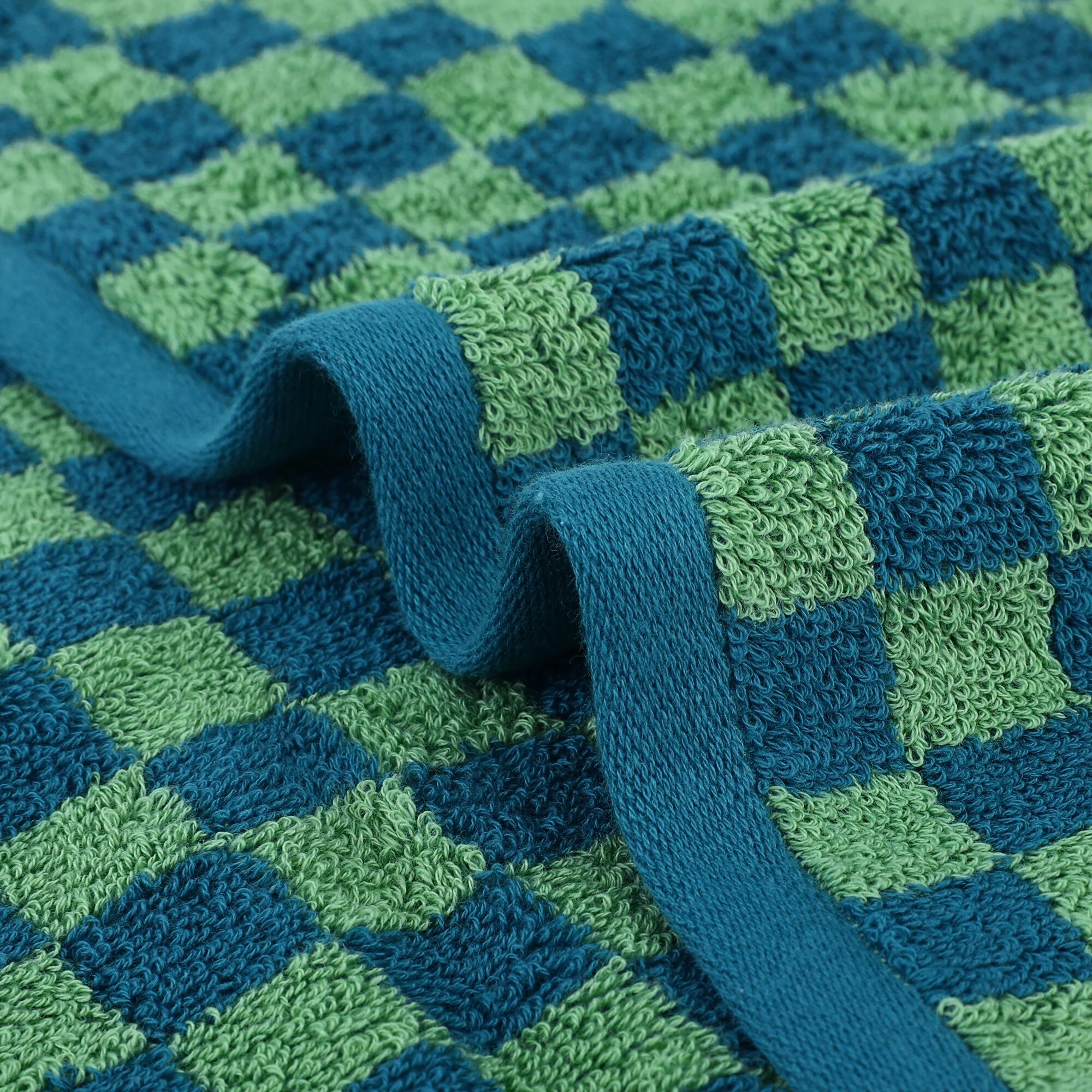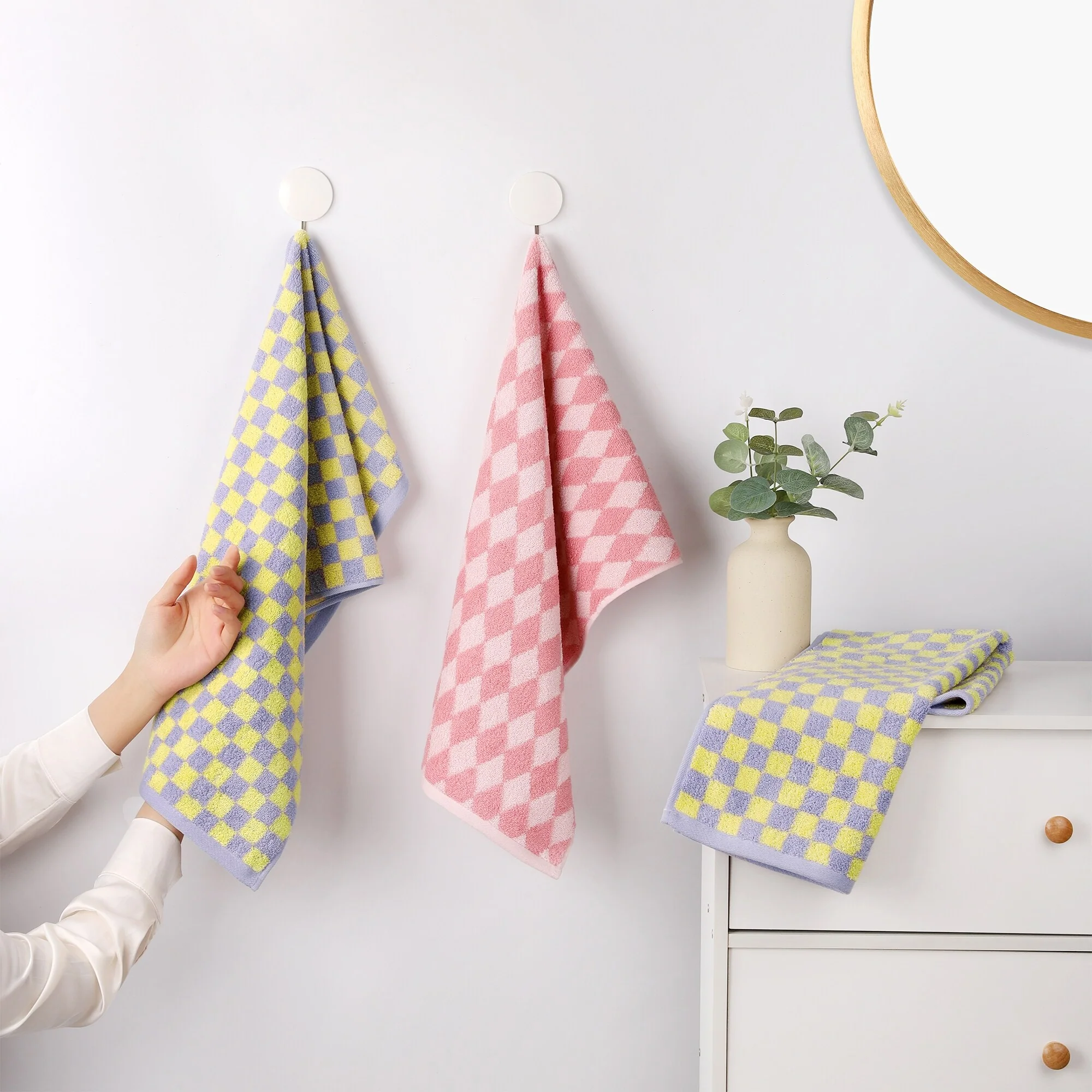 Checkered Cotton Hand Towels for Bathroom, Geometry Pattern Soft Absorbent Bath Hand Towel for Home Decor