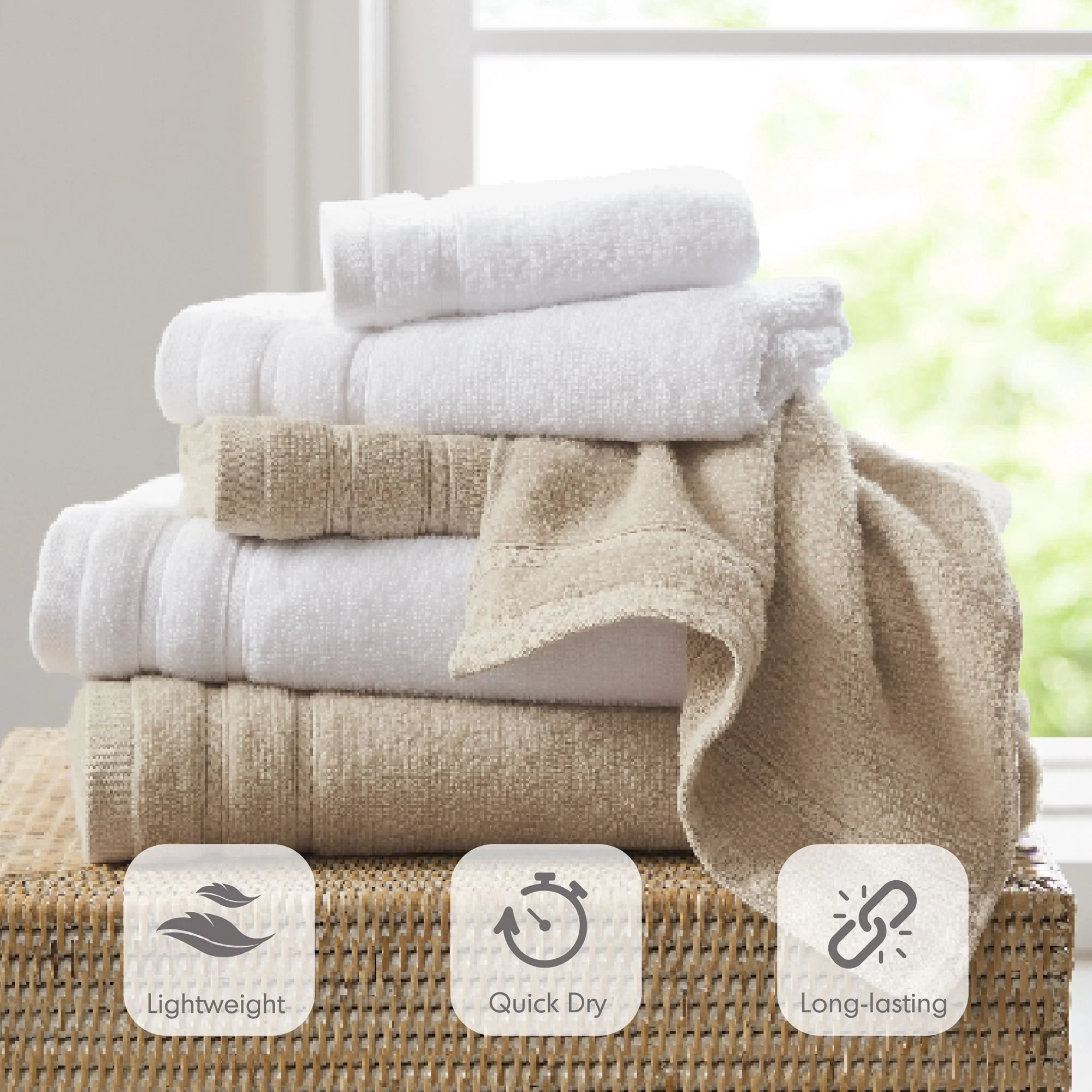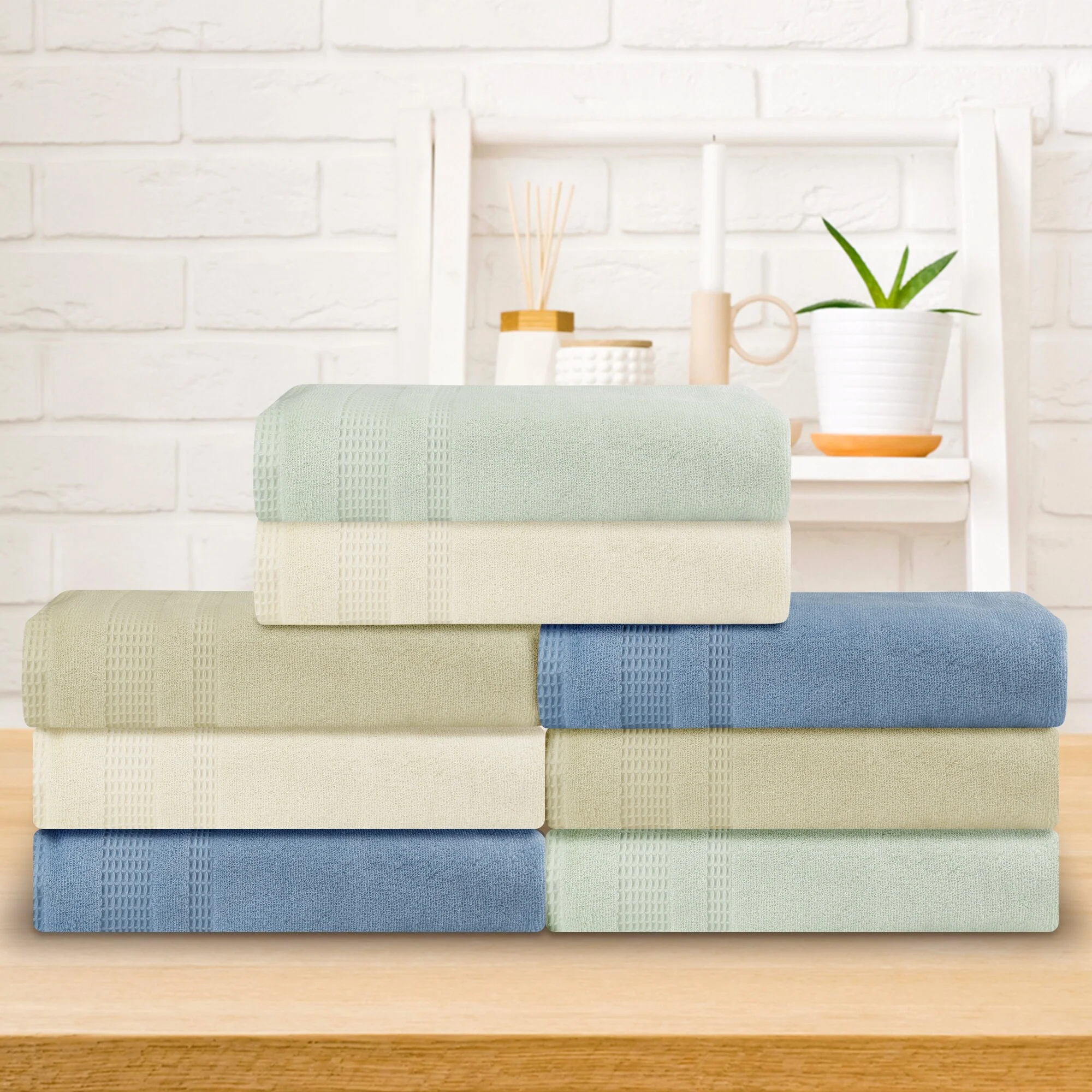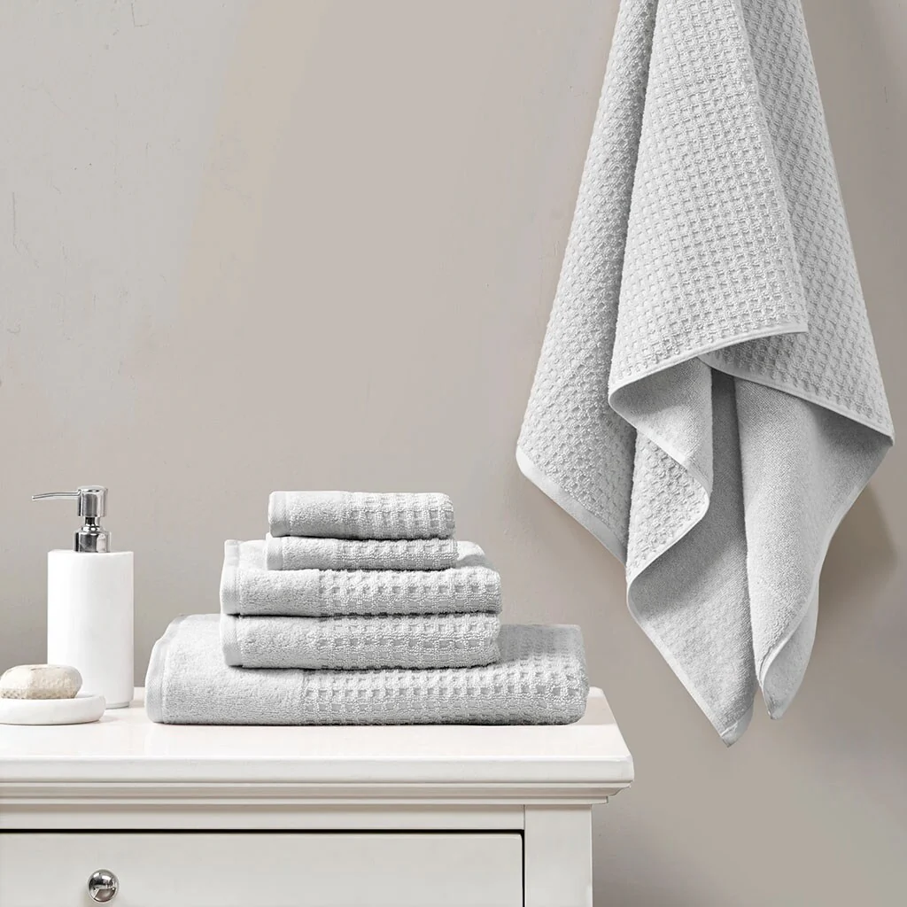 Cotton Waffle Jacquard Antimicrobial Bath Towel 6 Piece Set