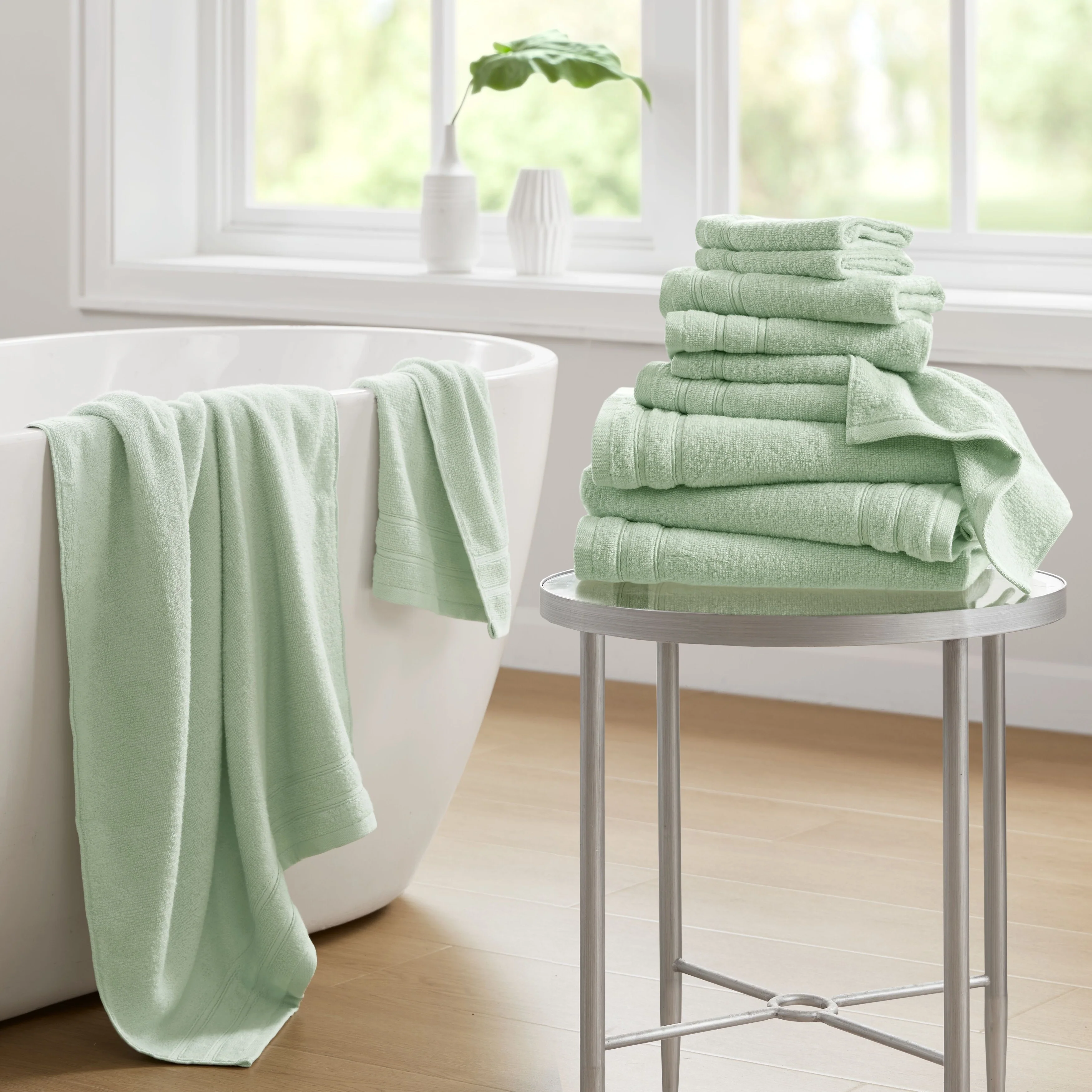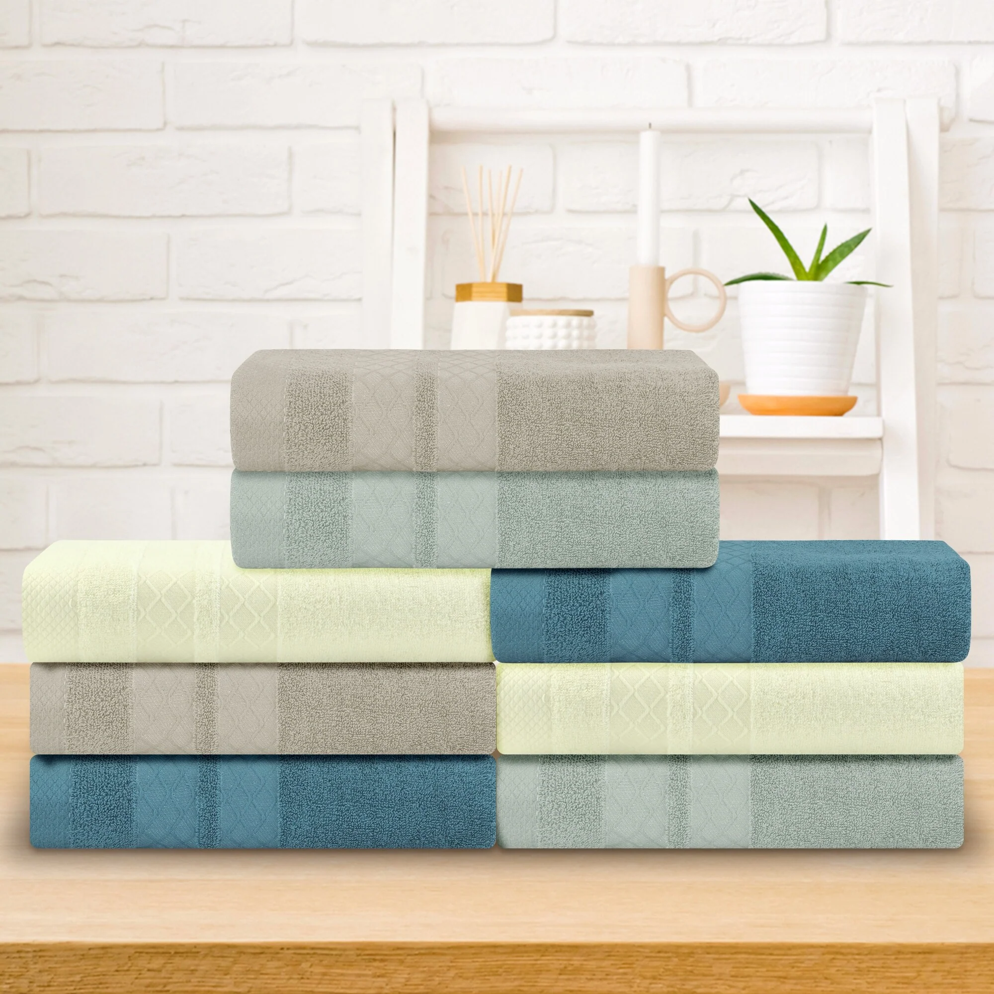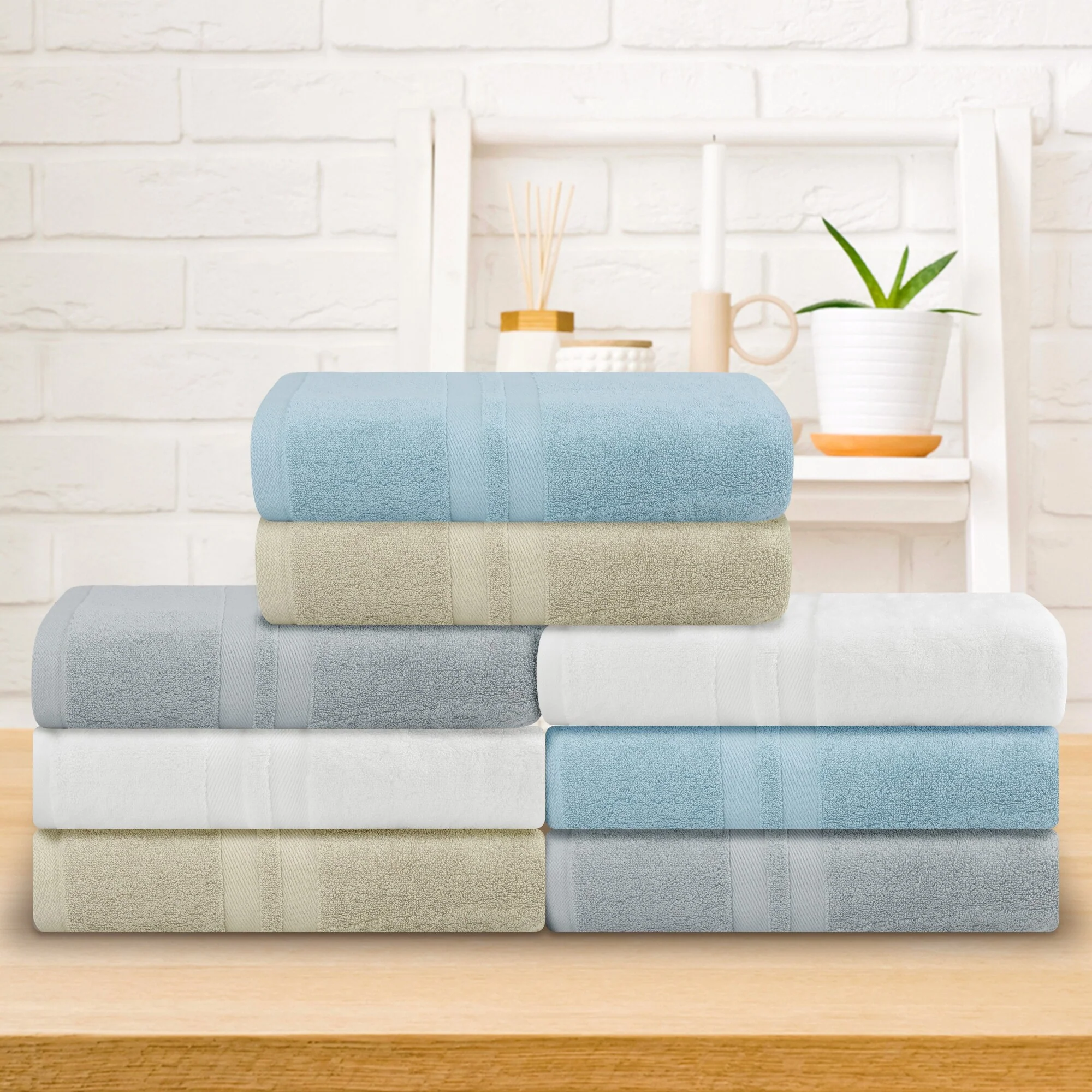 One hundred percent Cotton 8 Piece Antimicrobial Towel Set