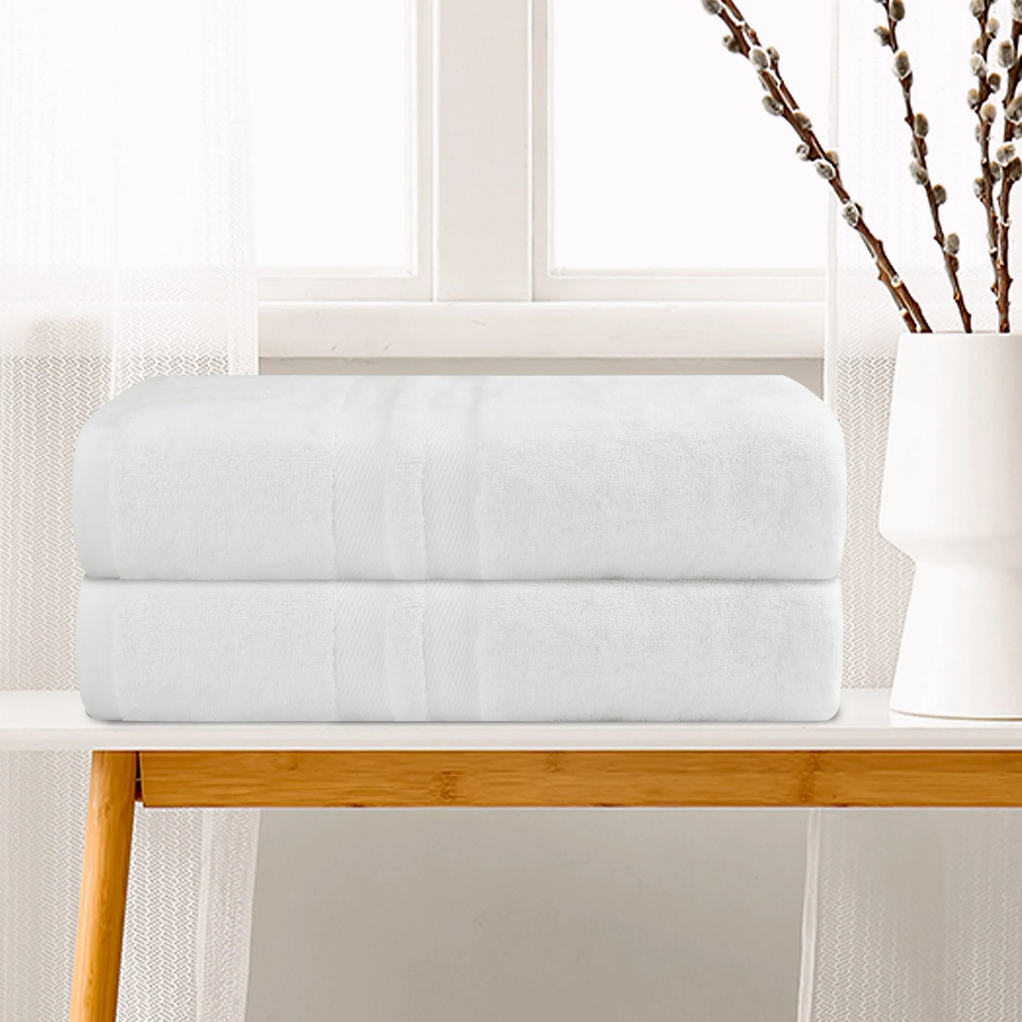 Cotton Bath Towel Set of 2, Luxury Towels, Highly Absorbent and Quick Dry Towels for Hotel, Spa 28" x 56"