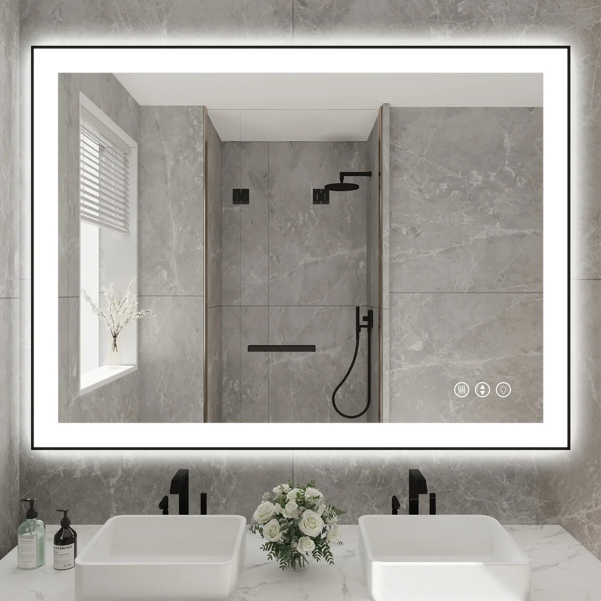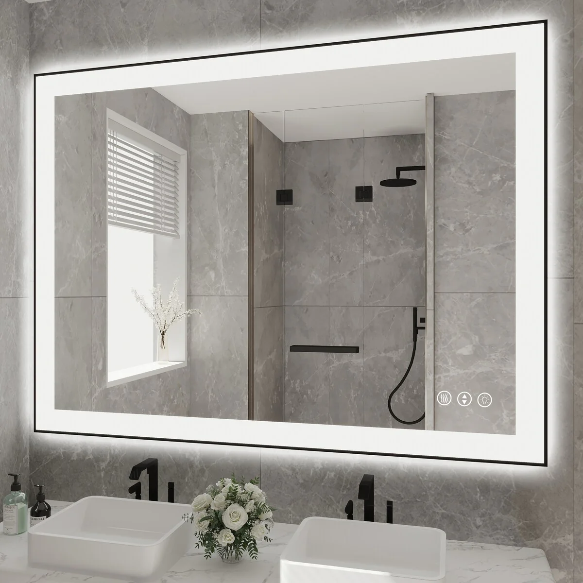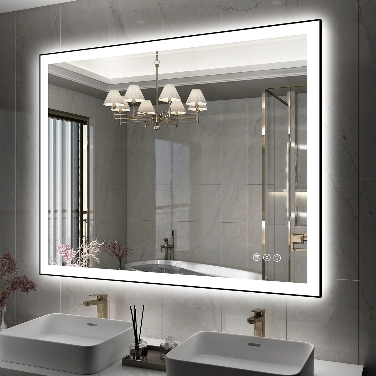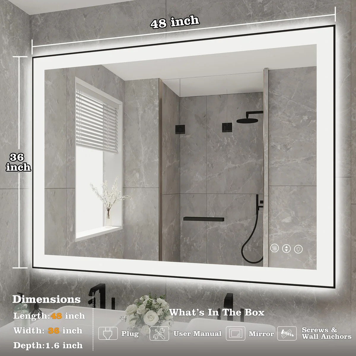 48 in. W x 36 in. H Rectangular Aluminum Framed Backlit and Front light LED wall mounted Bathroom Vanity Mirror in Black