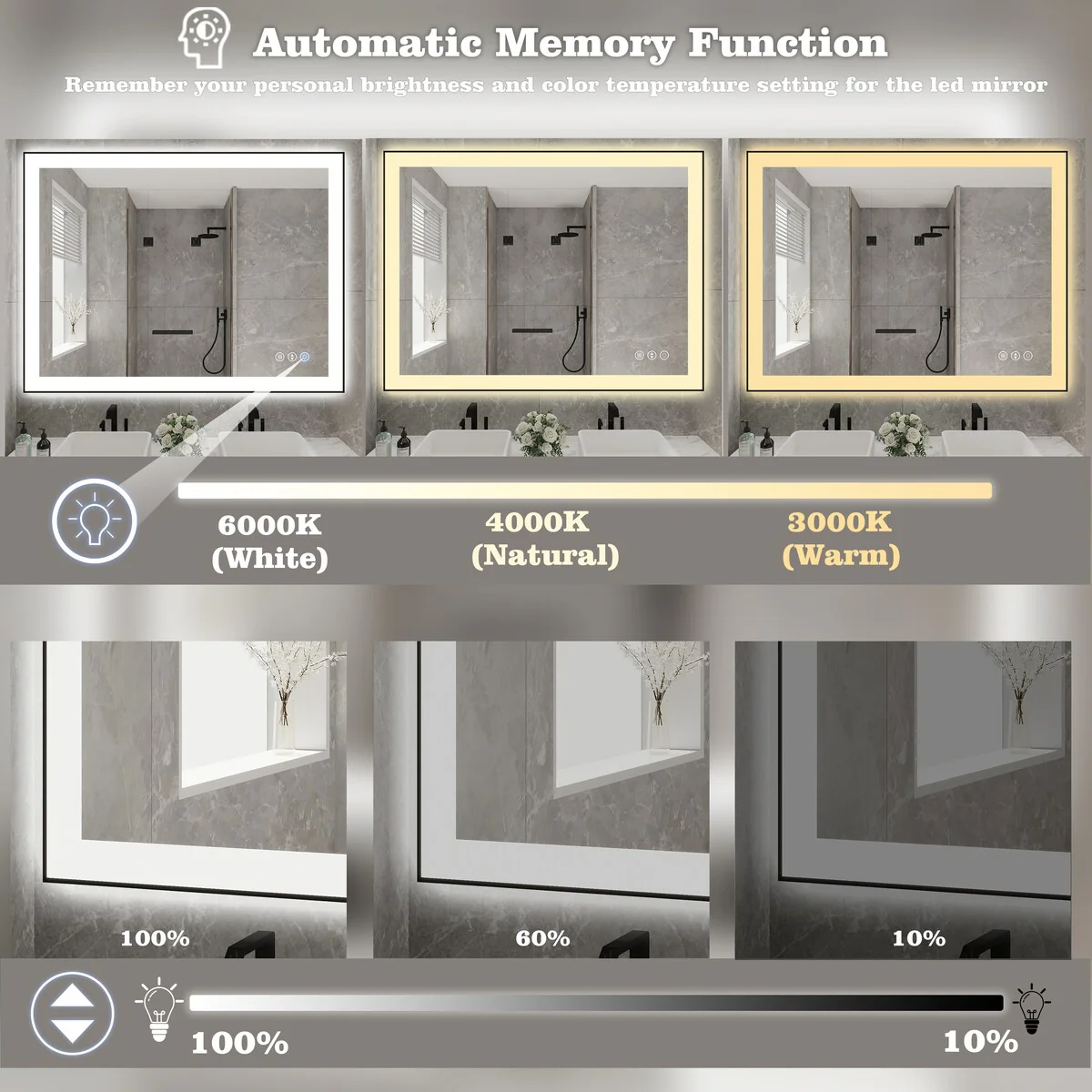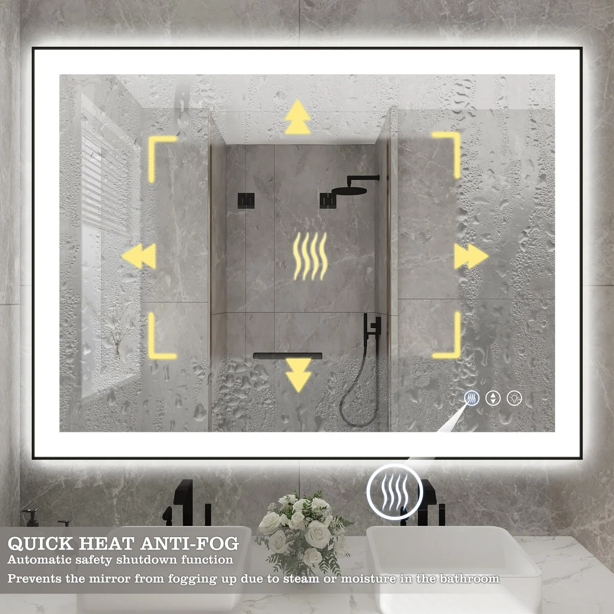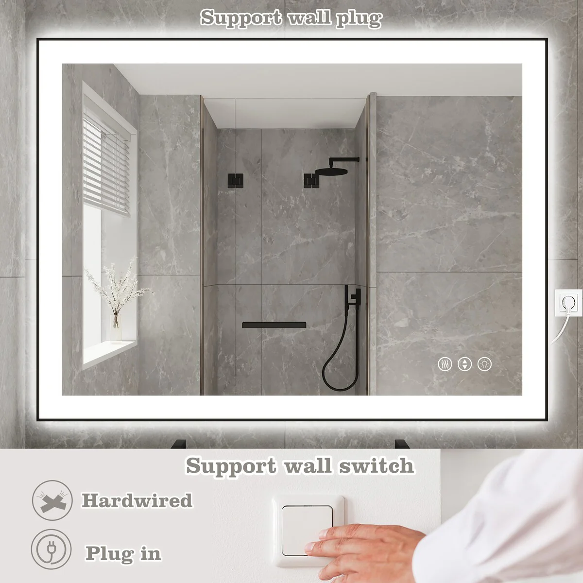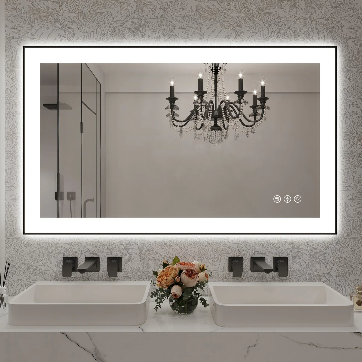 48 in. W x 36 in. H Rectangular Aluminum Framed Backlit and Front light LED wall mounted Bathroom Vanity Mirror in Black