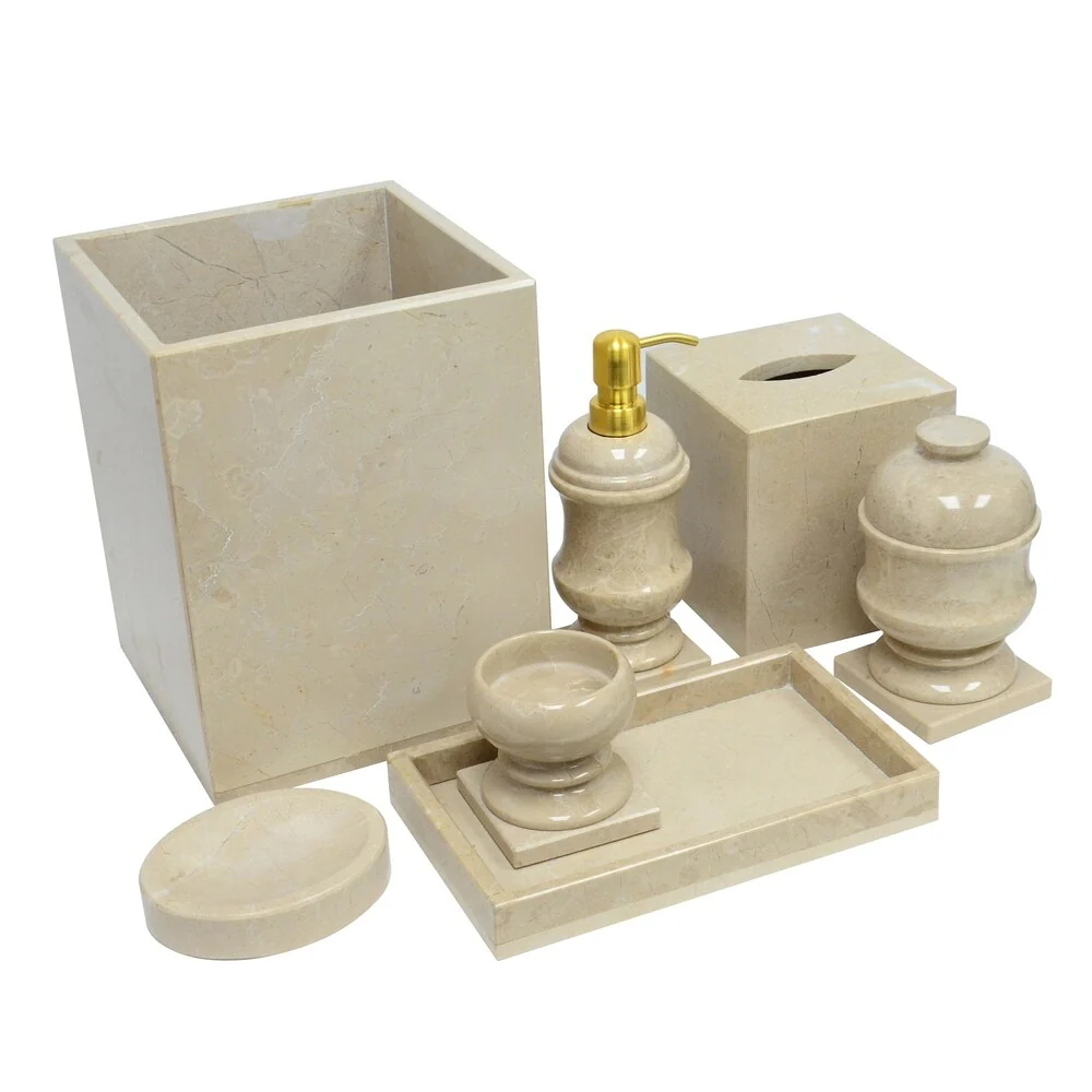 Polished Marble 7-Piece Bath Set, Beige, Shower and Bathroom Accessory