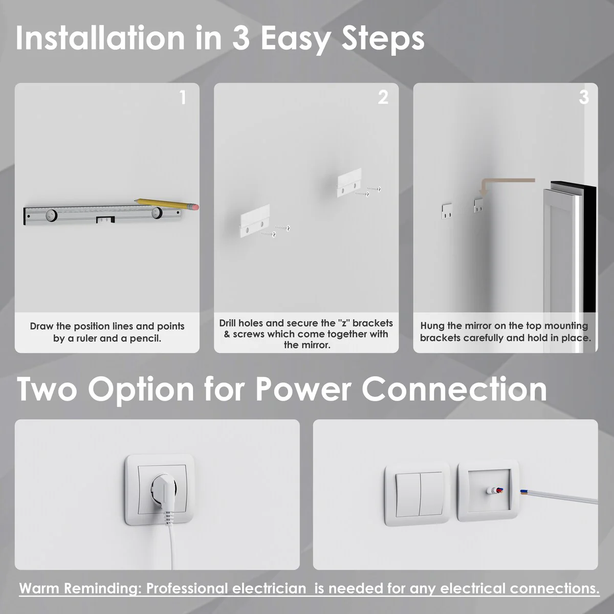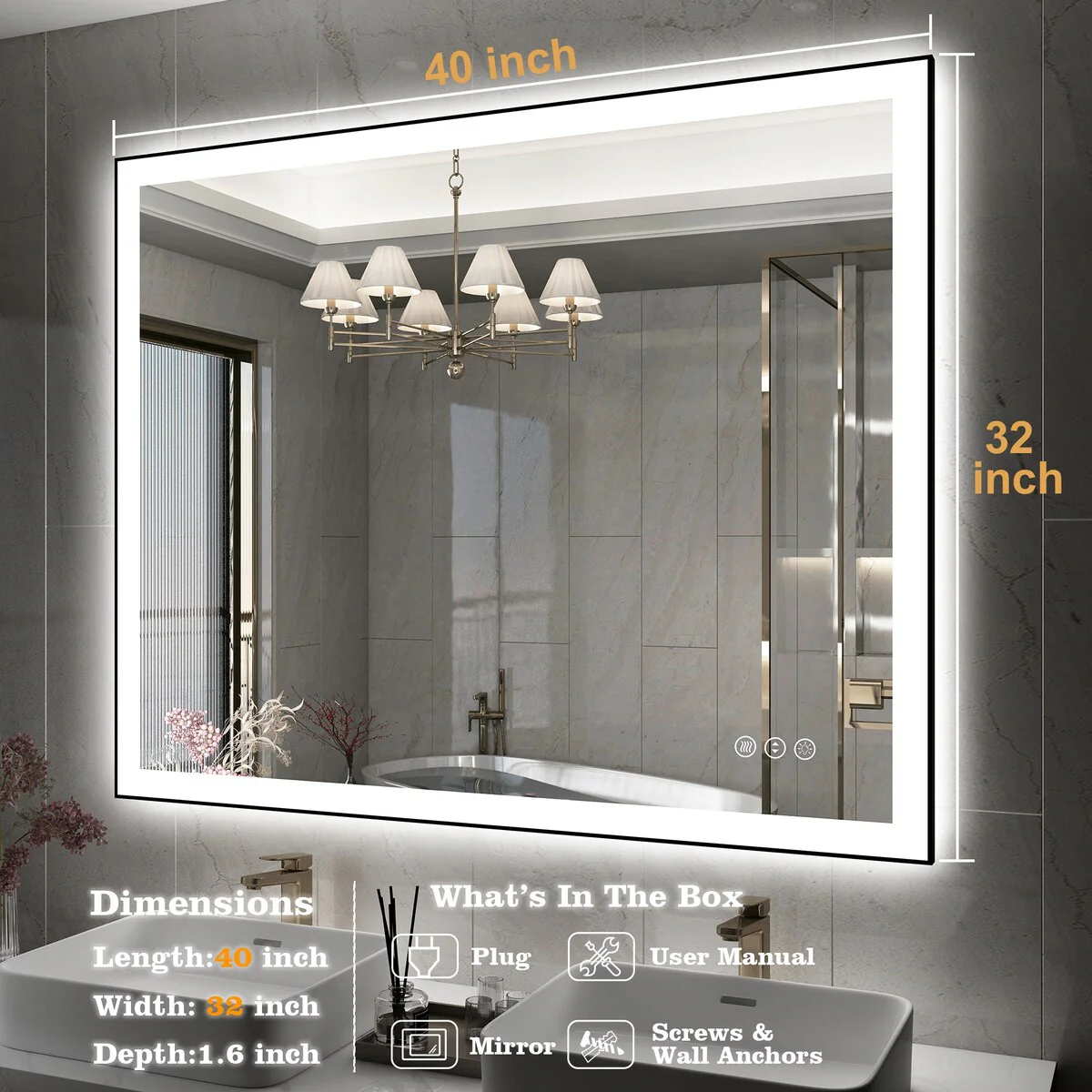 40 in. W x 24 in. H Rectangular Aluminum Framed Backlit and Front light LED wall mounted Bathroom Vanity Mirror in Black