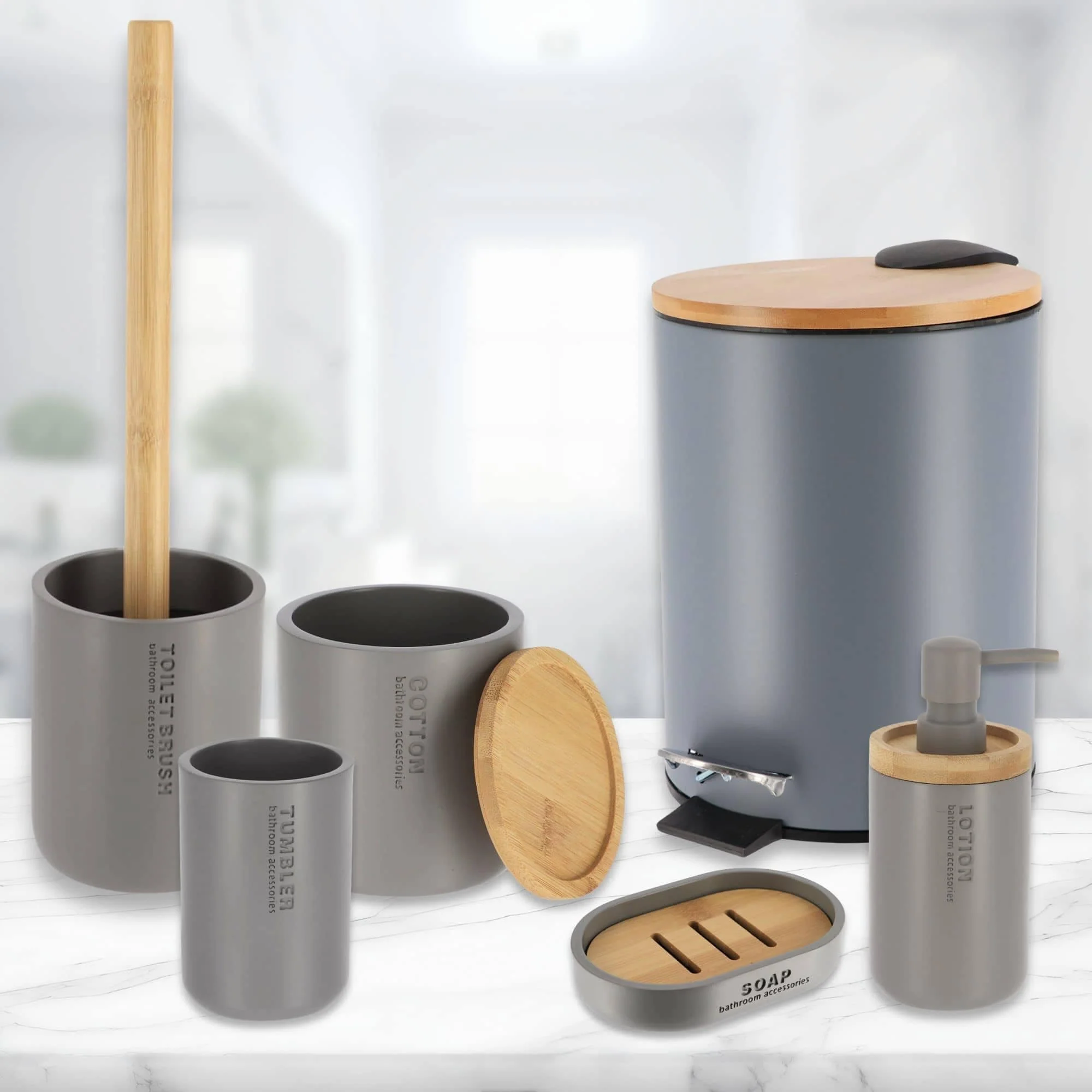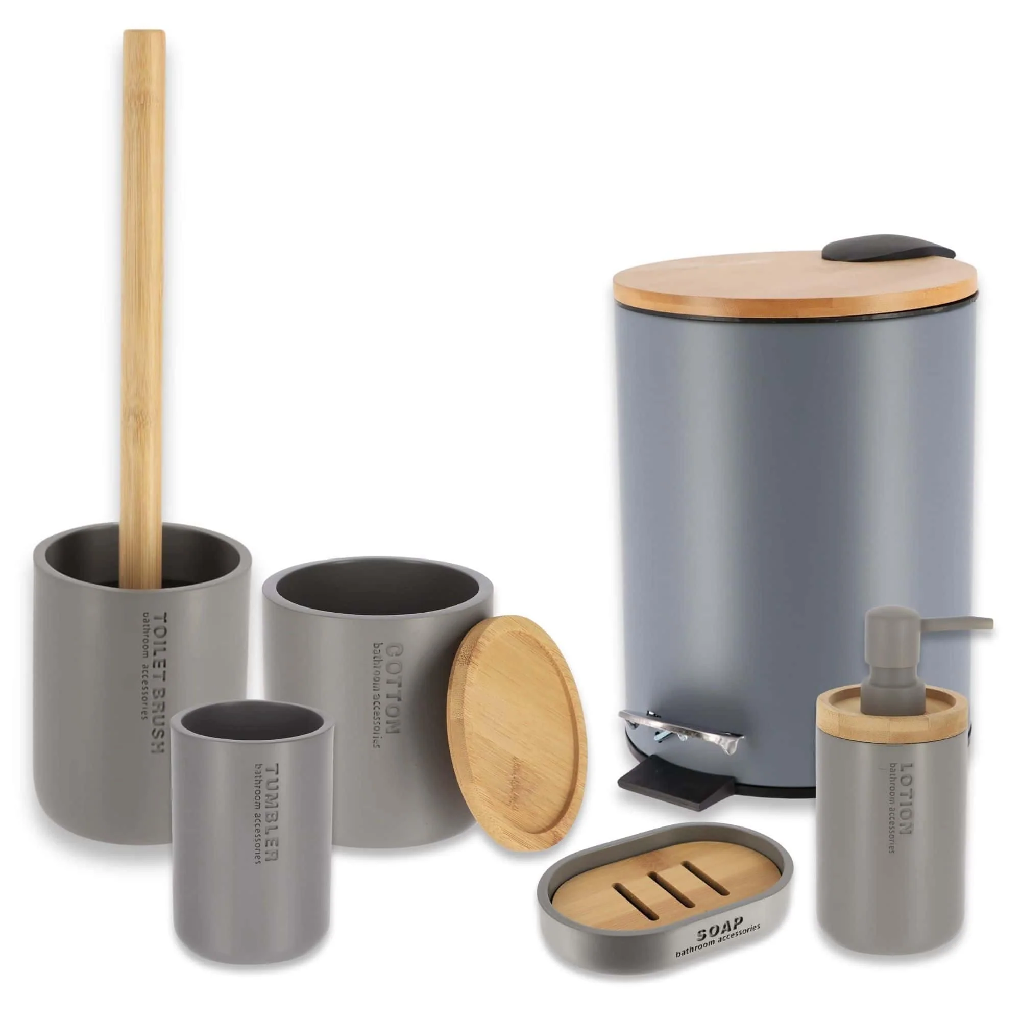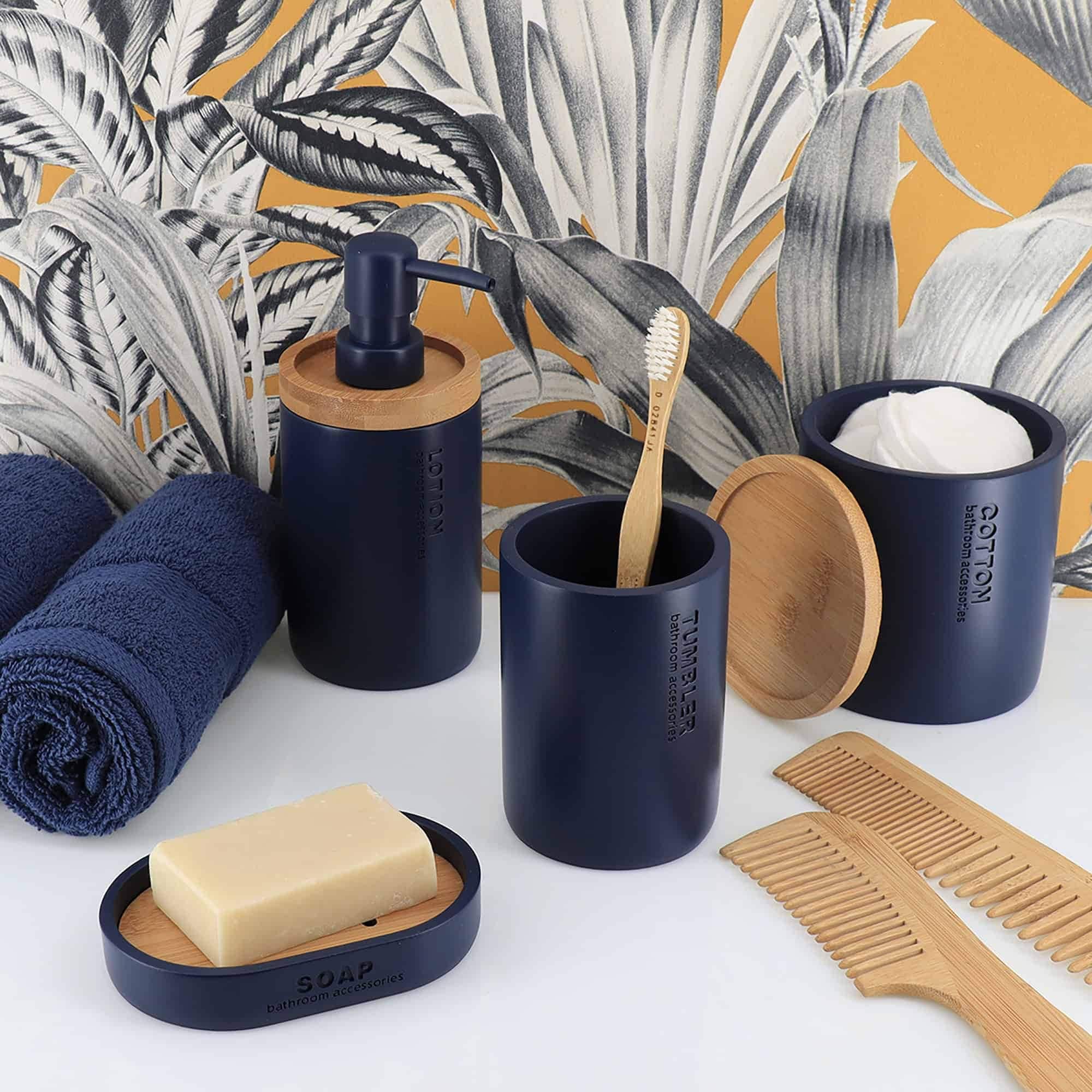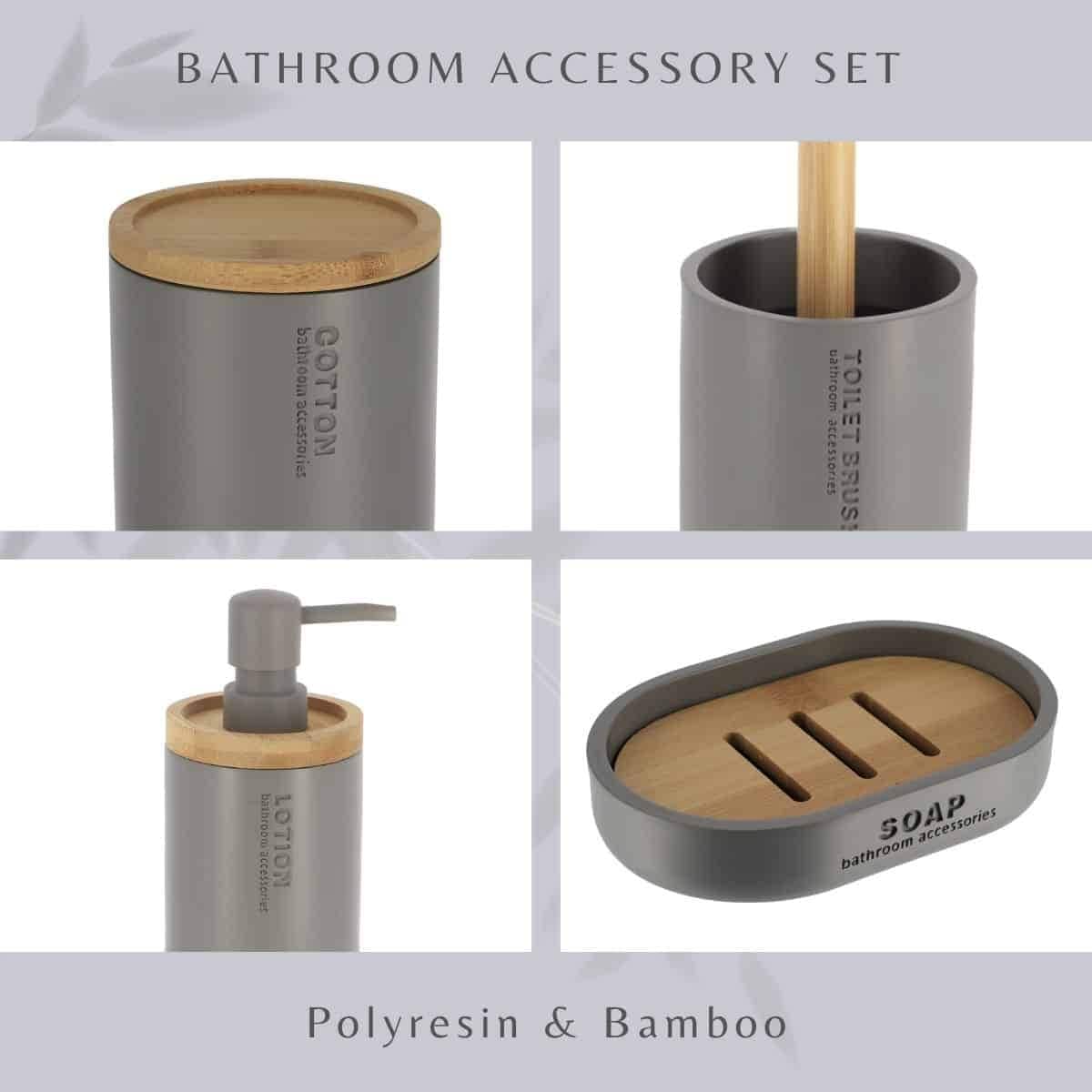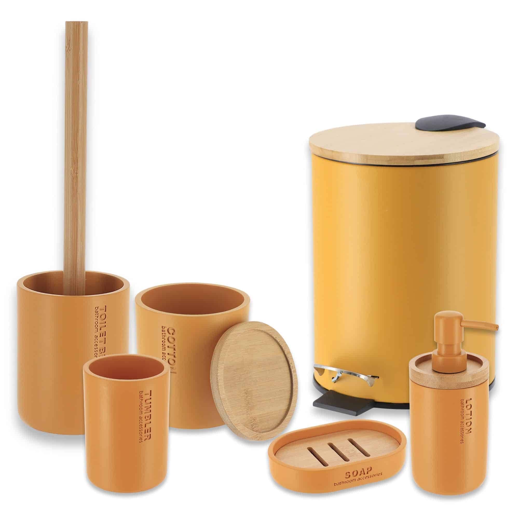 Bathroom Accessories with Natural Accents, Modern 6-piece Set