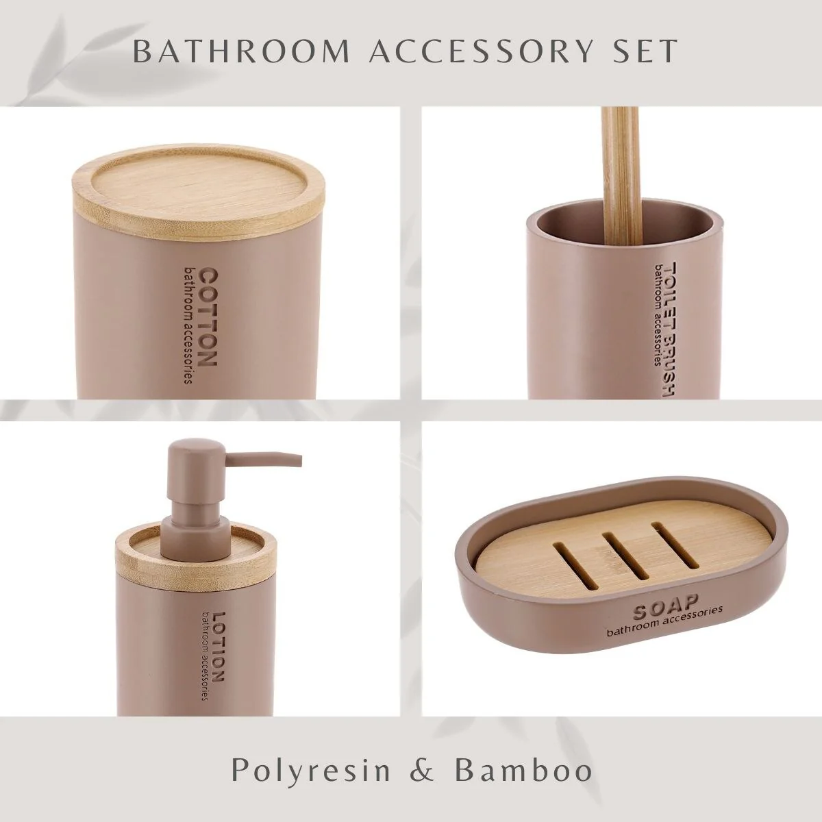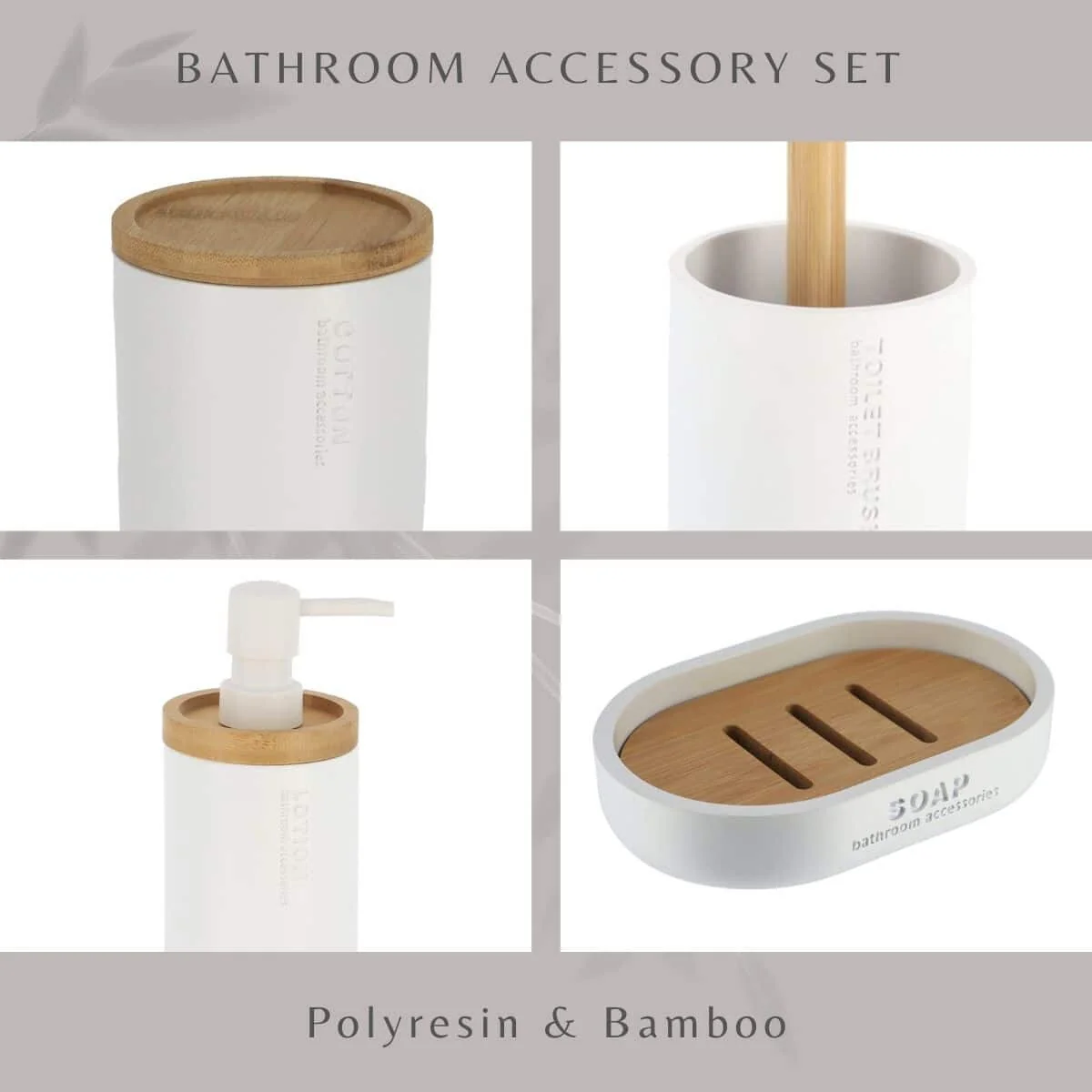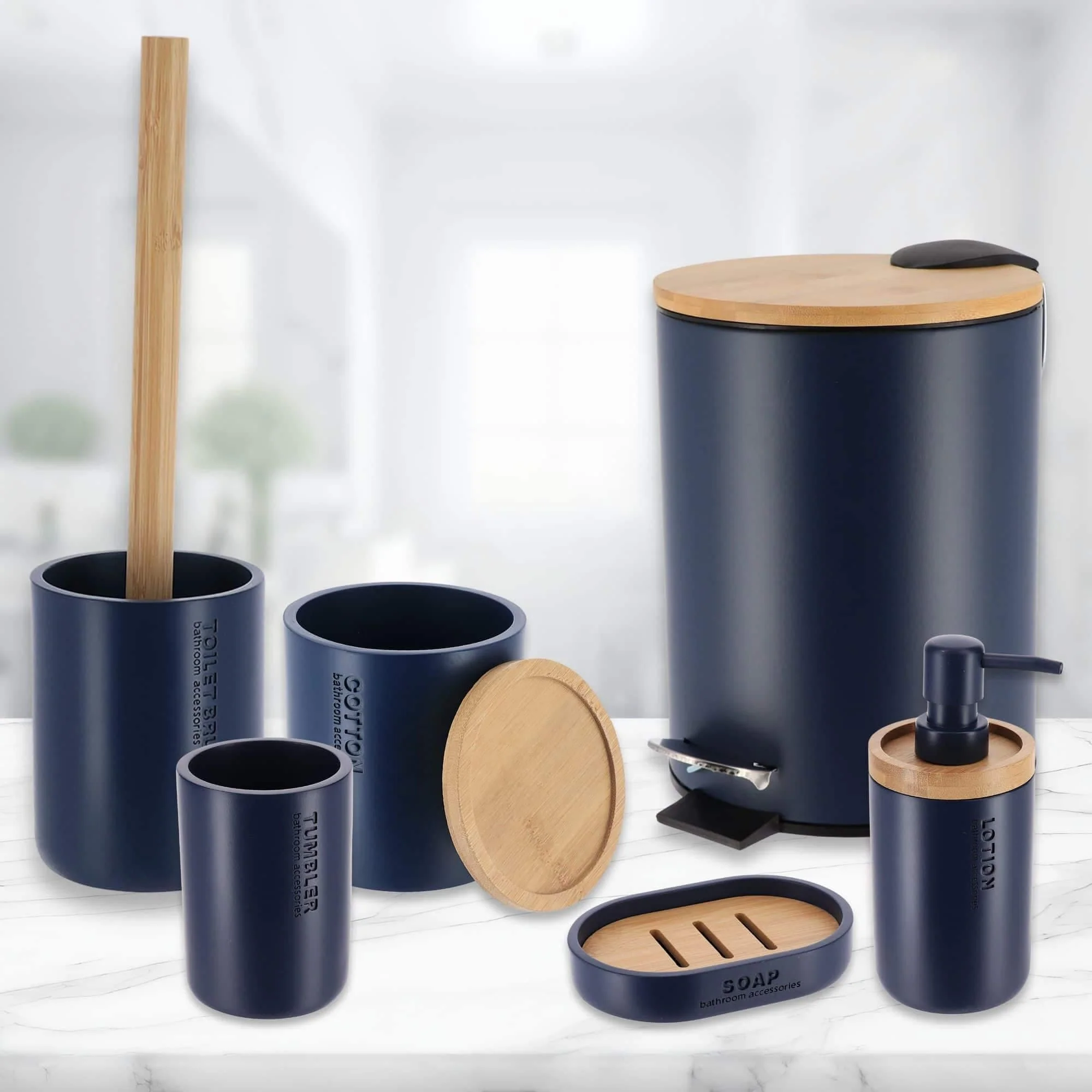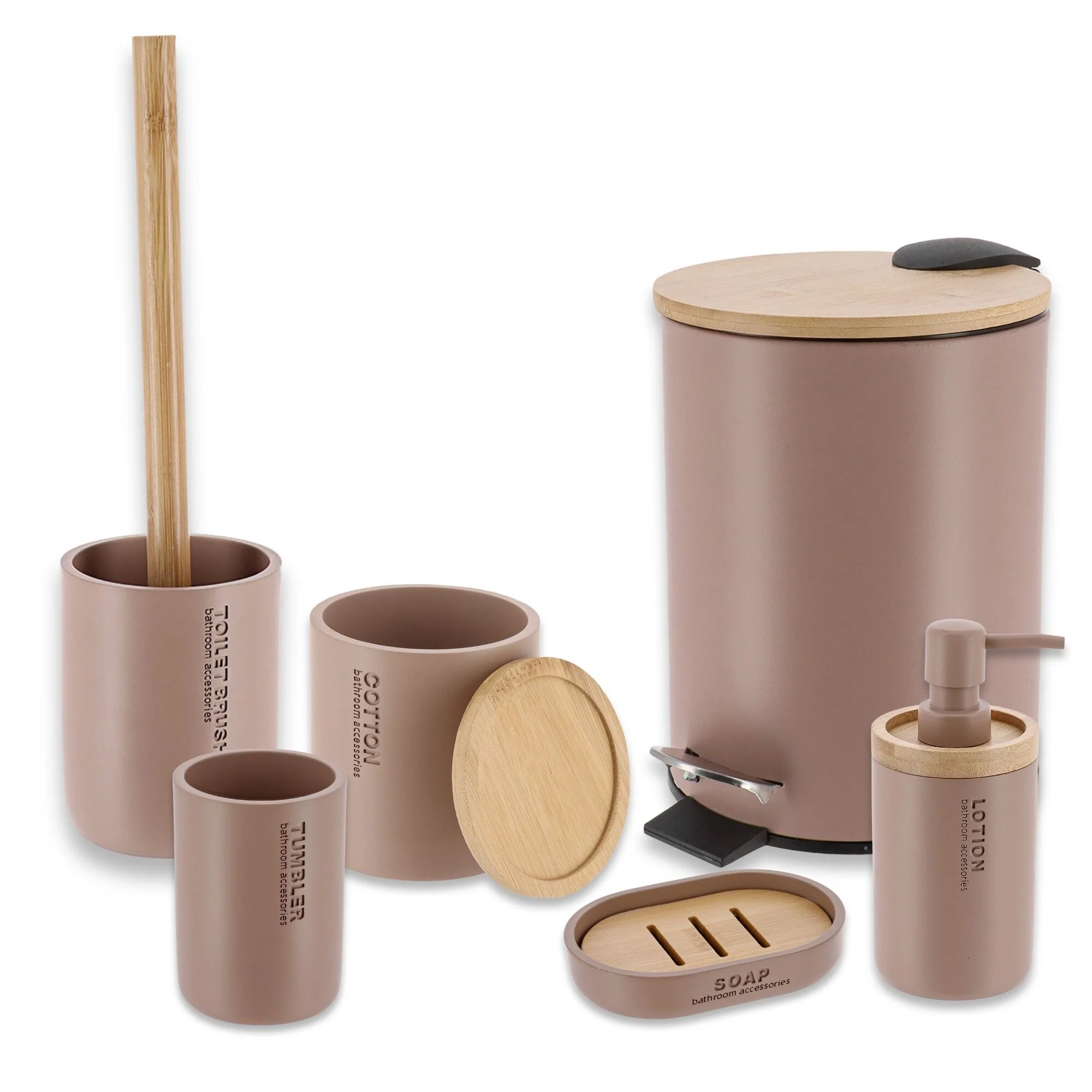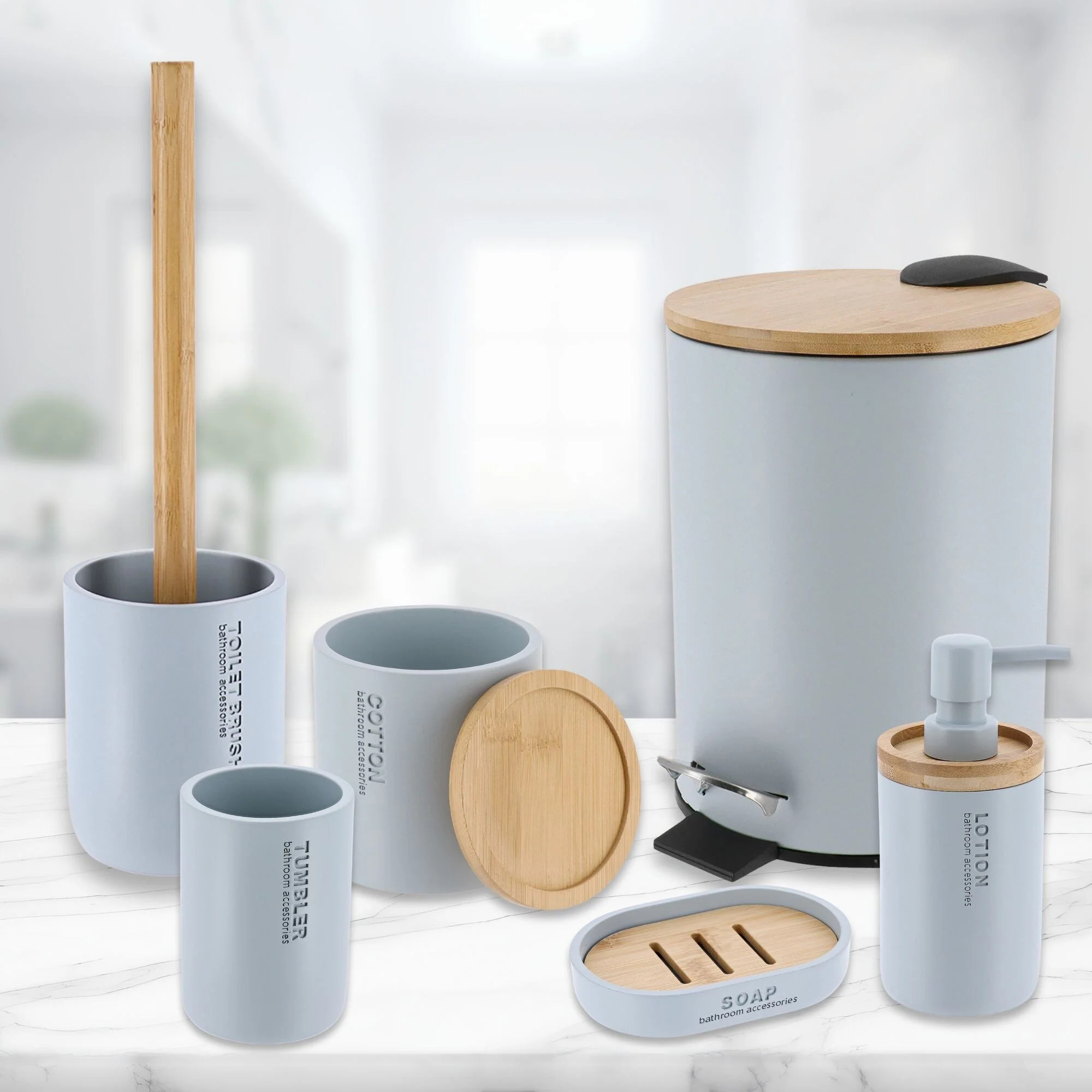 Bathroom Accessories with Natural Accents, Modern 6-piece Set