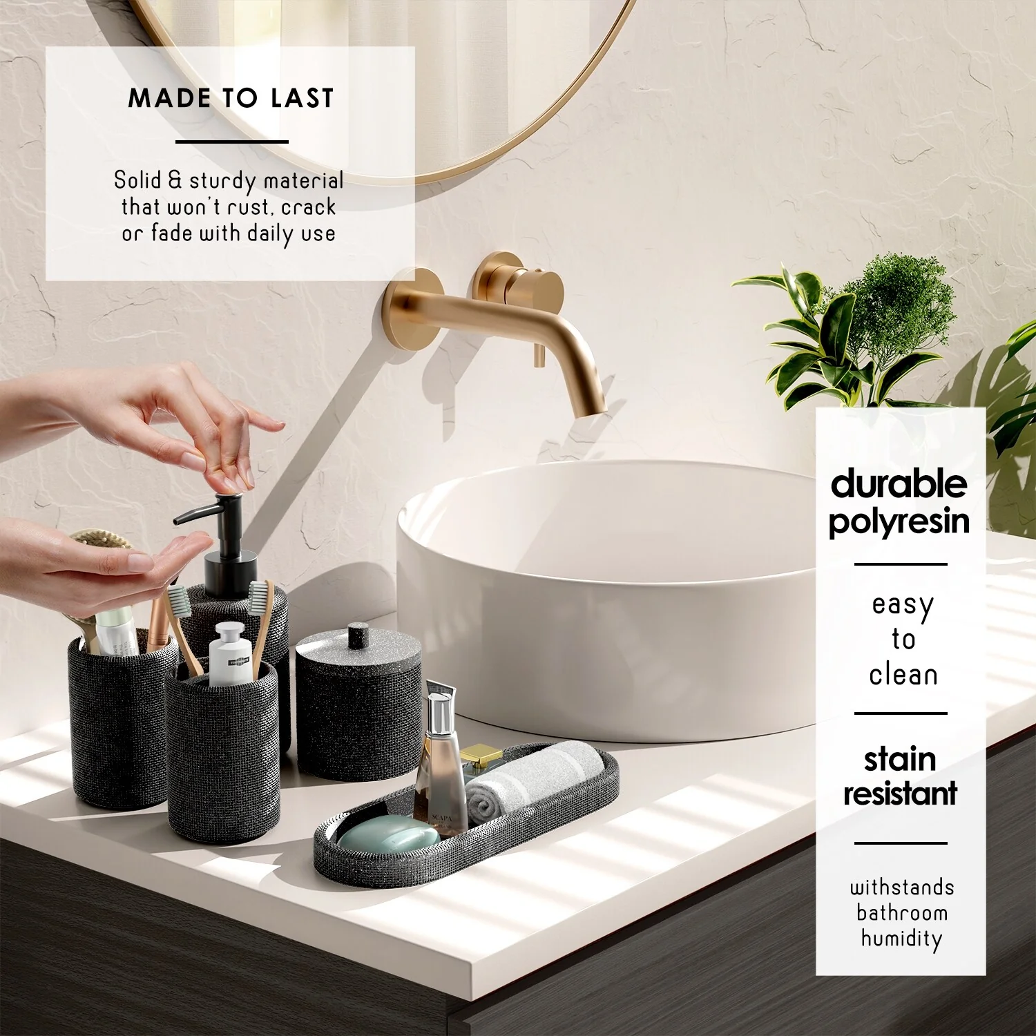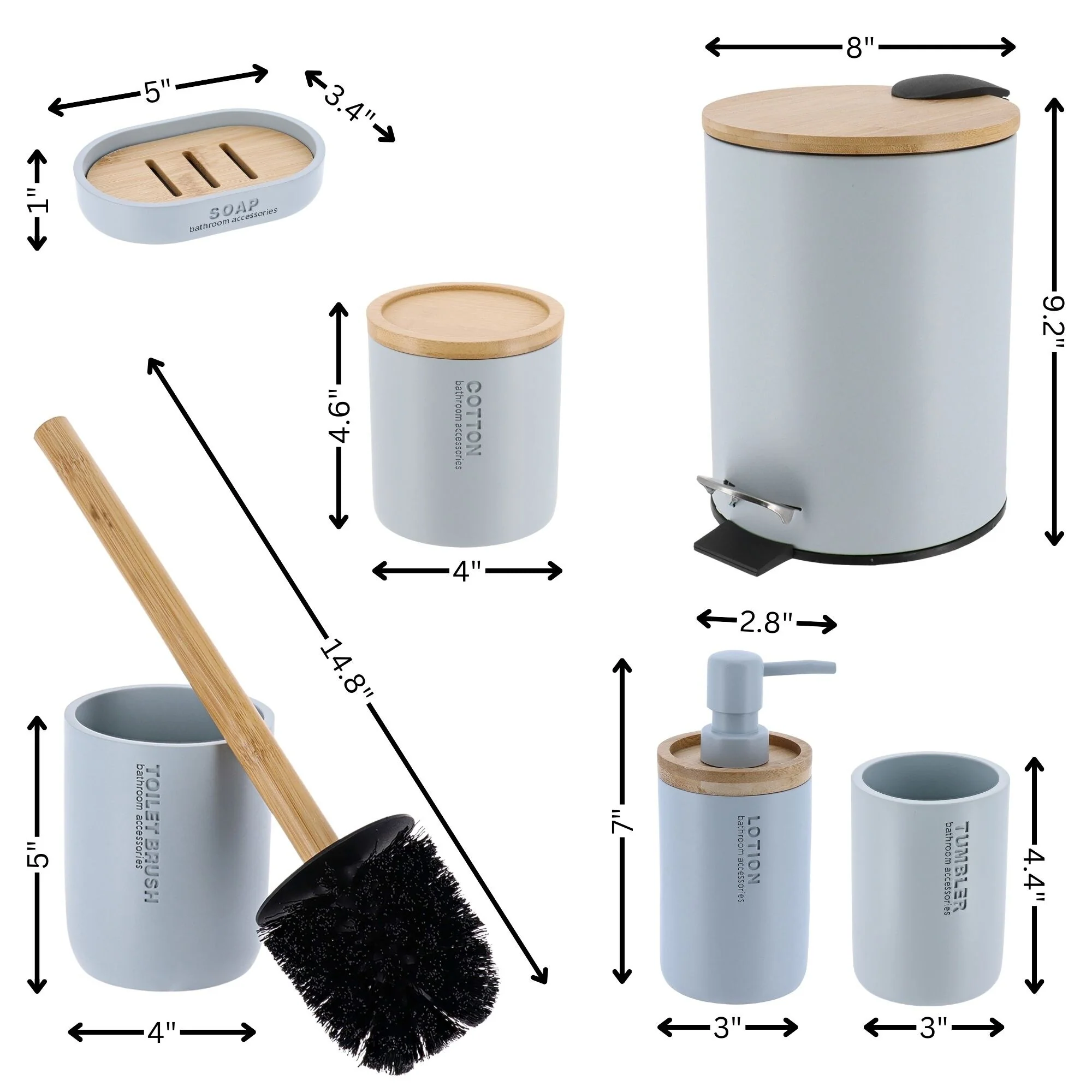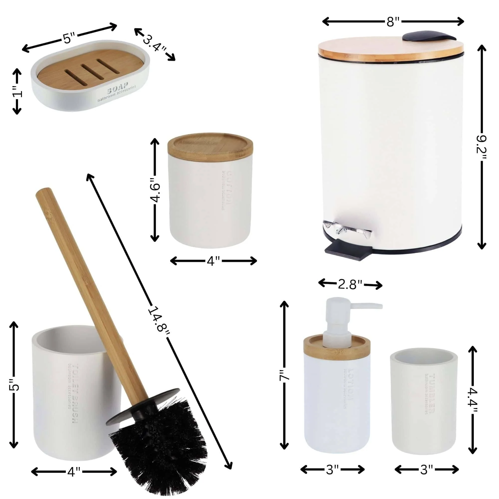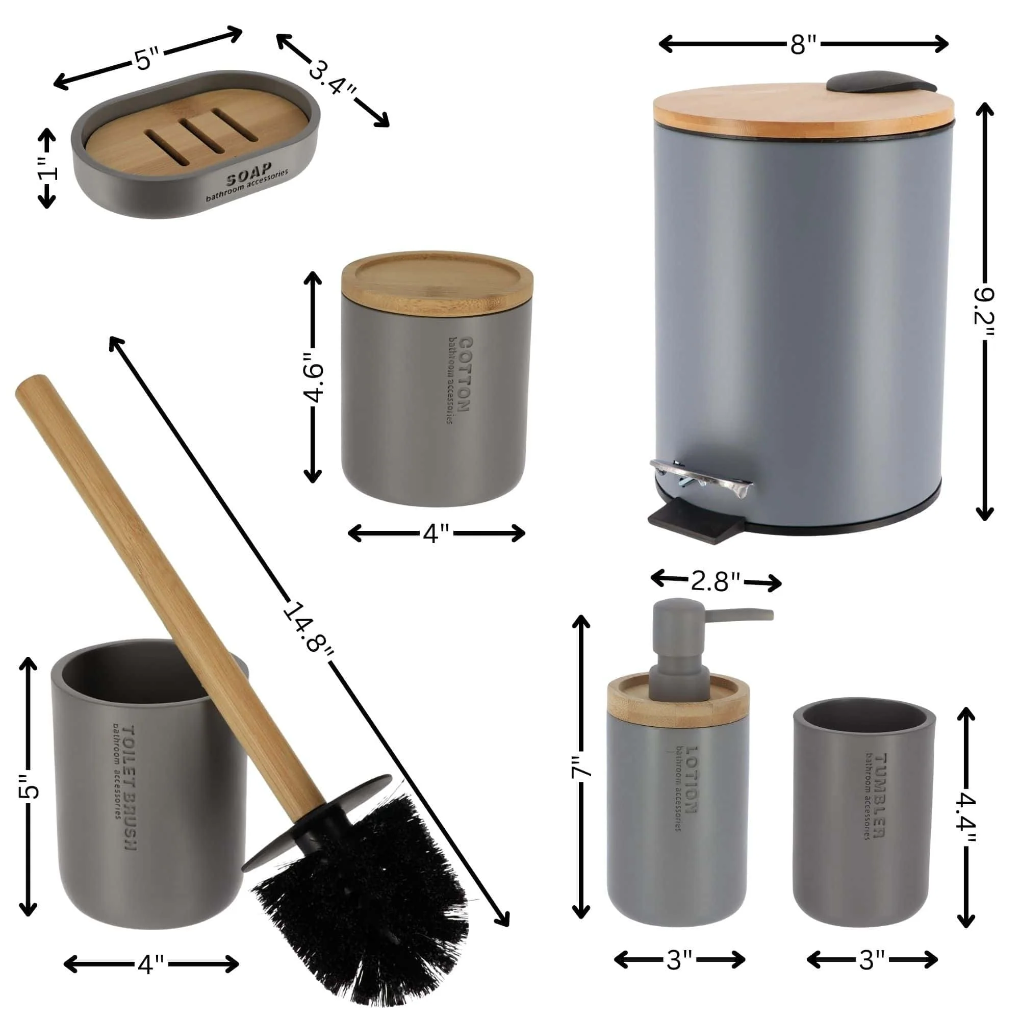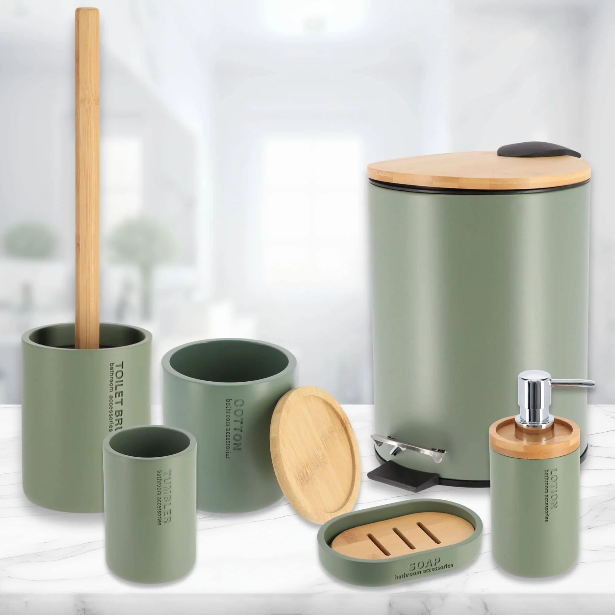 Bathroom Accessories with Natural Accents, Modern 6-piece Set