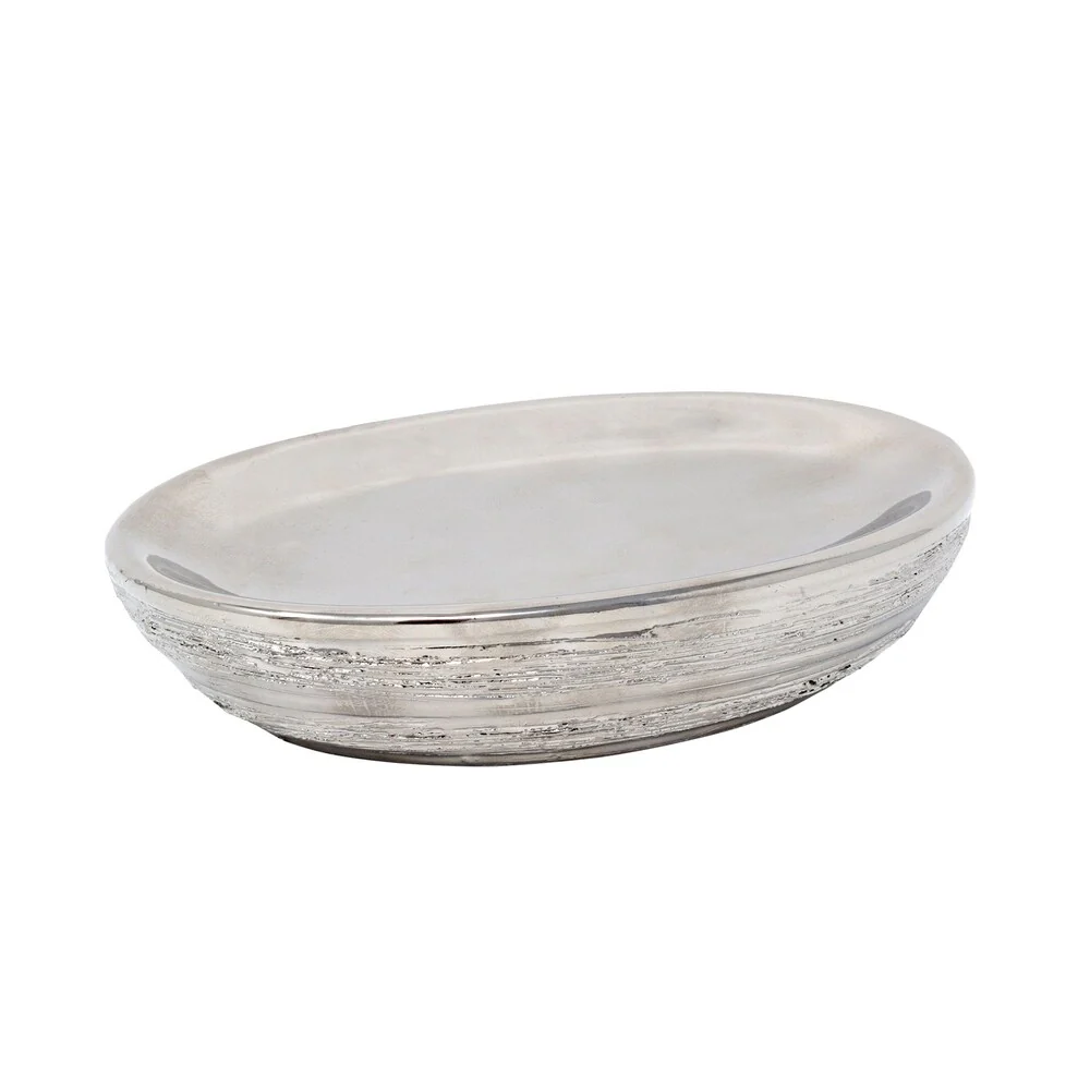 Croscill Darian Silver Ceramic Ribbed Soap Dish