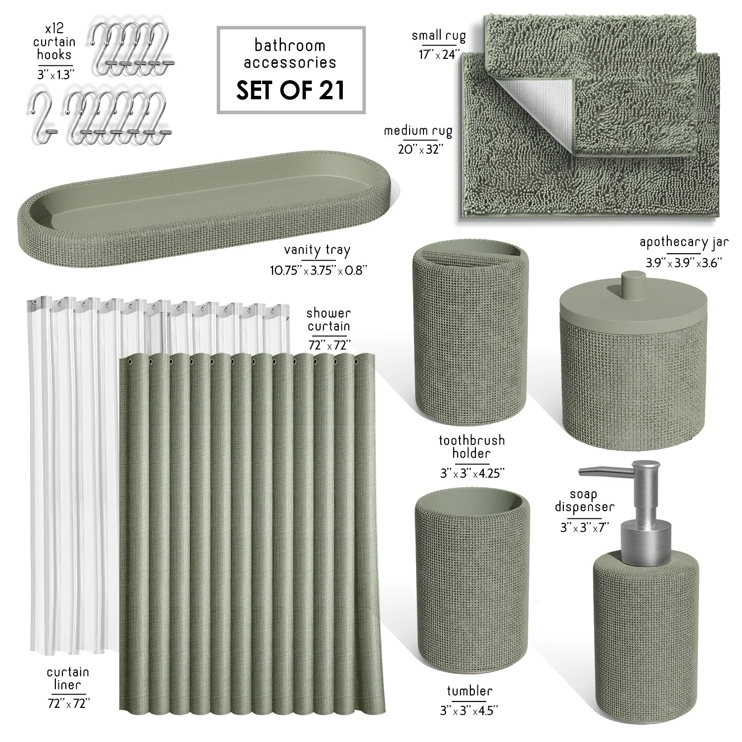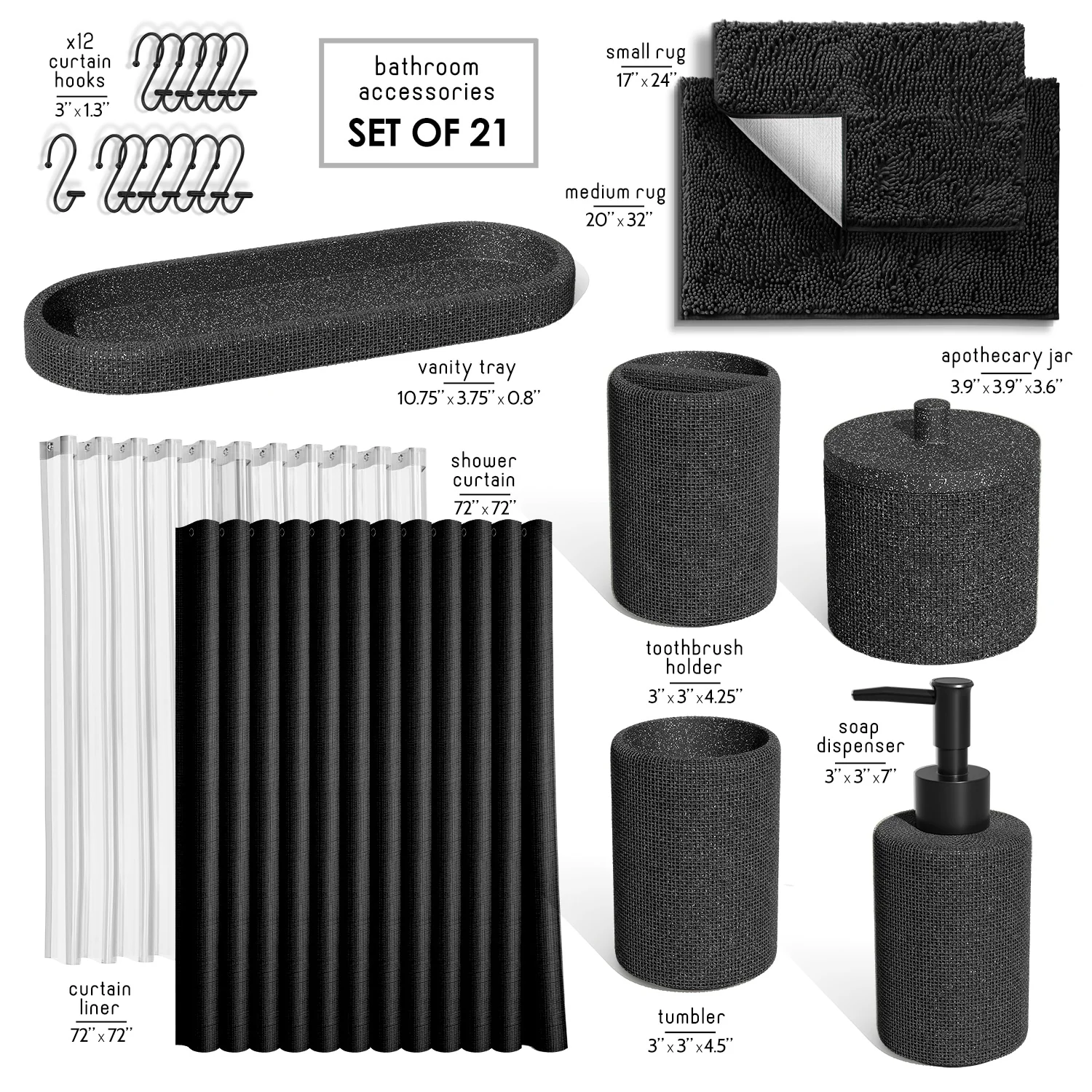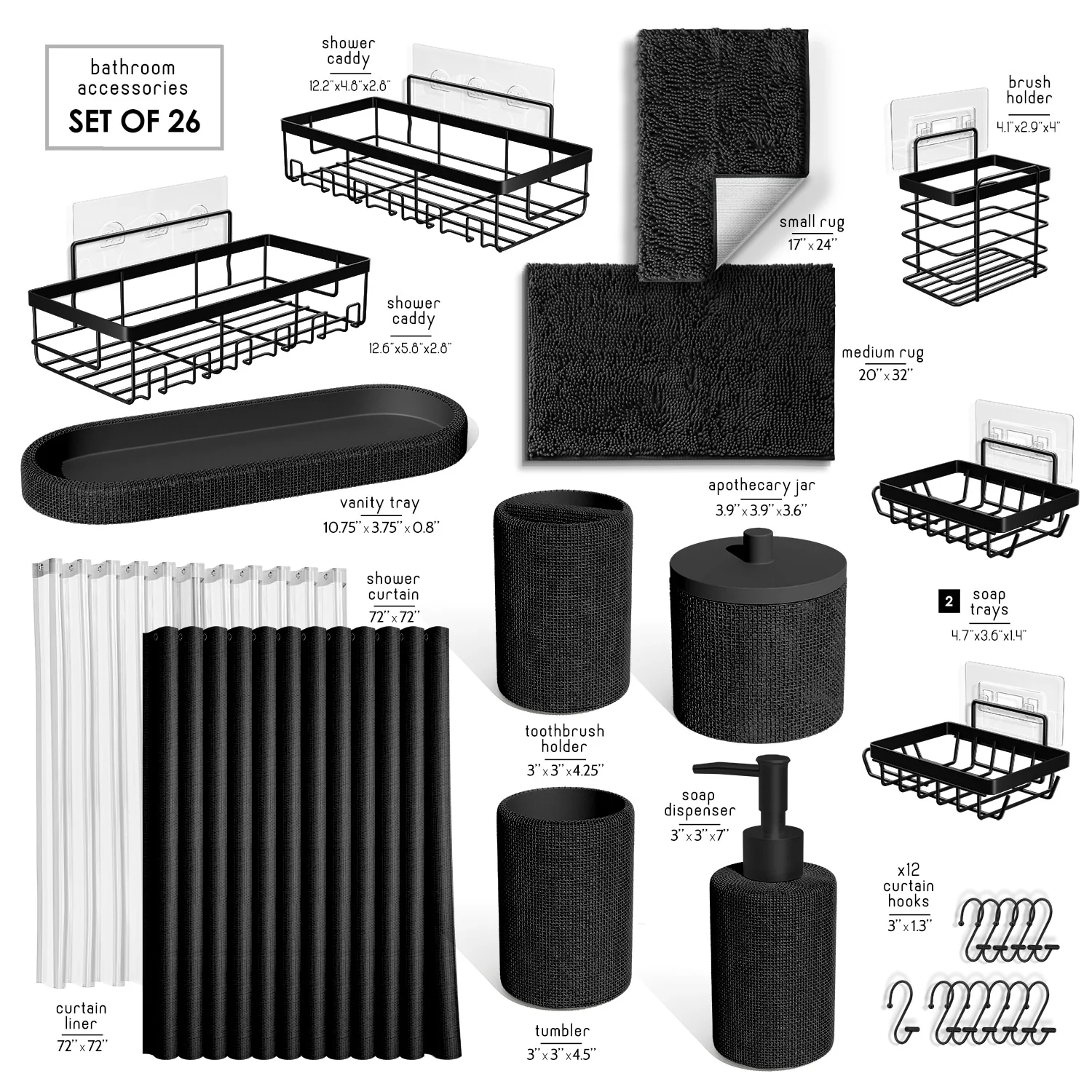 Complete Set + Bath Rugs + Shower Caddy