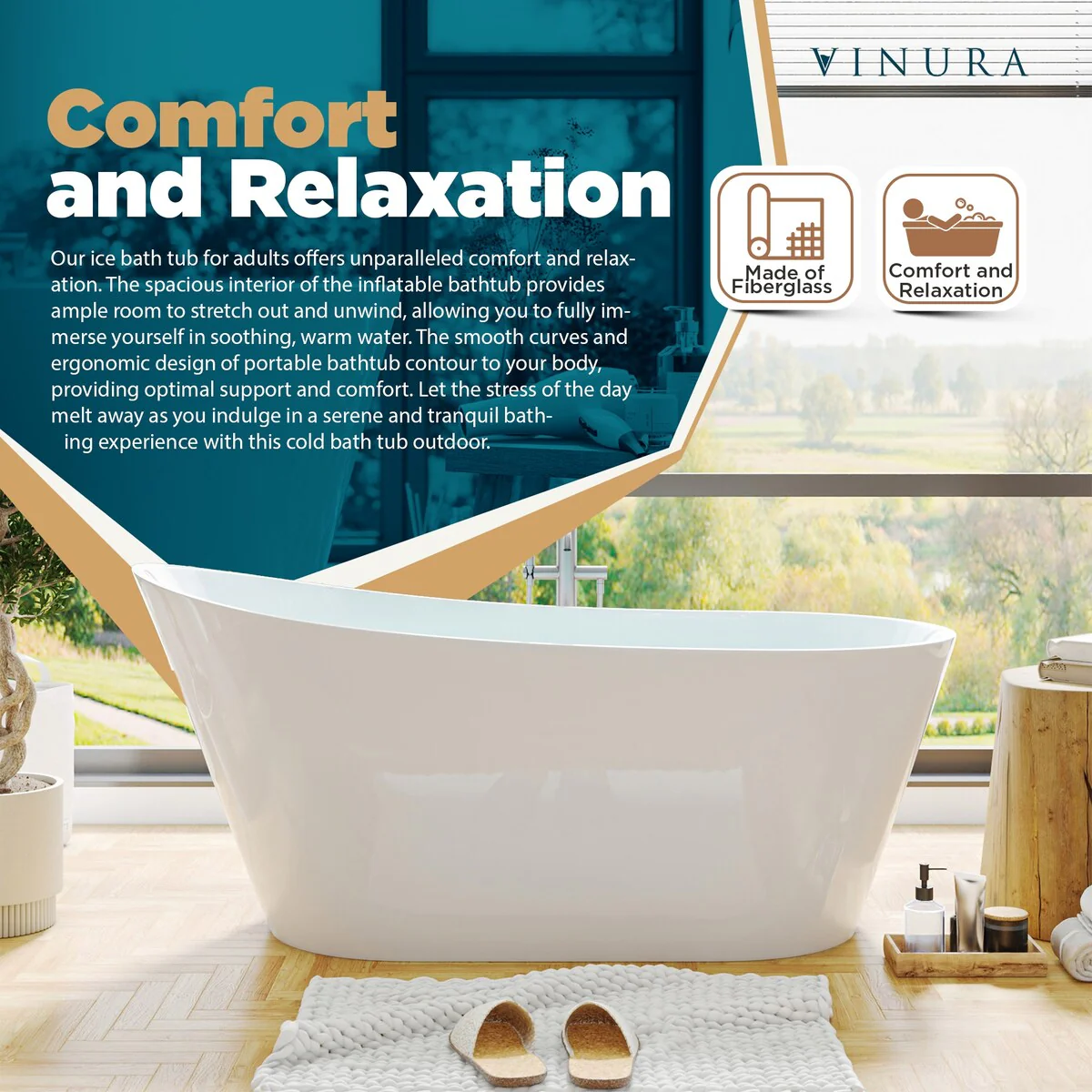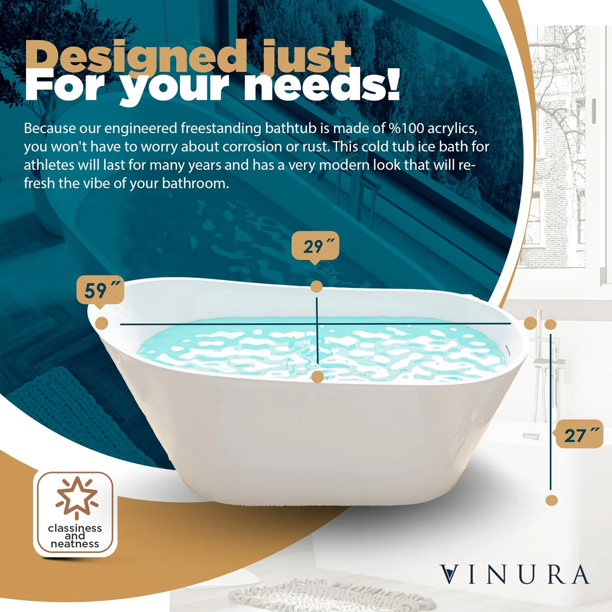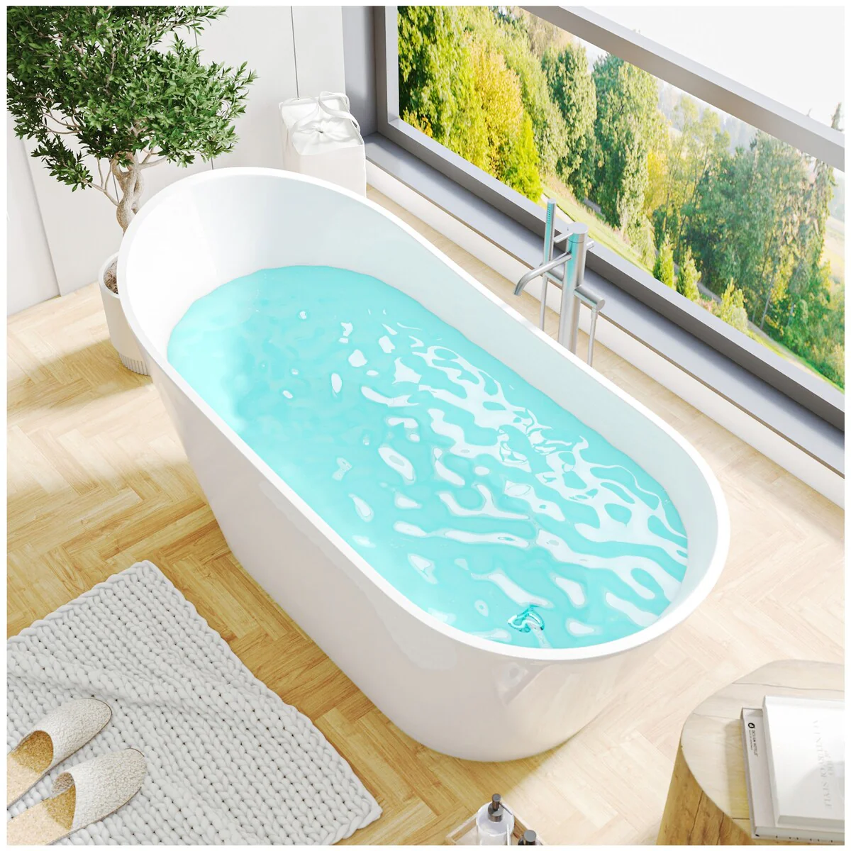 Modern Freestanding Bathtubs - 59�� White Stand Alone Soaking Bathtub - Medium