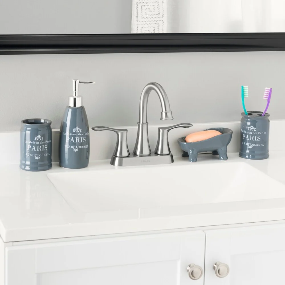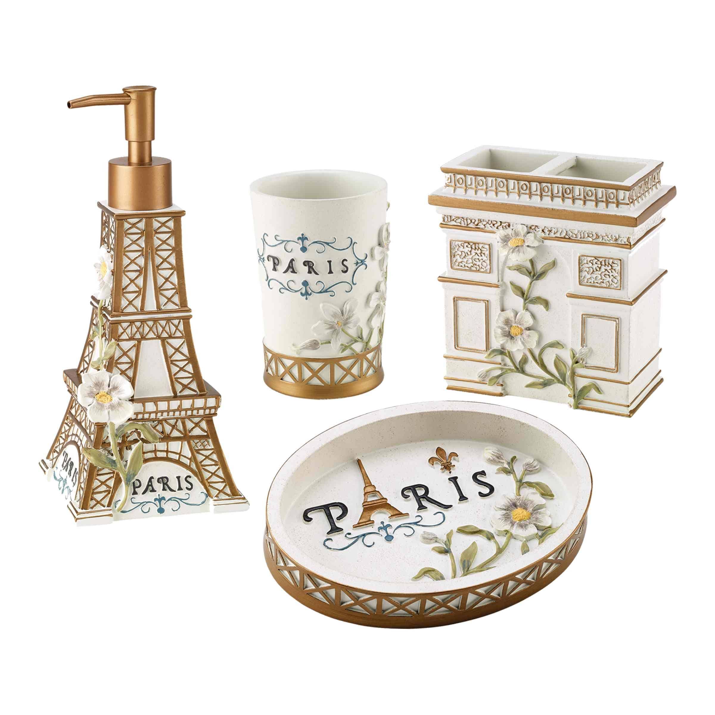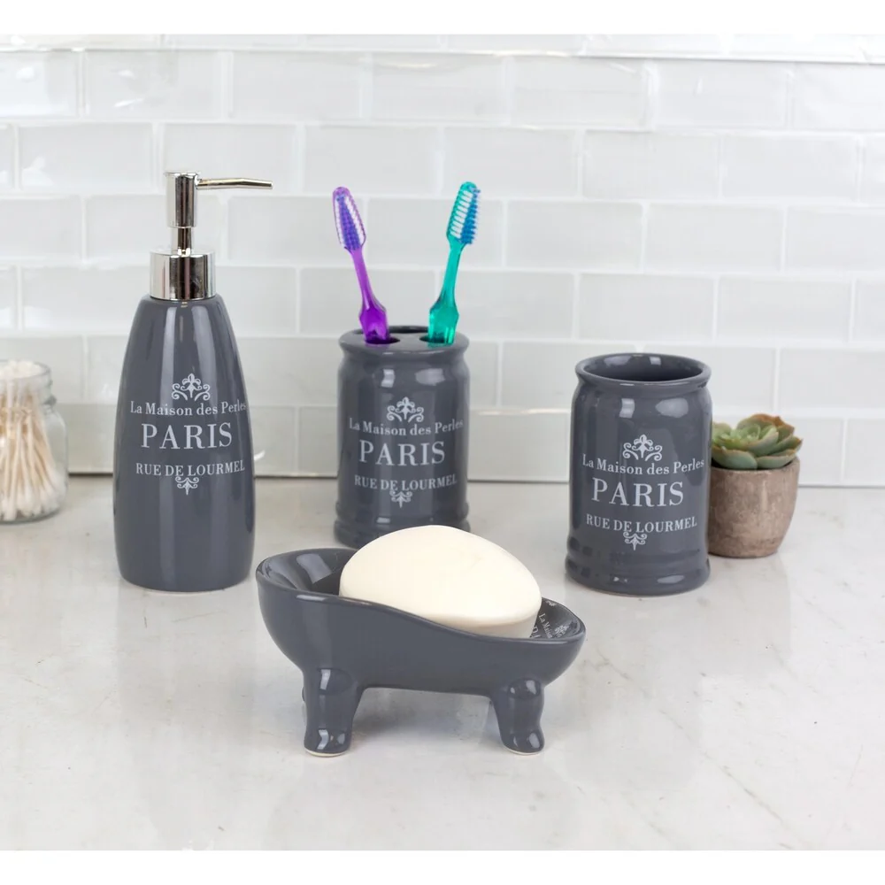 French Provincial 4 Piece Bath Accessory Set, Grey