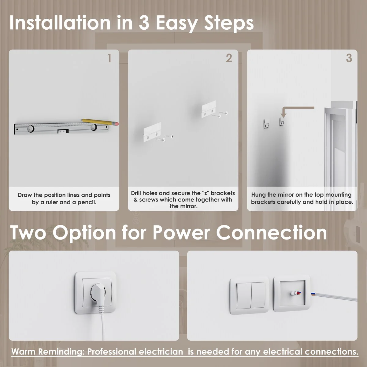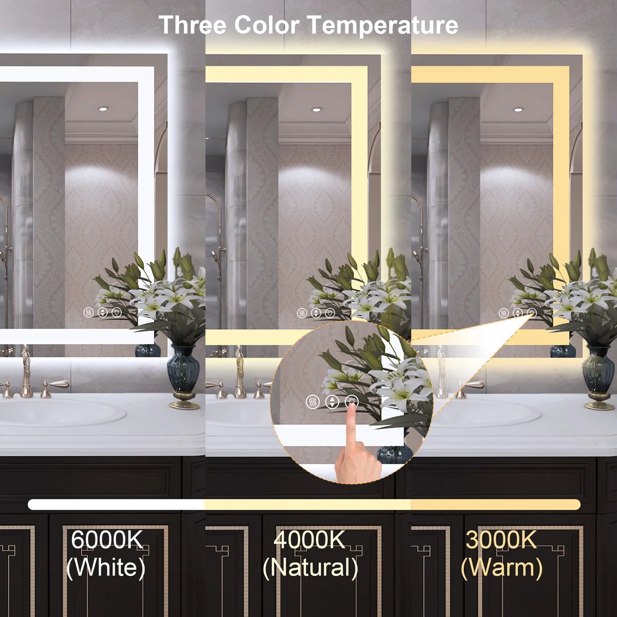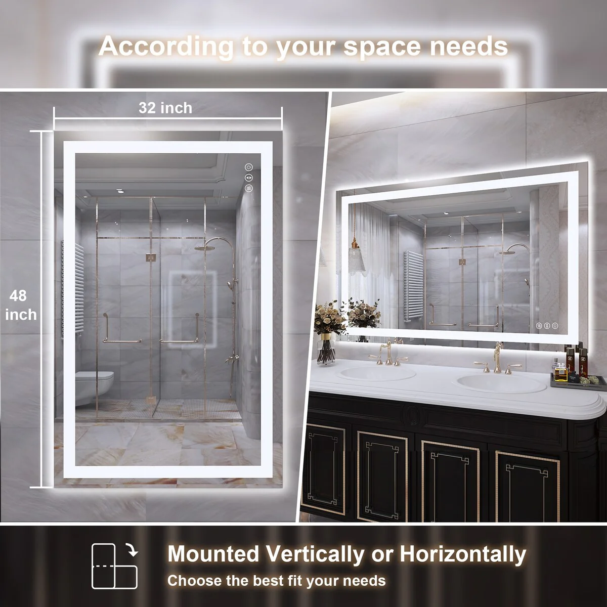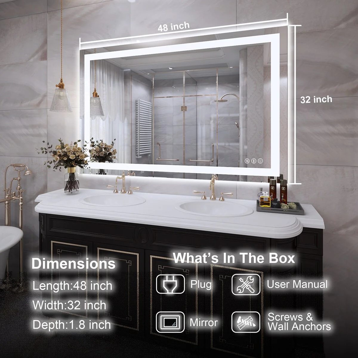48 in. W x 32 in. H Rectangular Tempered Glass Frameless Anti-Fog Dimmable Wall Mounted Bathroom Vanity Mirror