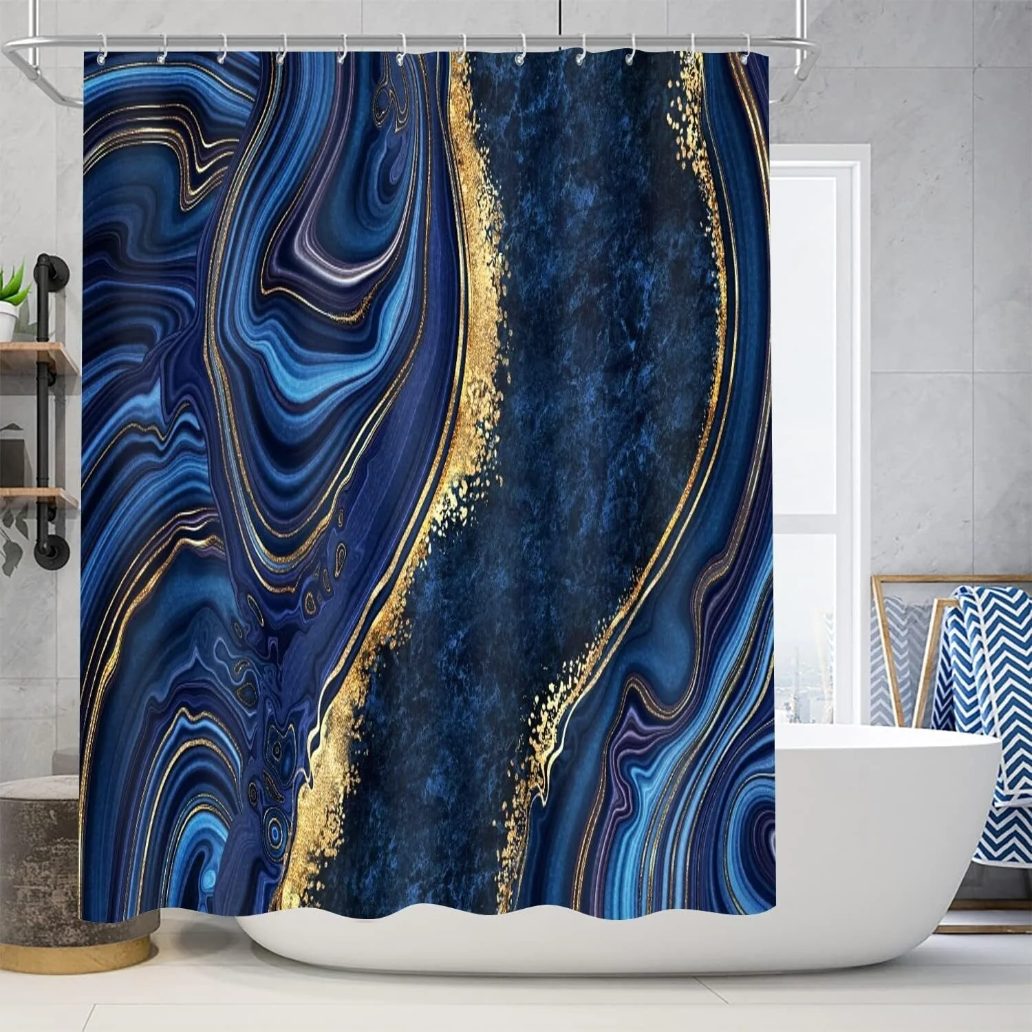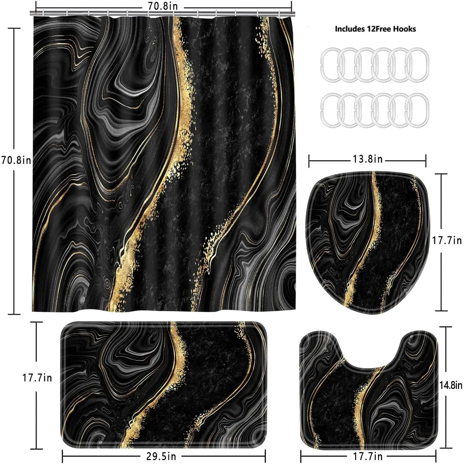 4 Pcs Shower Curtain Sets with Rugs Gold Bathroom Sets with Shower Curtain