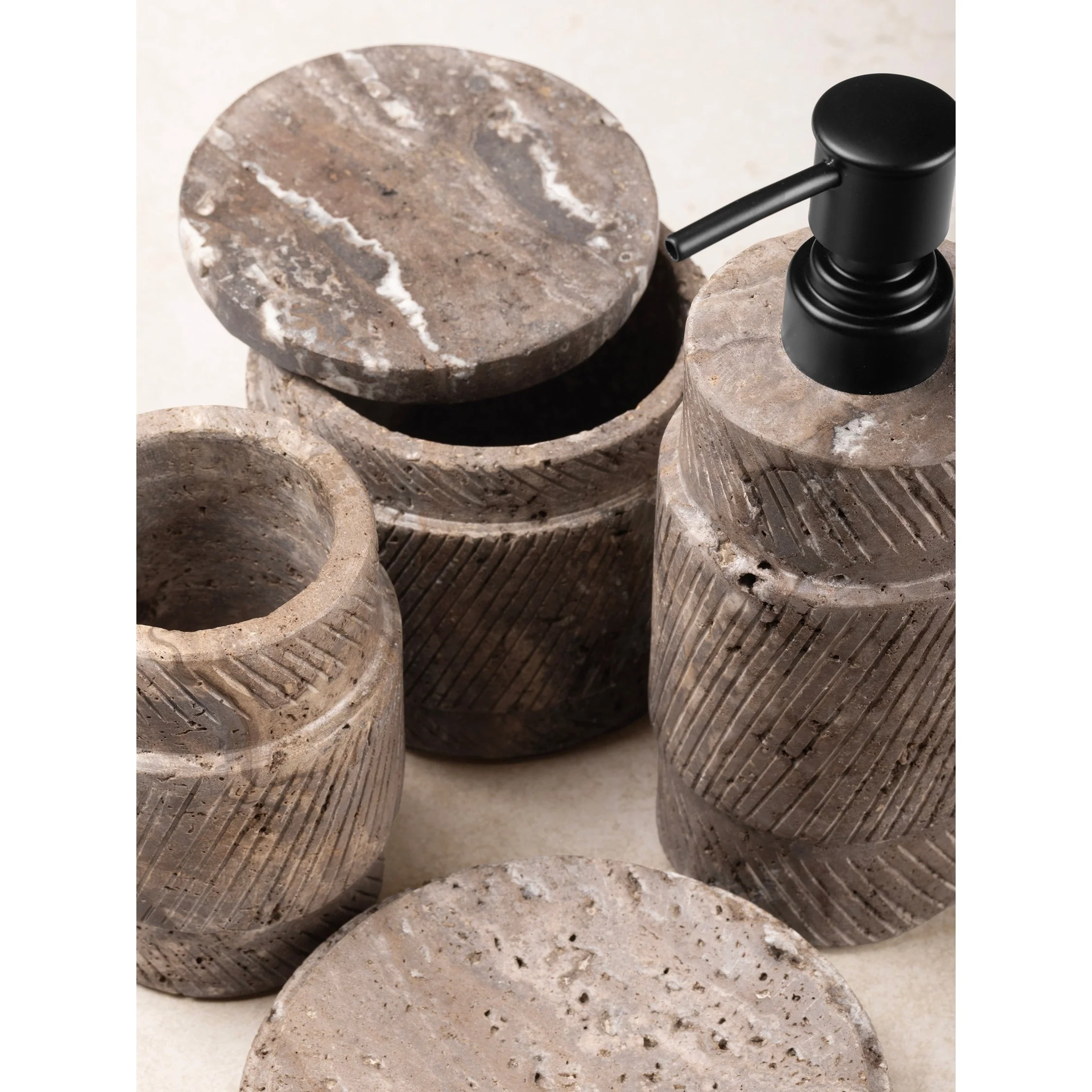 Tallinn Gray Travertine Bath Accessories - Set of 4