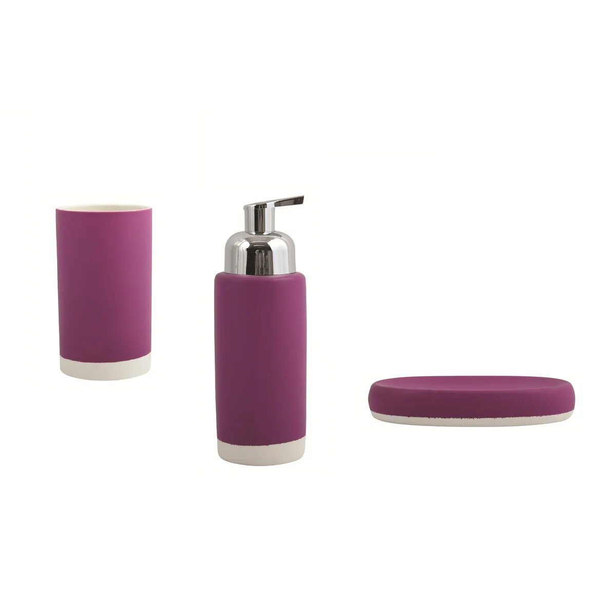 3-Piece Countertop Accessories Set MSV-France Cagliari Purple Soft Ceramic