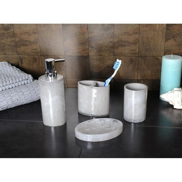 4 Piece Bathroom Accessory Set with Natural Mother of Pearl Shells - Mother of Pearl Color