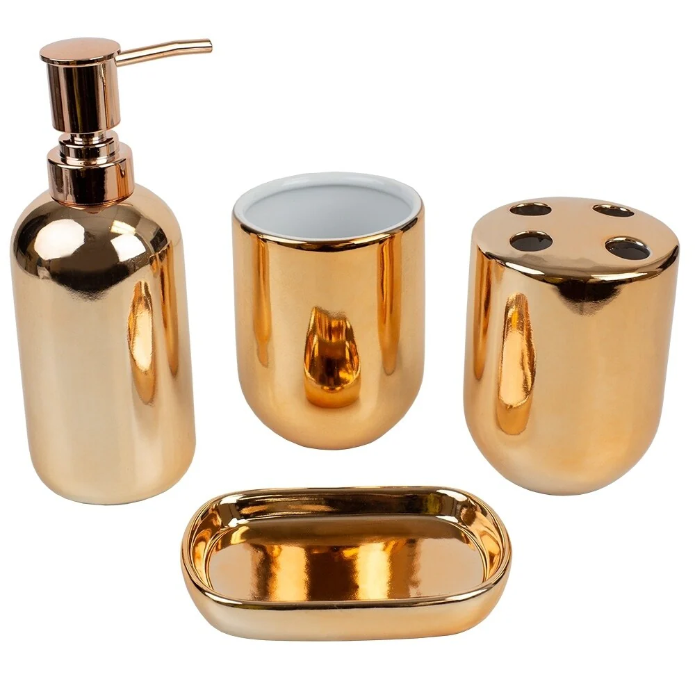 4 Piece Ceramic Bath Accessory Set, Copper