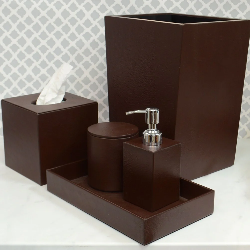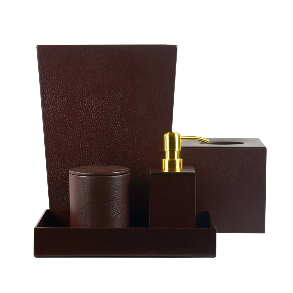 Genuine Leather 5-Piece Bath Set, Chestnut, Shower and Bathroom Accessory