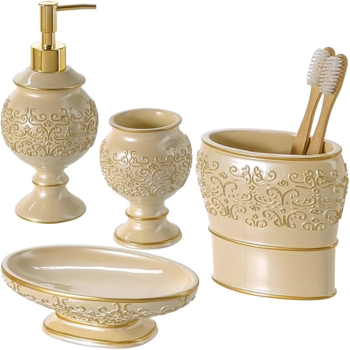 Evideco Paris Romance 6 Pieces Bathroom Accessory Set - Beige